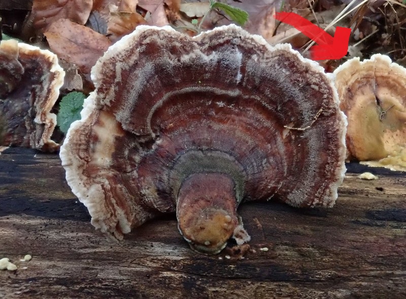 Bei diesem Pilz auf liegendem Laubholz (Buche oder Eiche) dachte ich gleich an Trametes versicolor: 7 cm breit, dünn, Rand relativ scharf, elastisch und irgendwann brüchig.