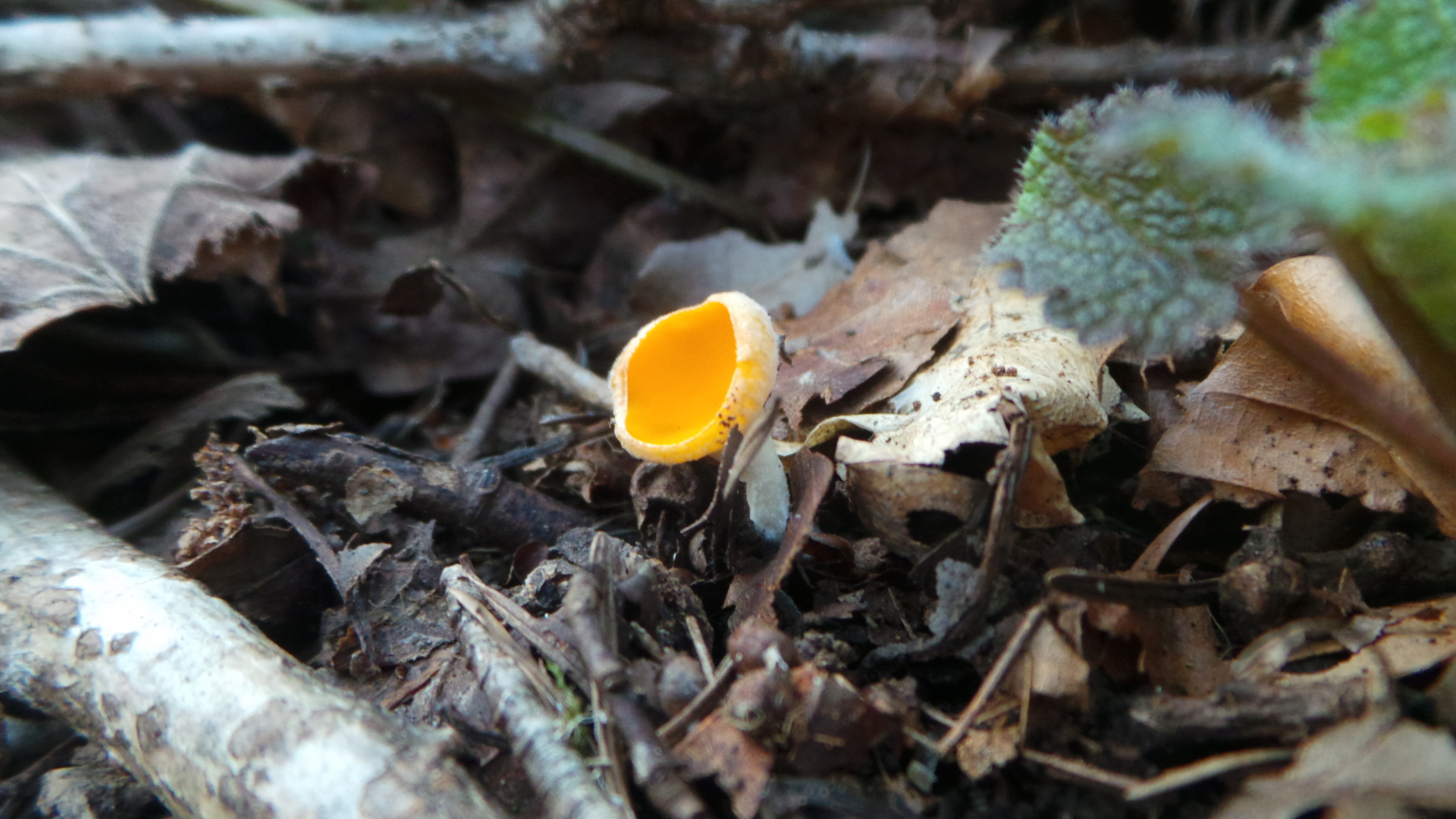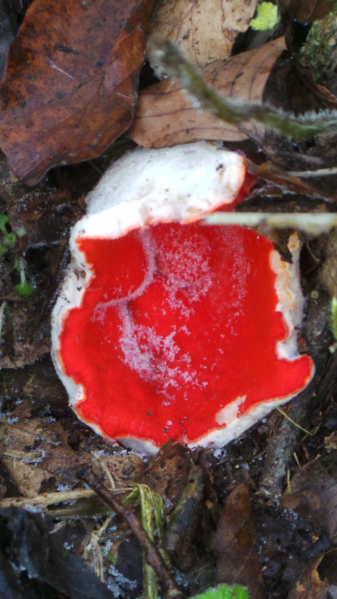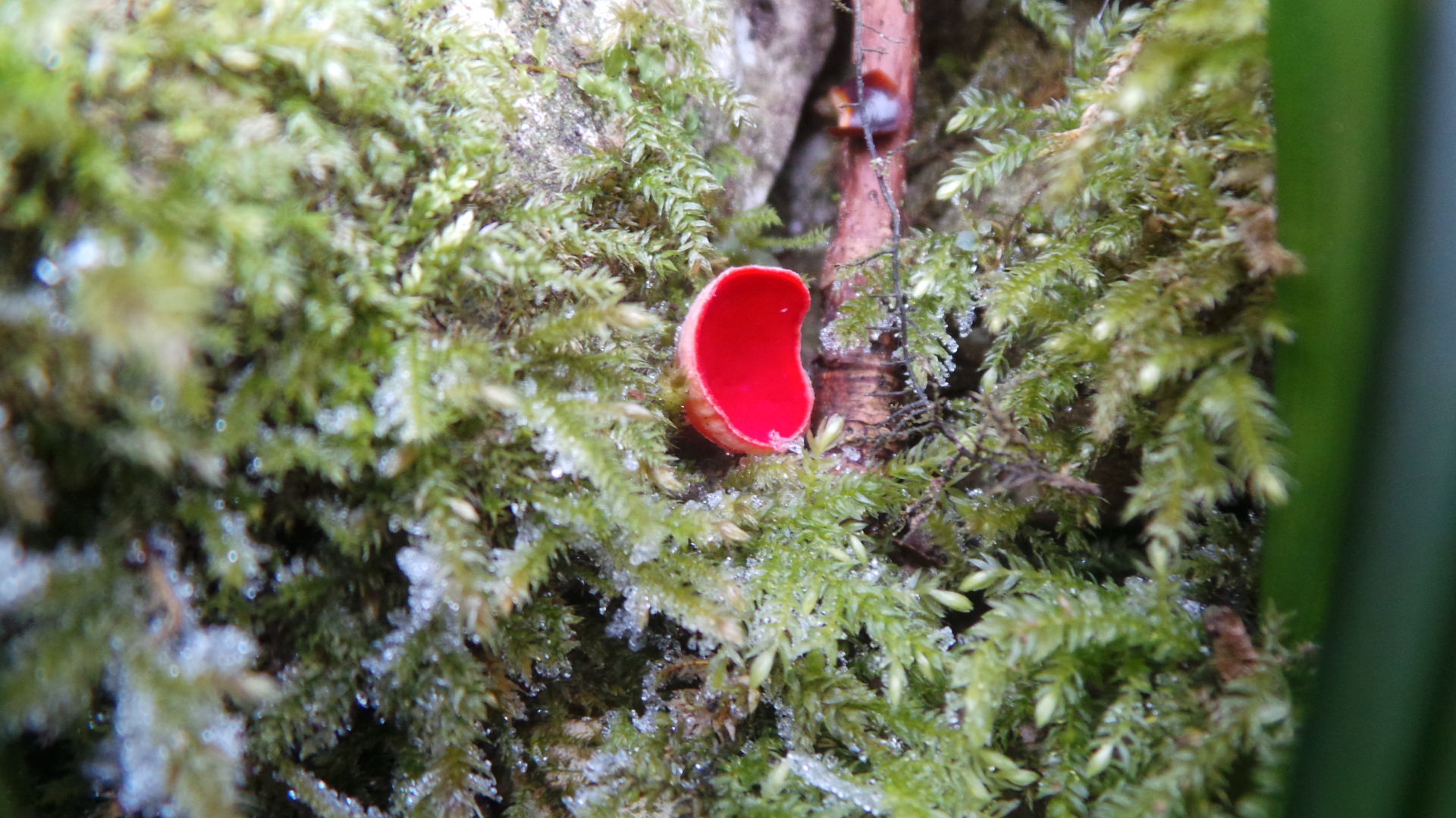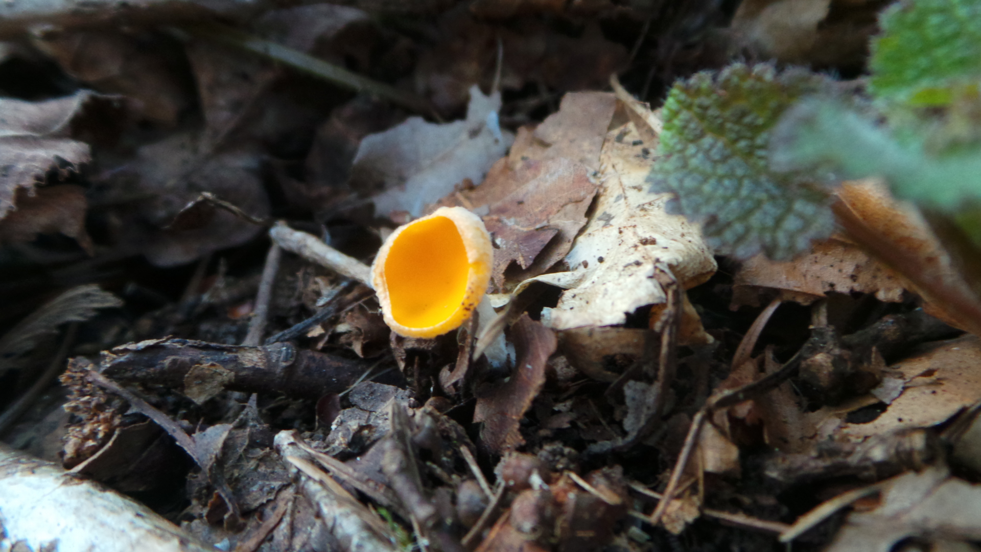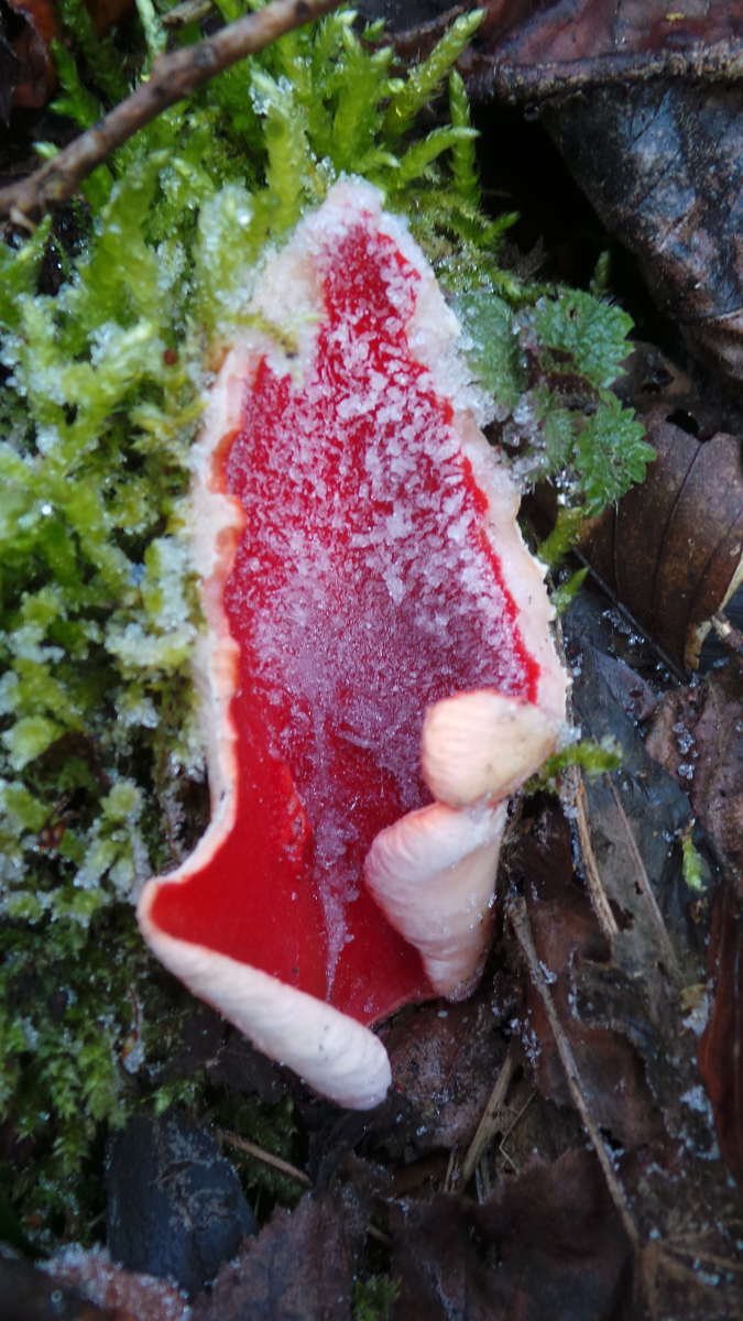 endlich habe ich mal selbst welche gefunden, zinnoberrote Kelchbecherlinge: