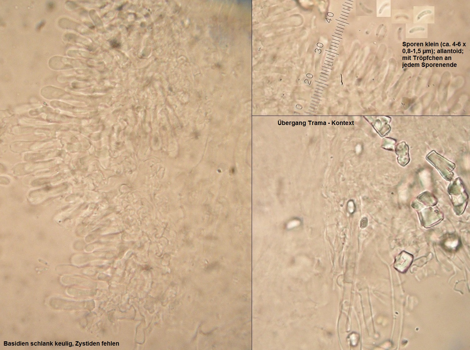 Basidien leicht keulig, 18-22 µ lang, mit 4 nadeldünnen Sterigmen.