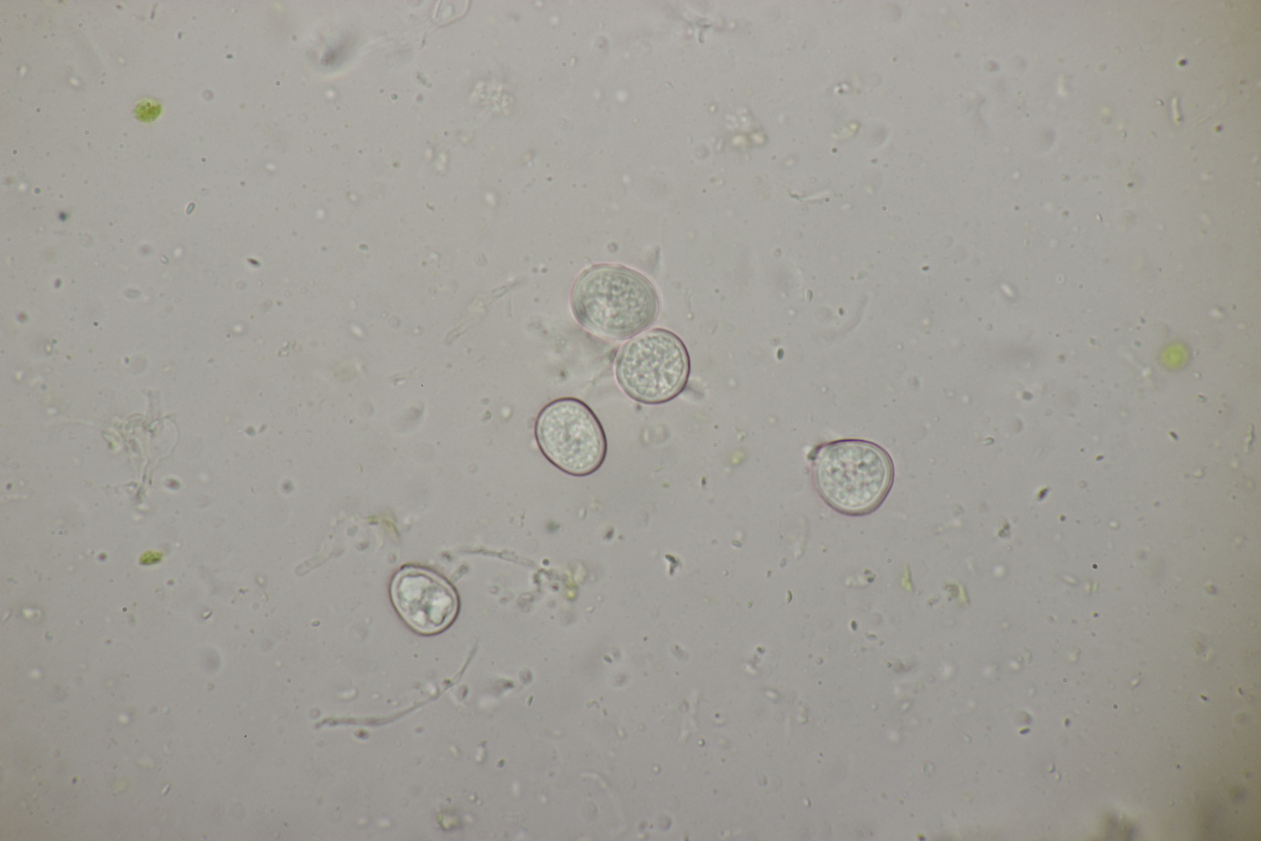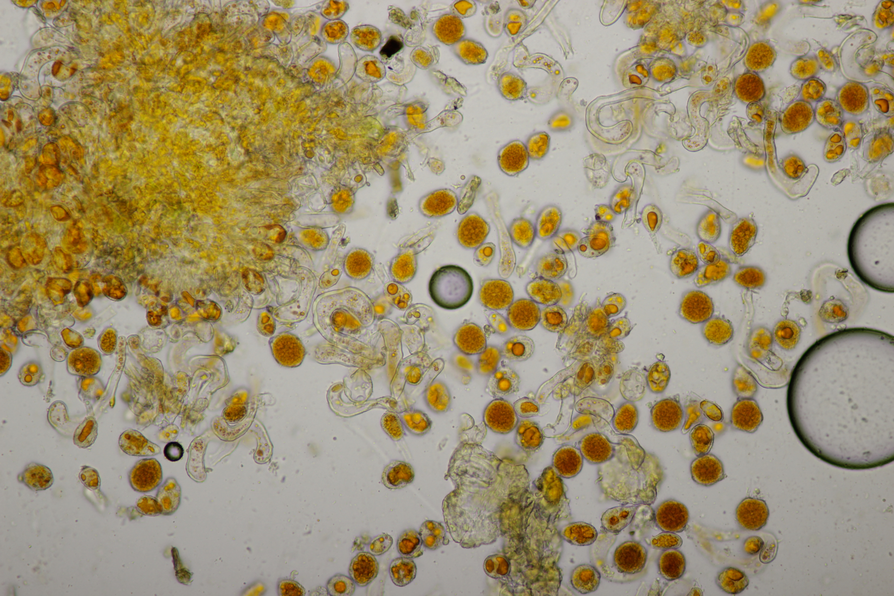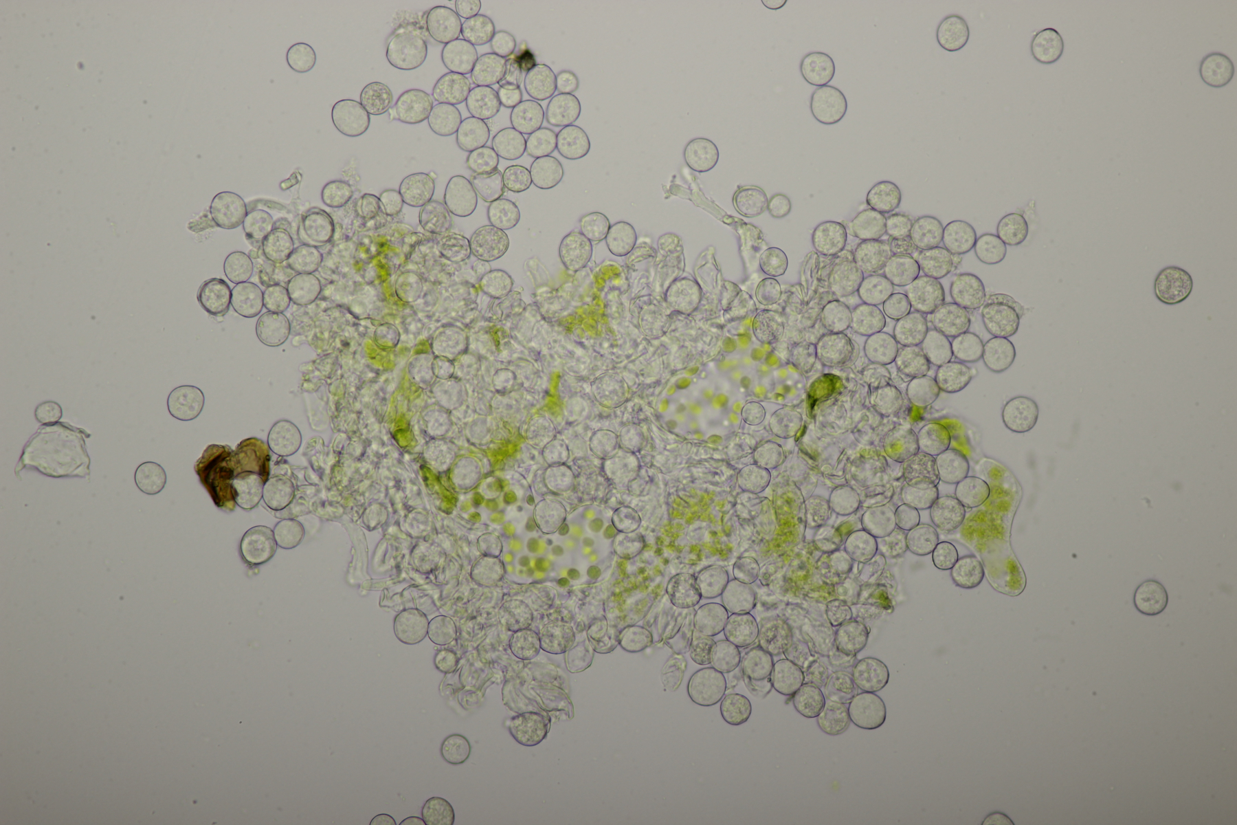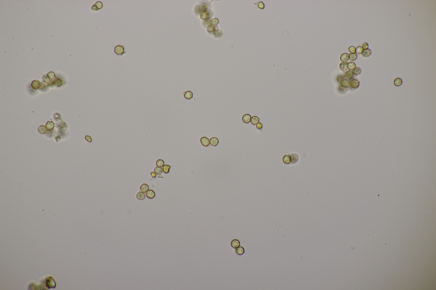 8. Nach jeder Menge Frühsport dann endlich die heißersehnten Flecken auf Bellis! Im Mikroskop fanden sich auch Sporen, die aber alle um die 10 µm groß sind. Also nicht der gesuchte Protomycopsis sondern Entyloma bellidis ex Bellis perennis. Aber auch das ein Erstfund für mich.