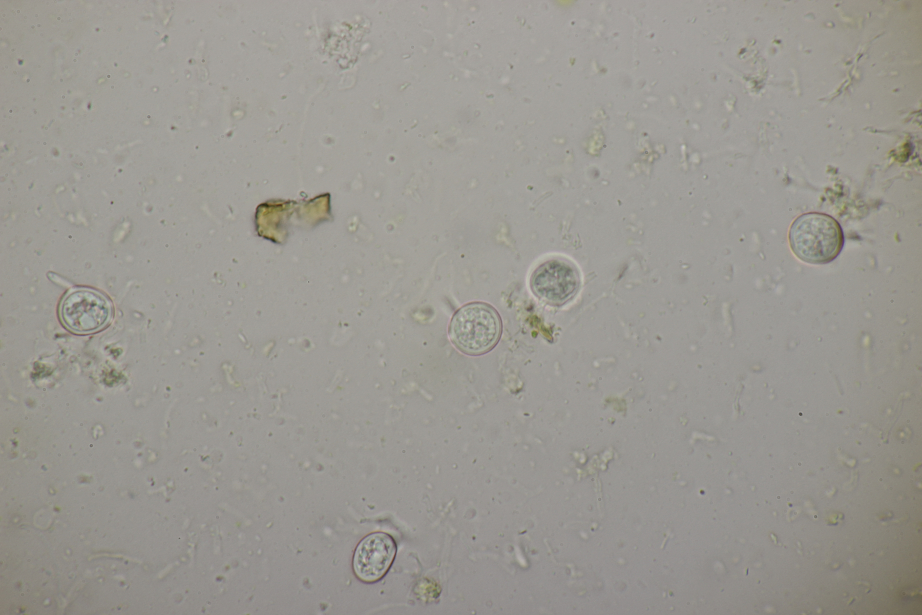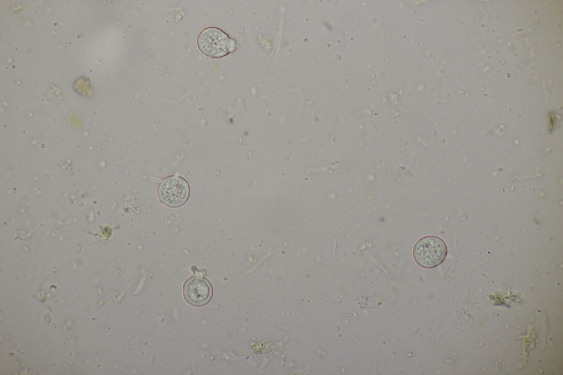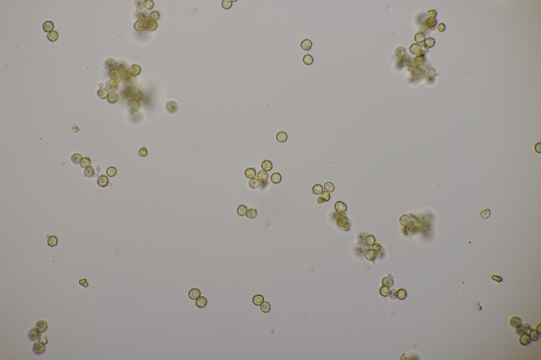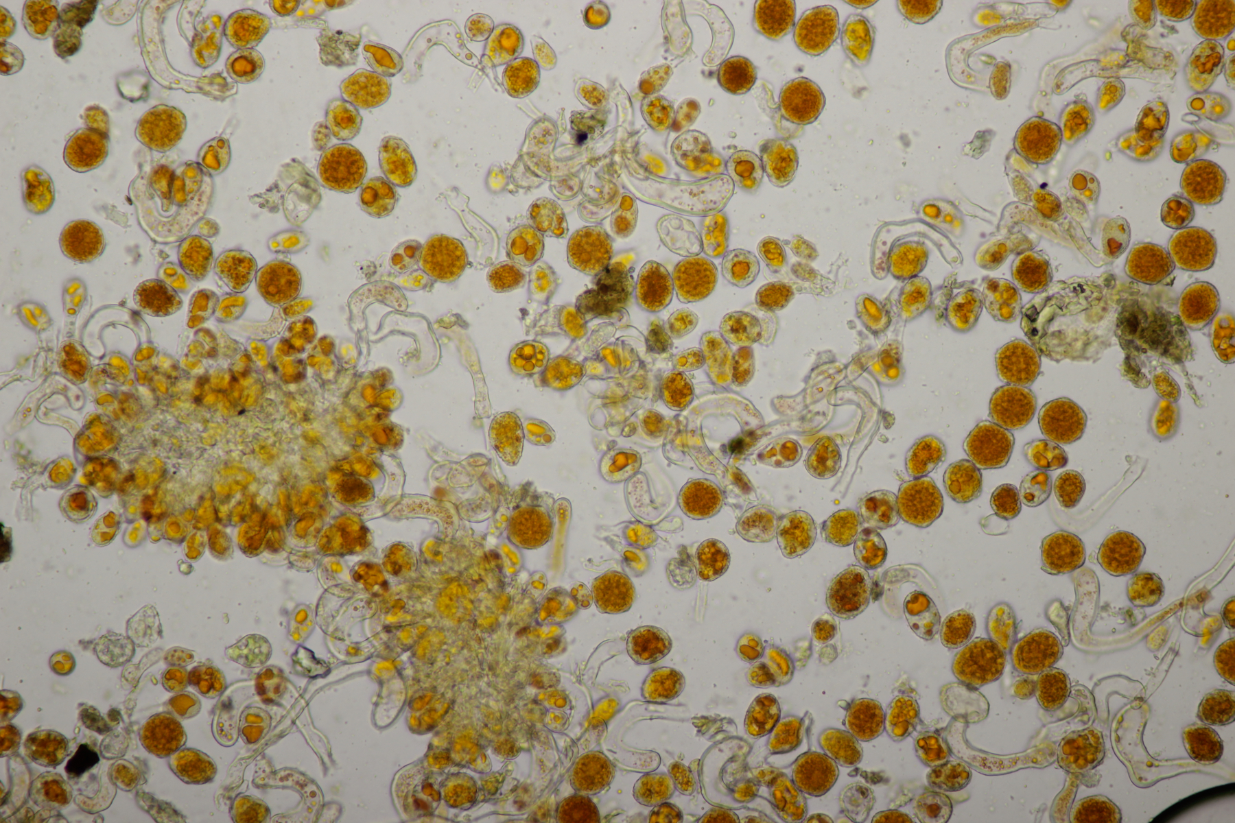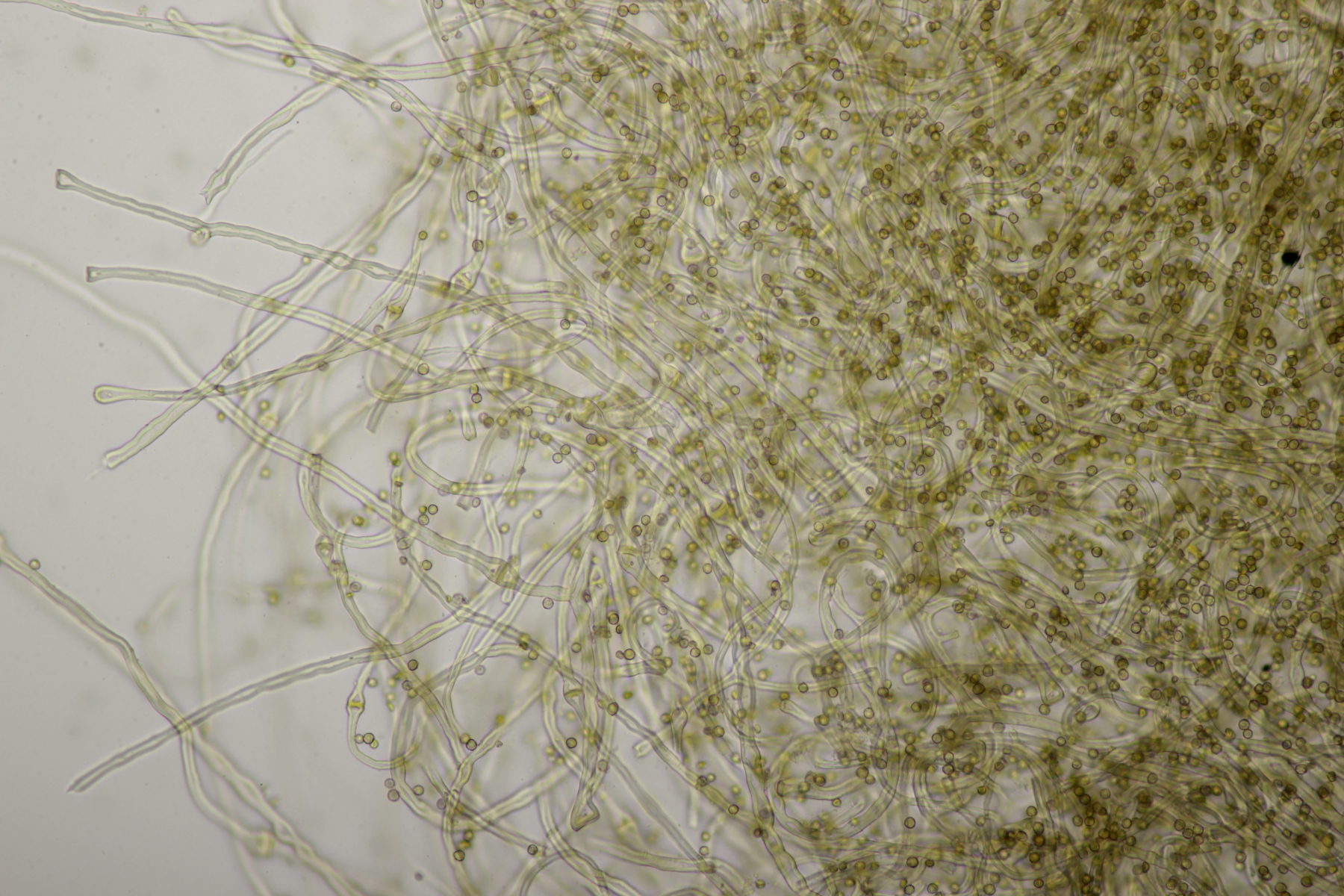 8. Nach jeder Menge Frühsport dann endlich die heißersehnten Flecken auf Bellis! Im Mikroskop fanden sich auch Sporen, die aber alle um die 10 µm groß sind. Also nicht der gesuchte Protomycopsis sondern Entyloma bellidis ex Bellis perennis. Aber auch das ein Erstfund für mich.
