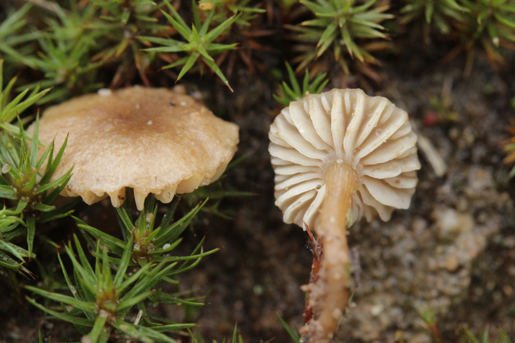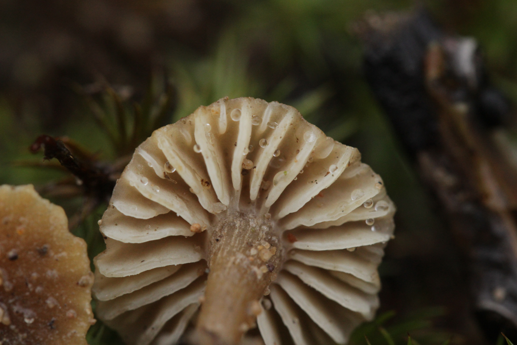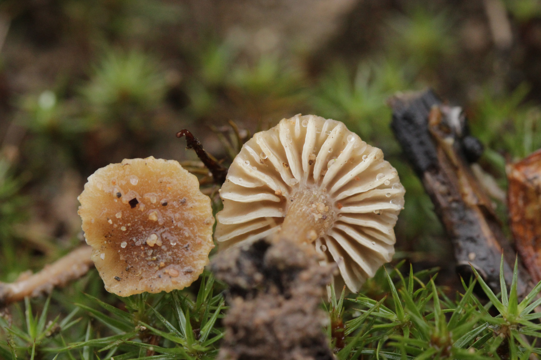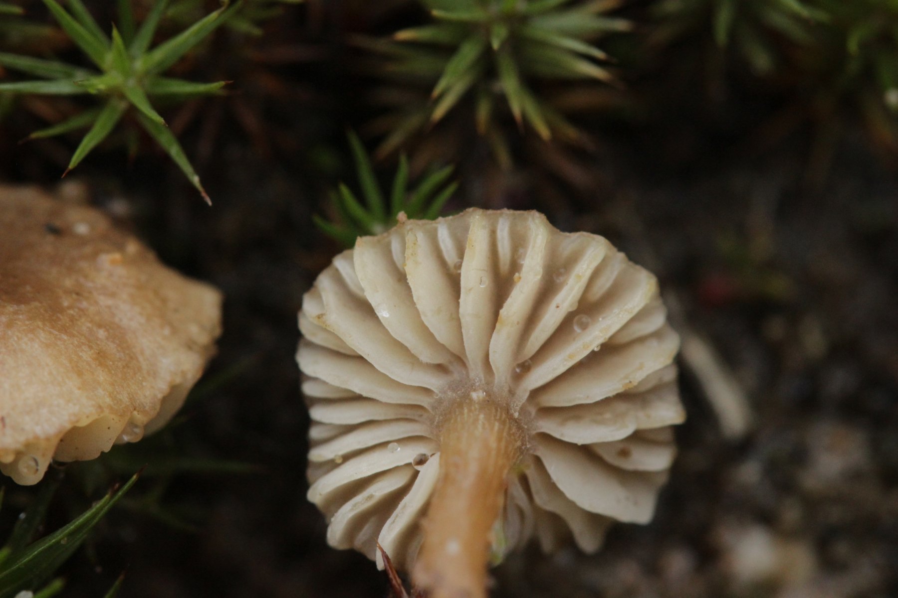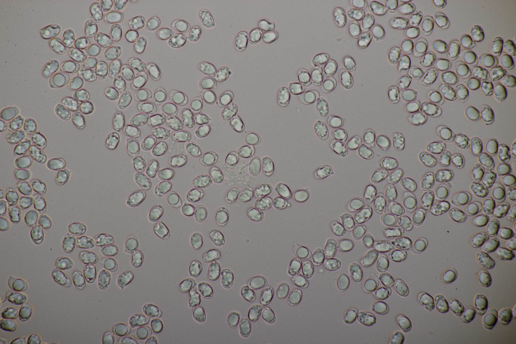 5. Hier stehe ich auf dem Schlauch. Eine Omphalina? Schnallen vorhanden, Zystiden gibt es keine, wobei sich teilweise längliche, sehr dünne Zellen an der Lamellenschneide fanden. Sporengröße (8.4+-0.4) µm x (5.4+-0.3) µm
