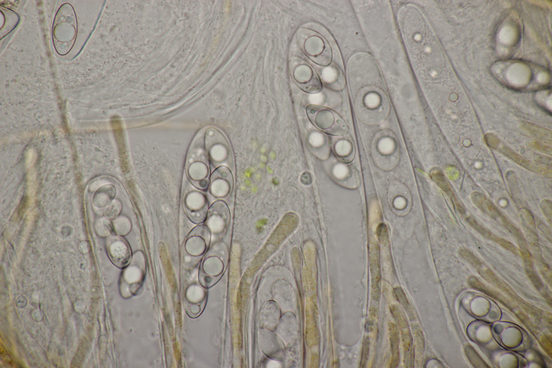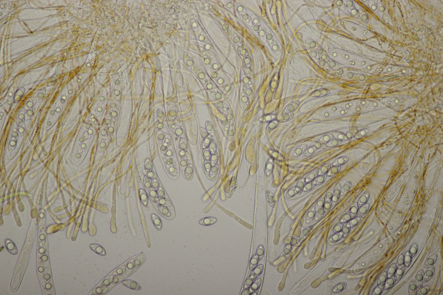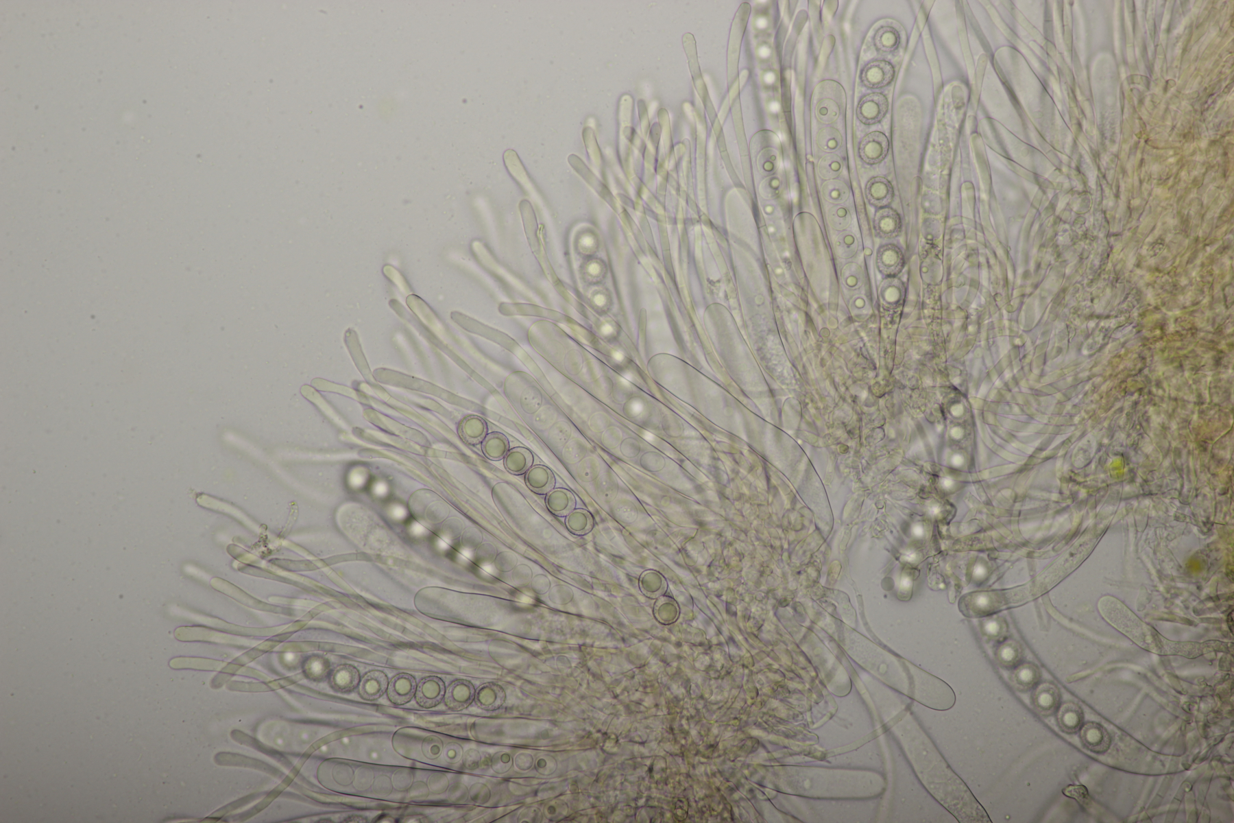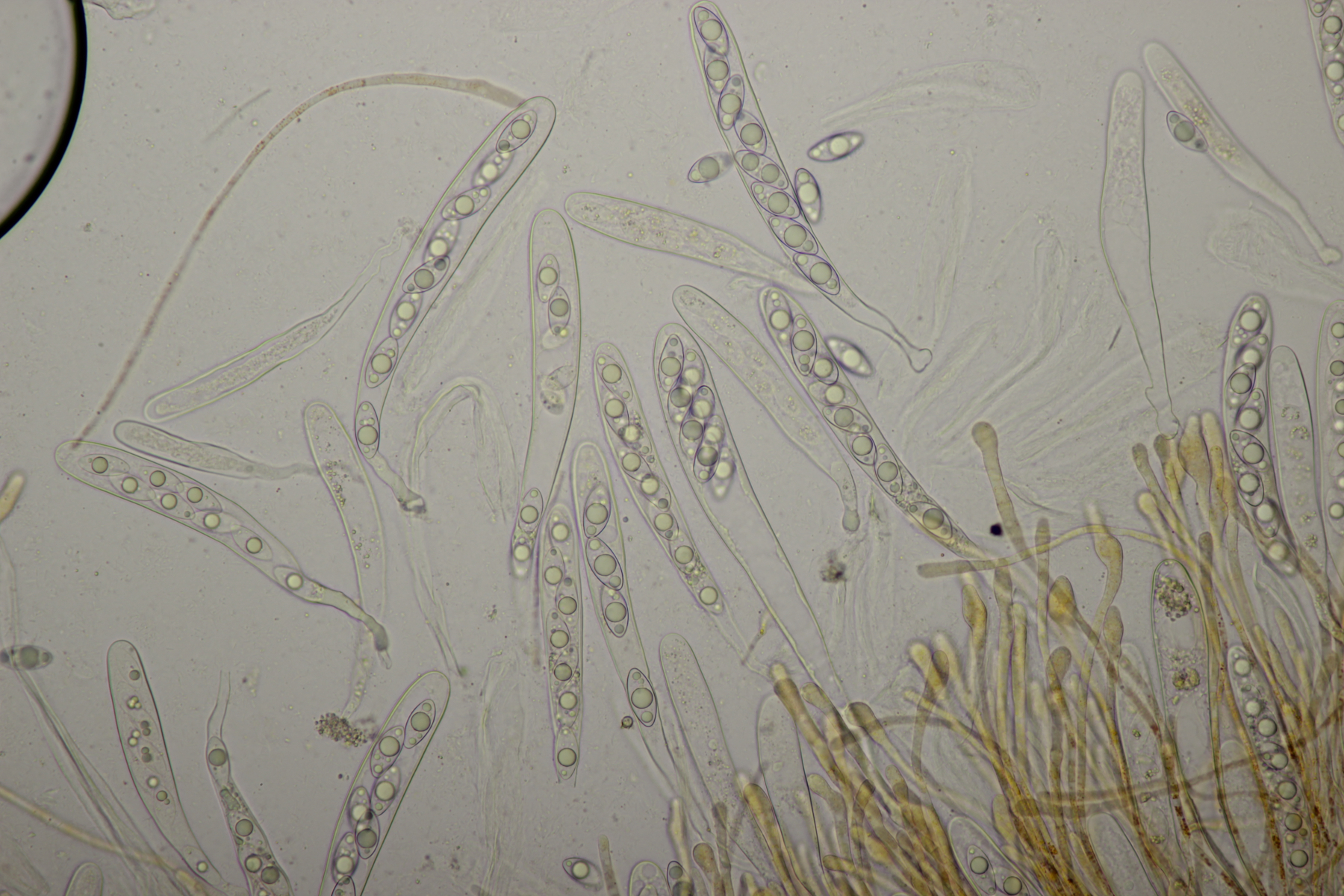 3. Und noch mal Octospora gemmicola, diesmal in besserem Zustand. Sporengrößen von (20.8+-1.2) µm x (10.3+-0.3) µm bzw. (22.7+-1.8) µm x (10.0+-0.6) µm bei den beiden Fruchtkörpern.