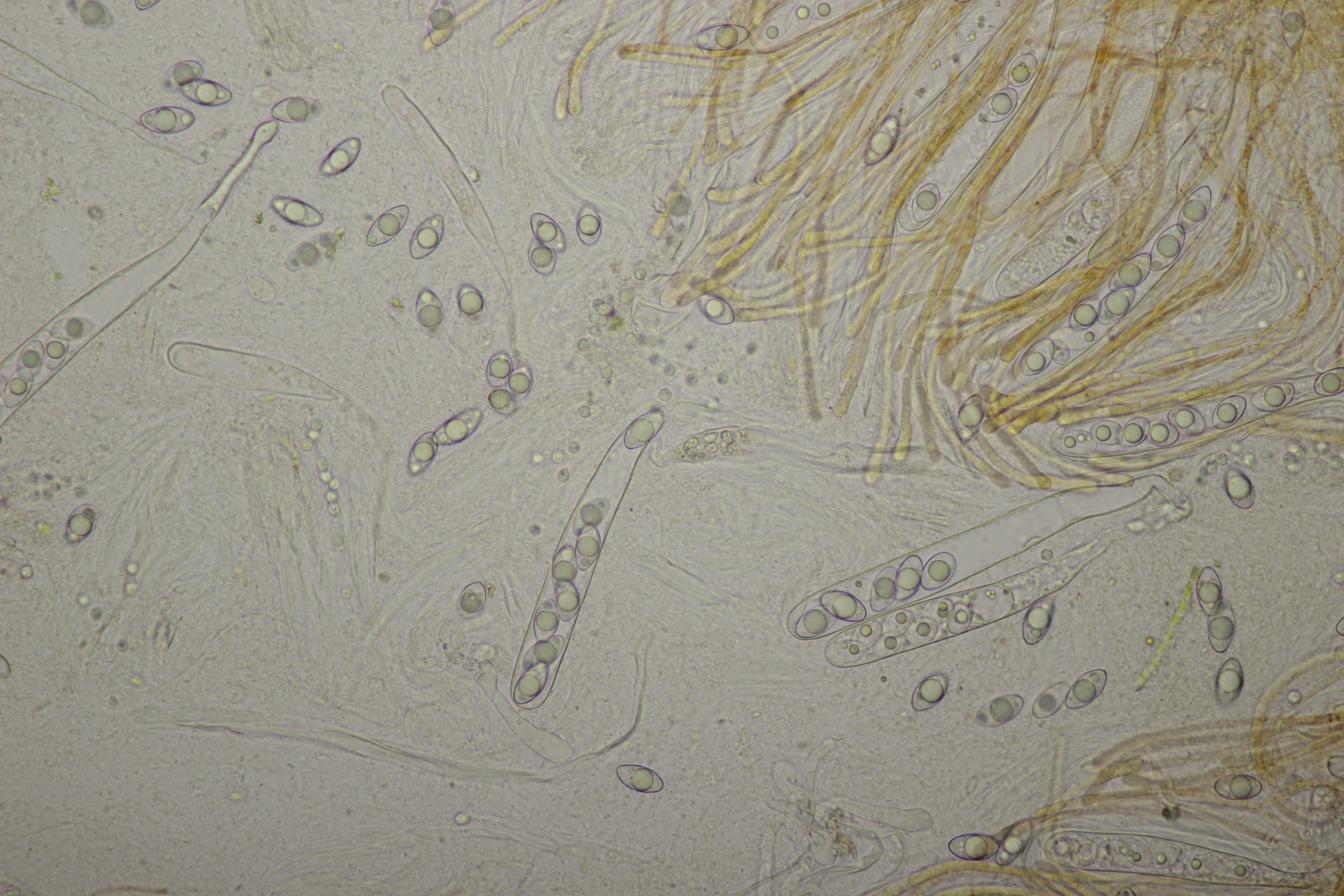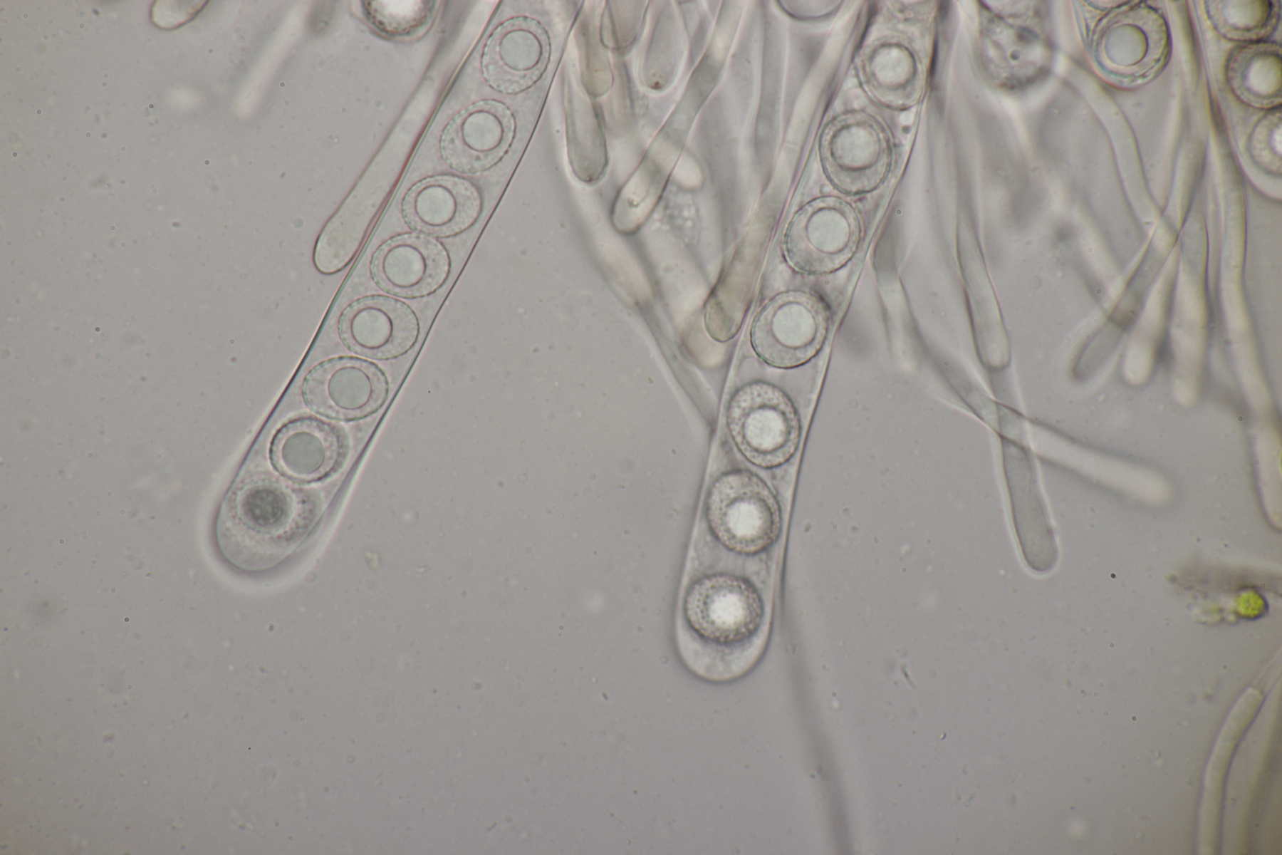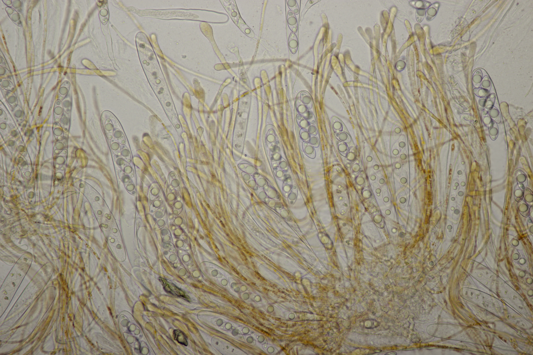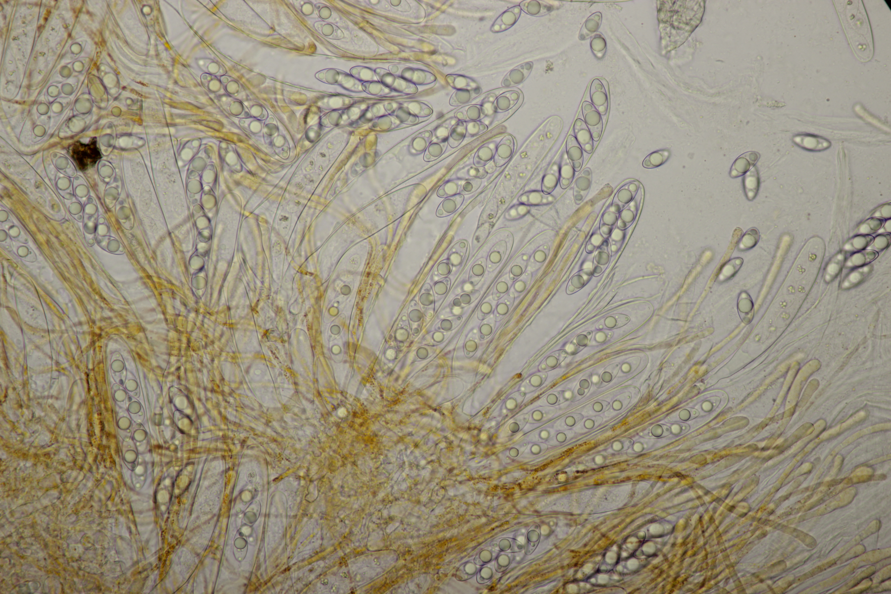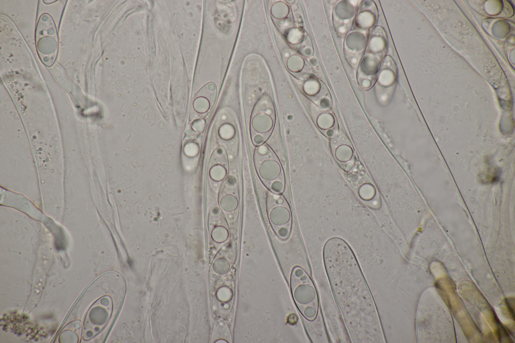3. Und noch mal Octospora gemmicola, diesmal in besserem Zustand. Sporengrößen von (20.8+-1.2) µm x (10.3+-0.3) µm bzw. (22.7+-1.8) µm x (10.0+-0.6) µm bei den beiden Fruchtkörpern.