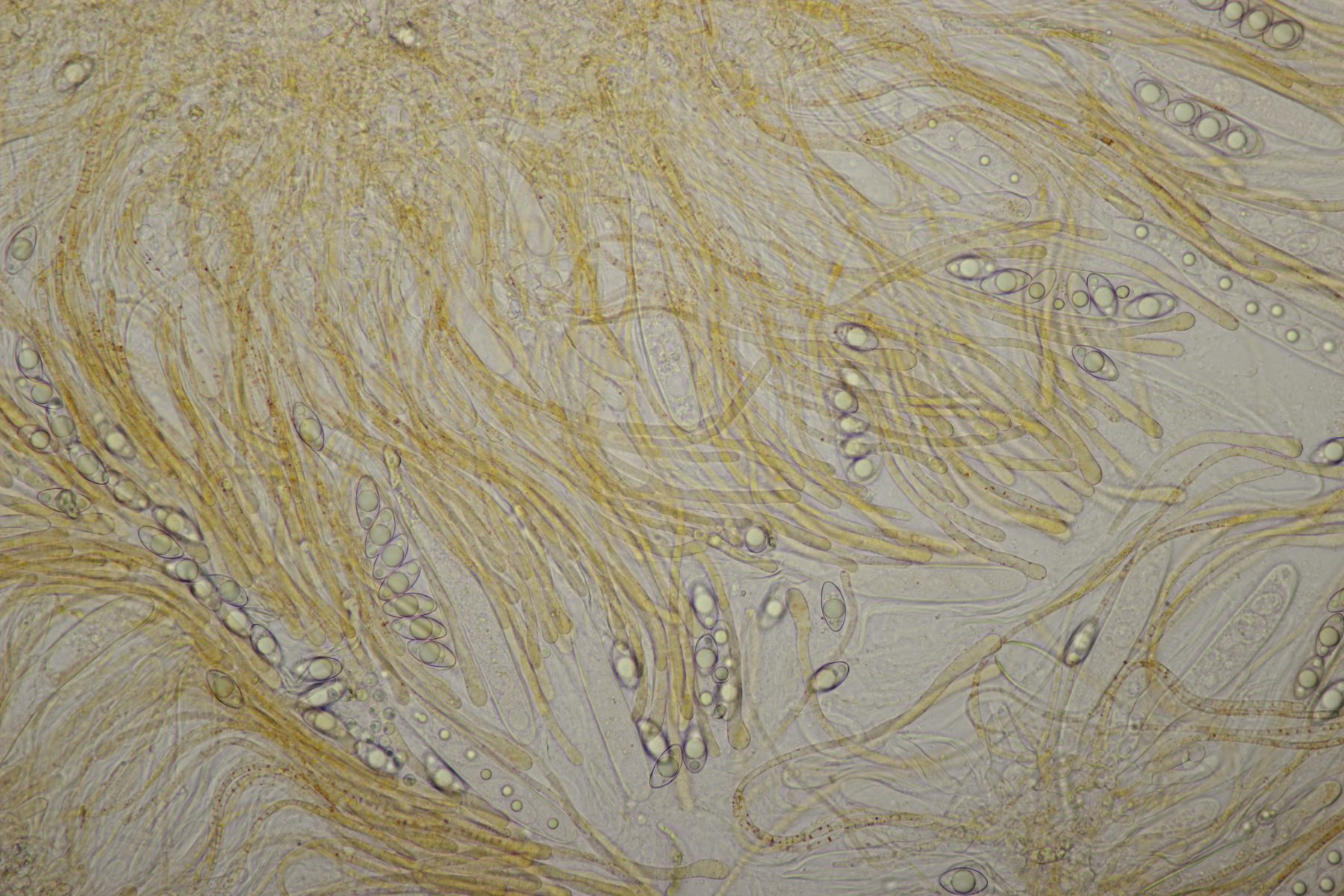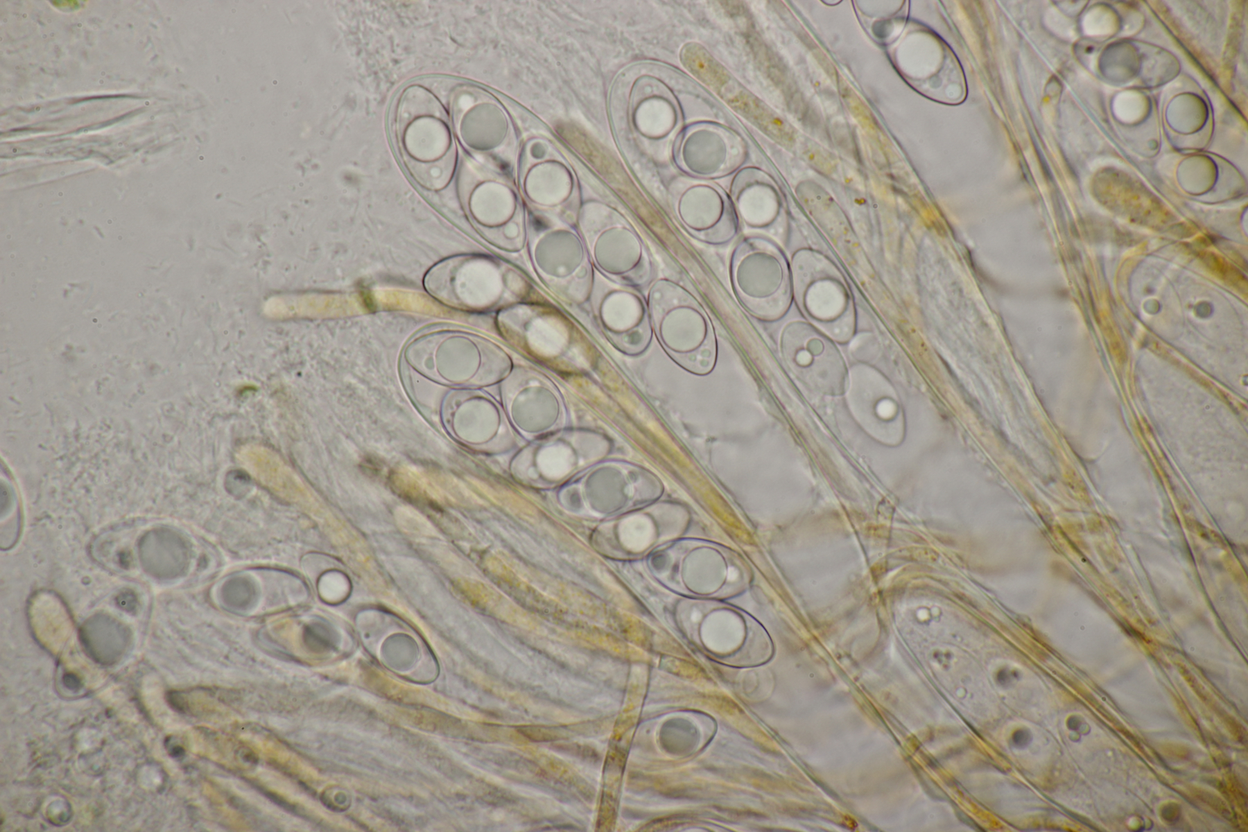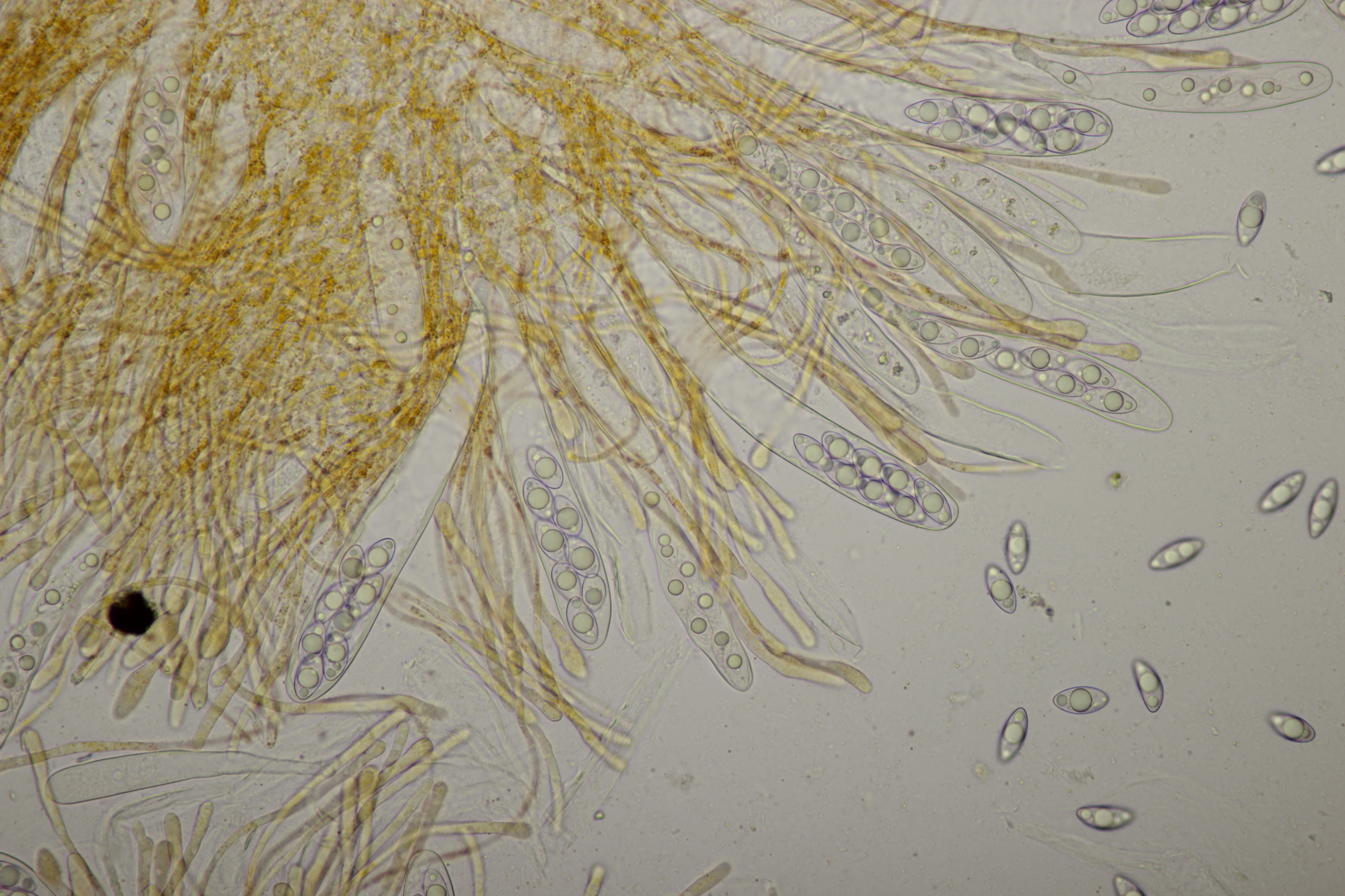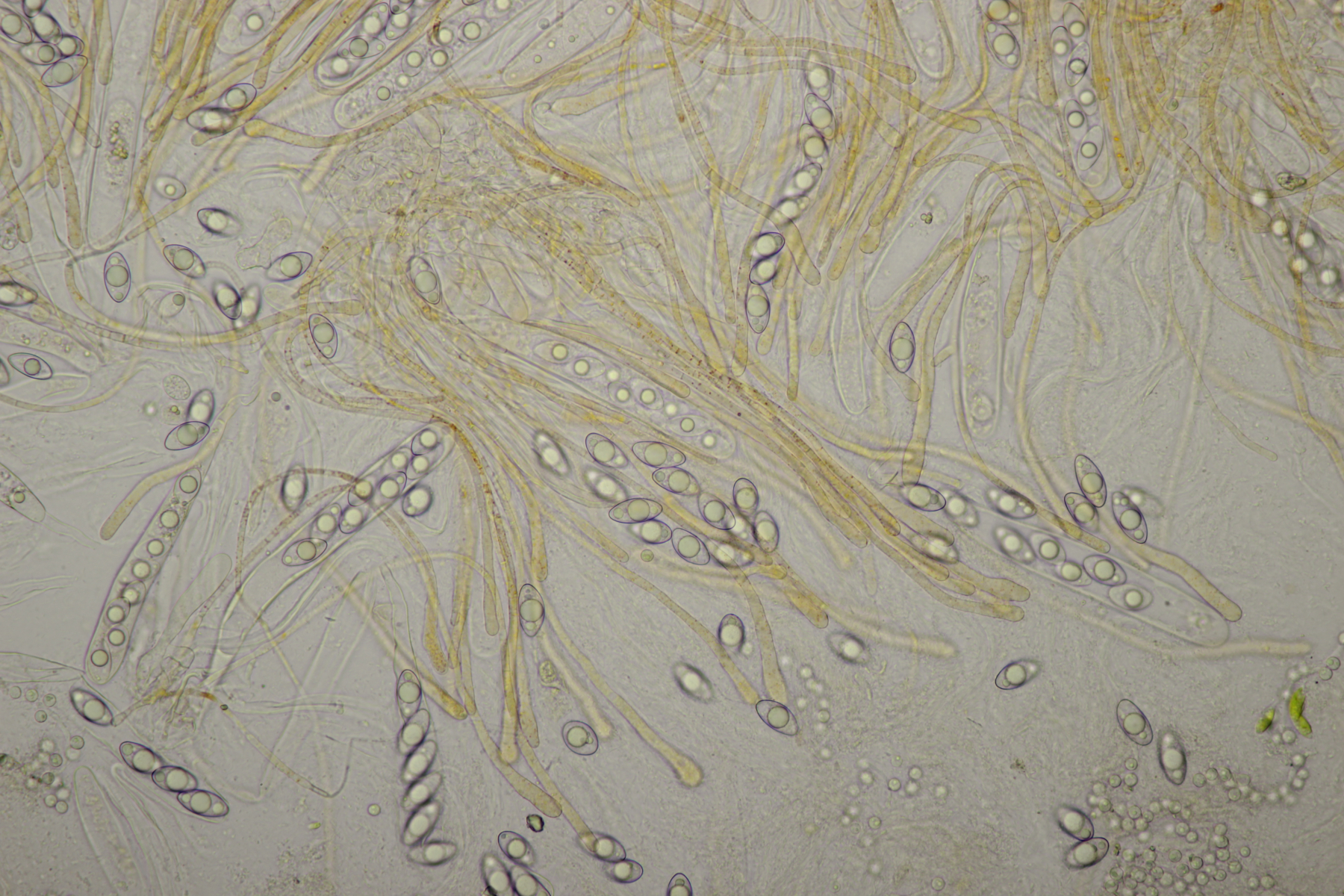 3. Und noch mal Octospora gemmicola, diesmal in besserem Zustand. Sporengrößen von (20.8+-1.2) µm x (10.3+-0.3) µm bzw. (22.7+-1.8) µm x (10.0+-0.6) µm bei den beiden Fruchtkörpern.