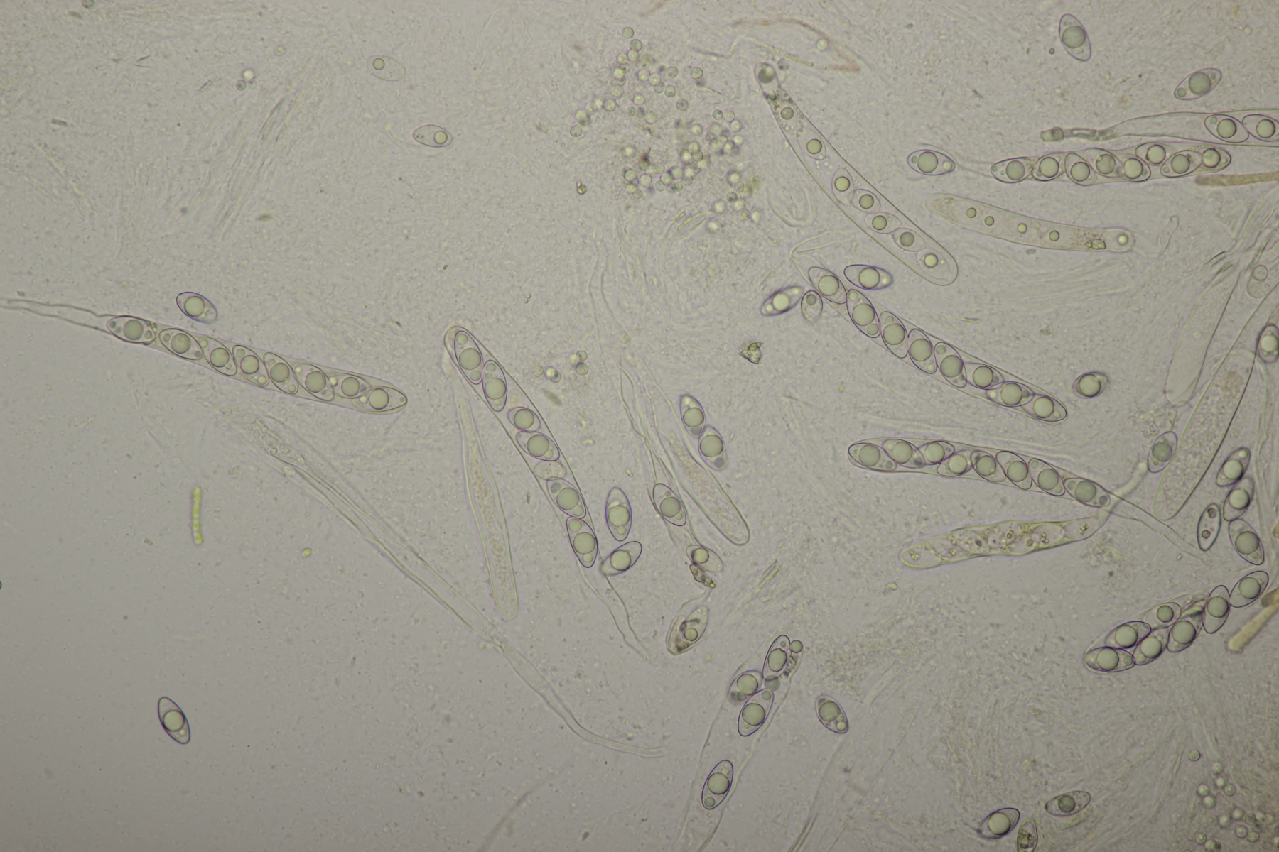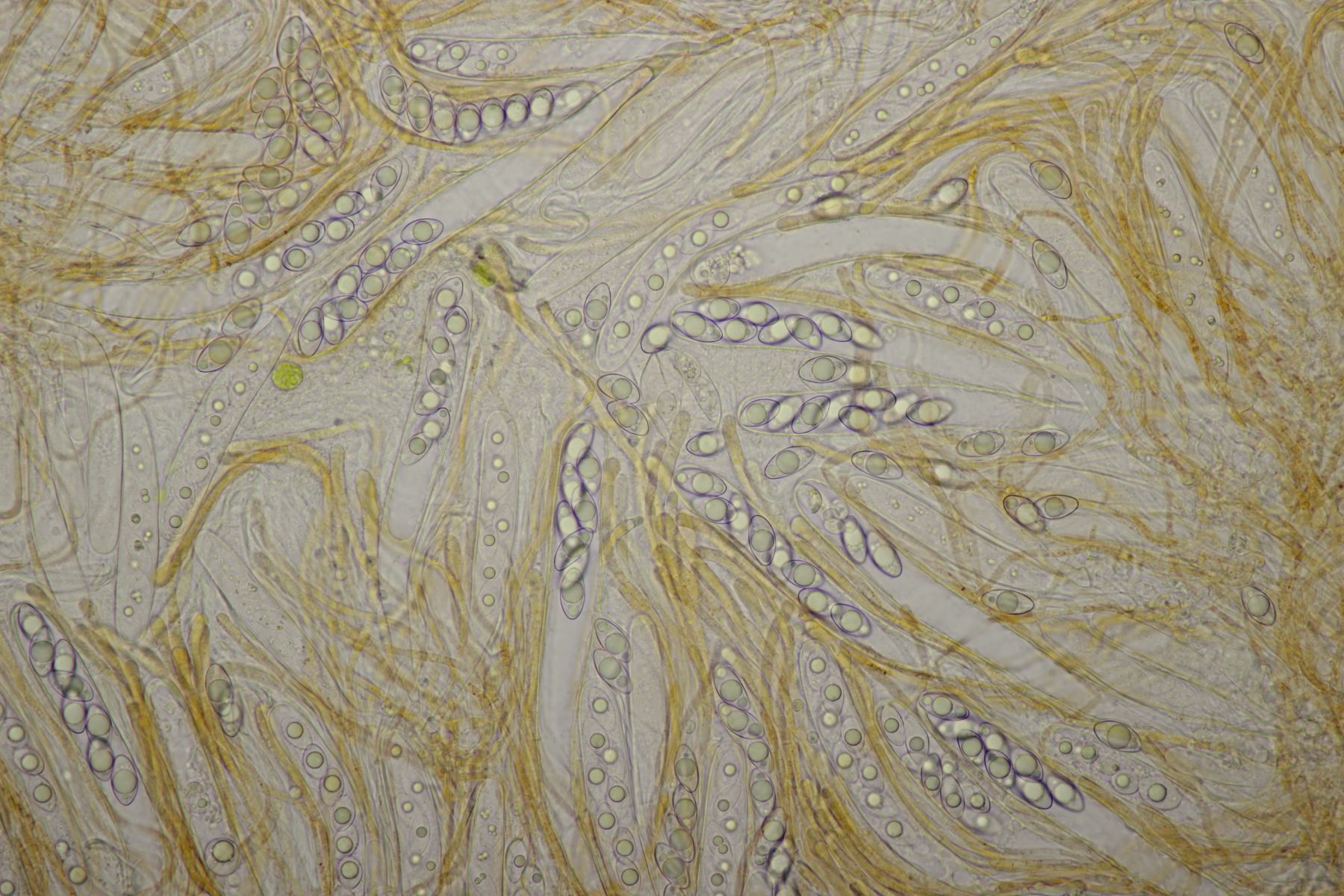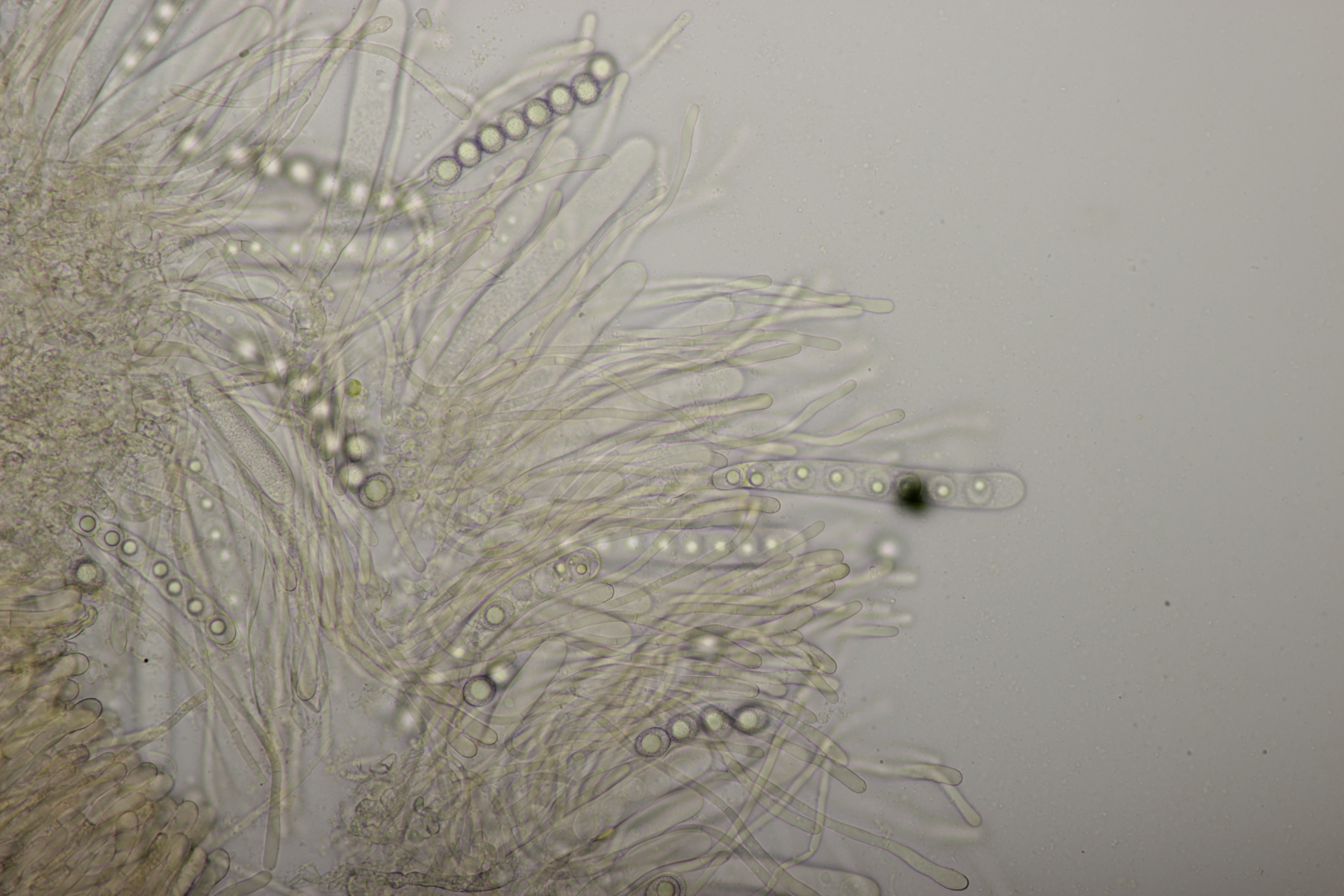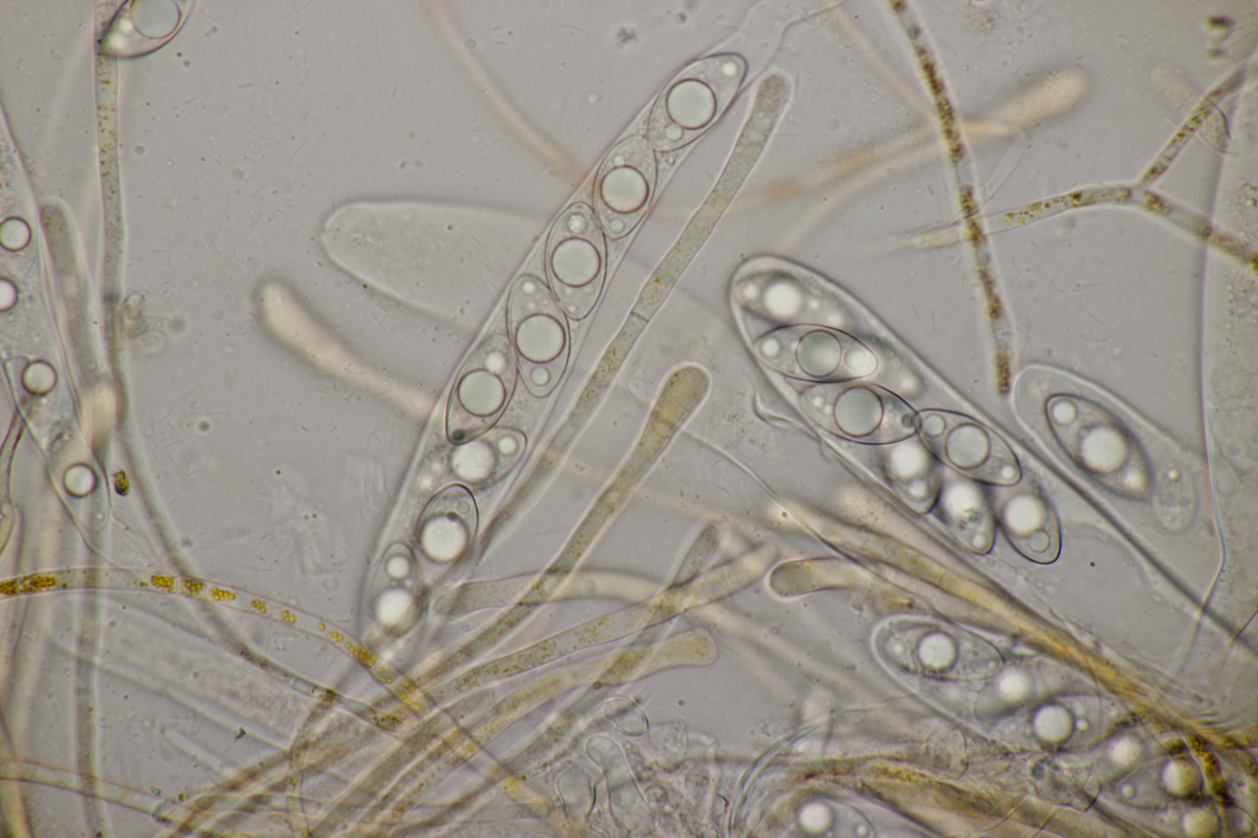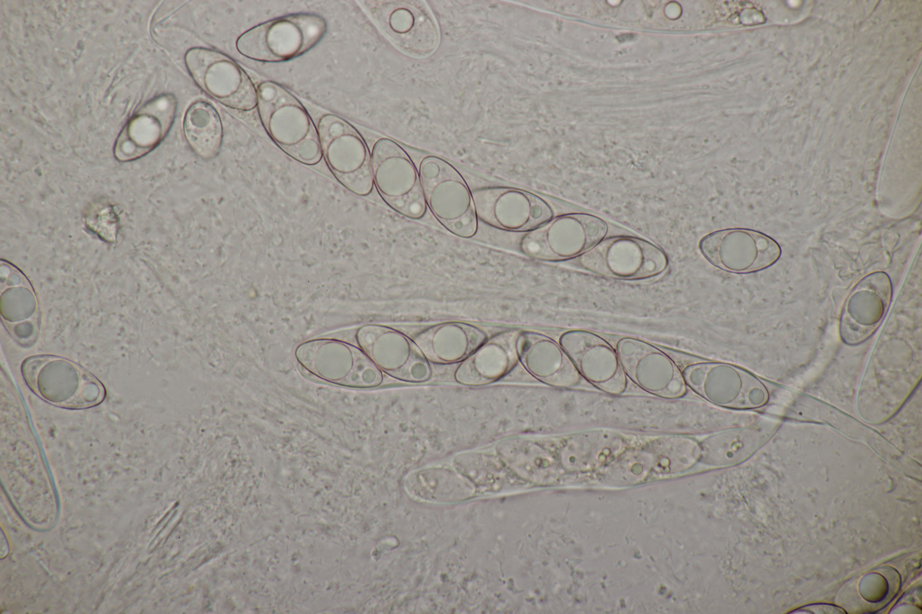 3. Und noch mal Octospora gemmicola, diesmal in besserem Zustand. Sporengrößen von (20.8+-1.2) µm x (10.3+-0.3) µm bzw. (22.7+-1.8) µm x (10.0+-0.6) µm bei den beiden Fruchtkörpern.