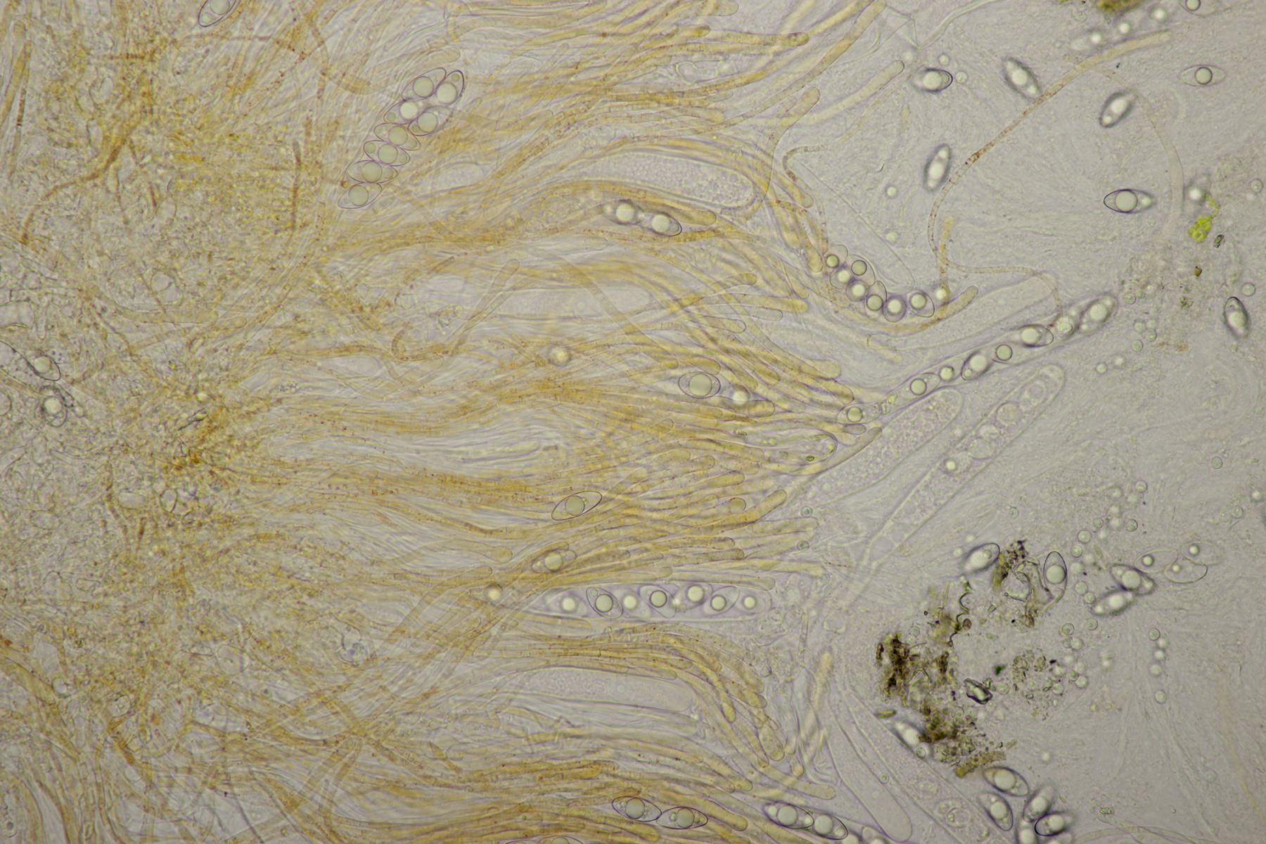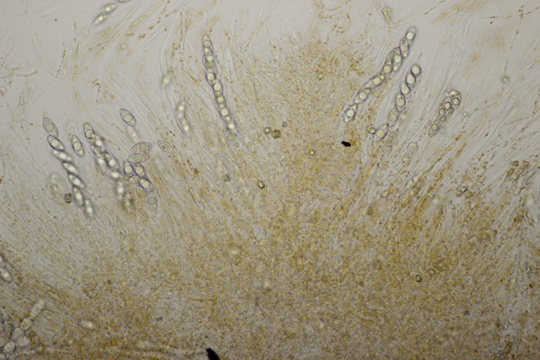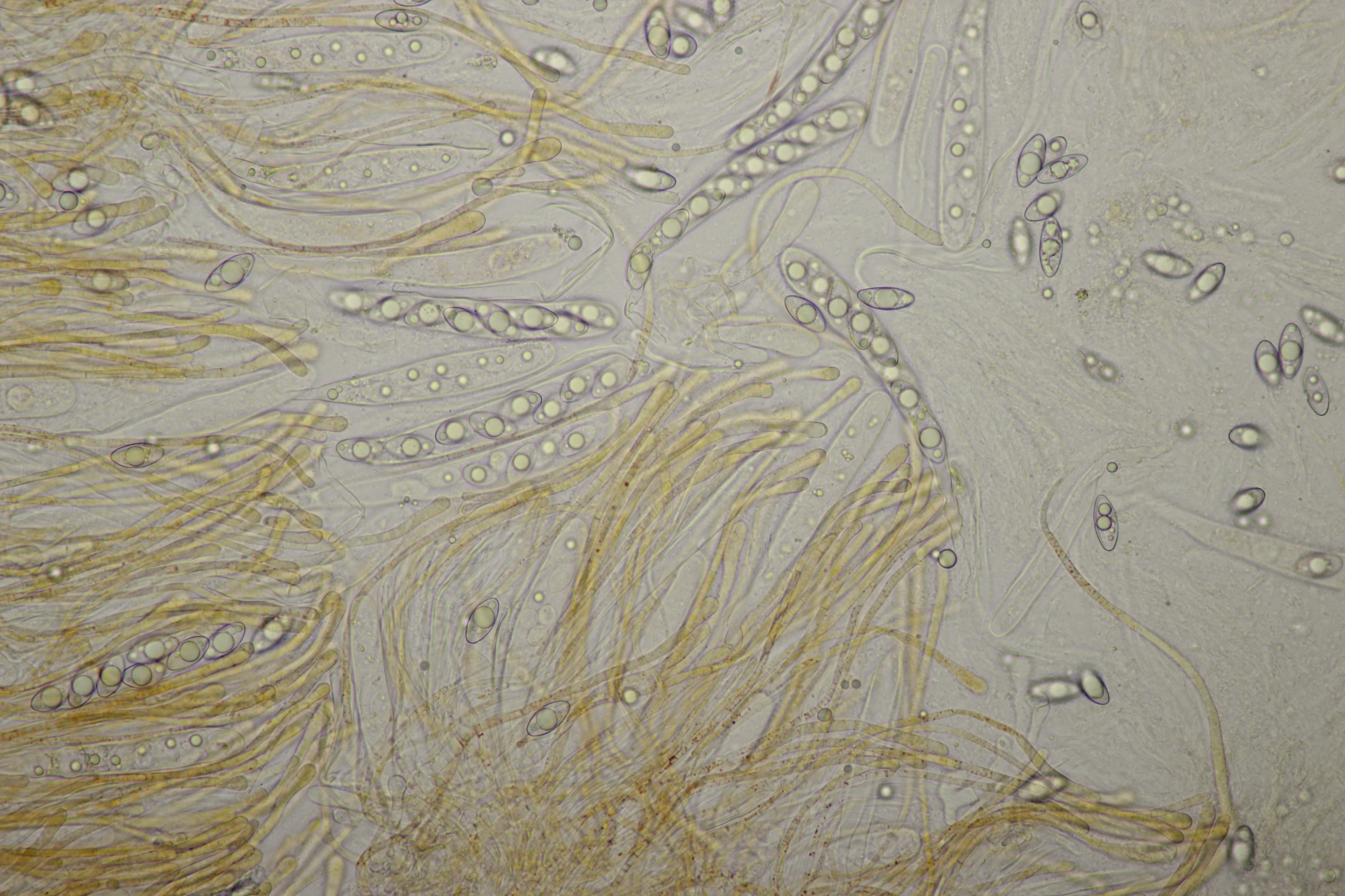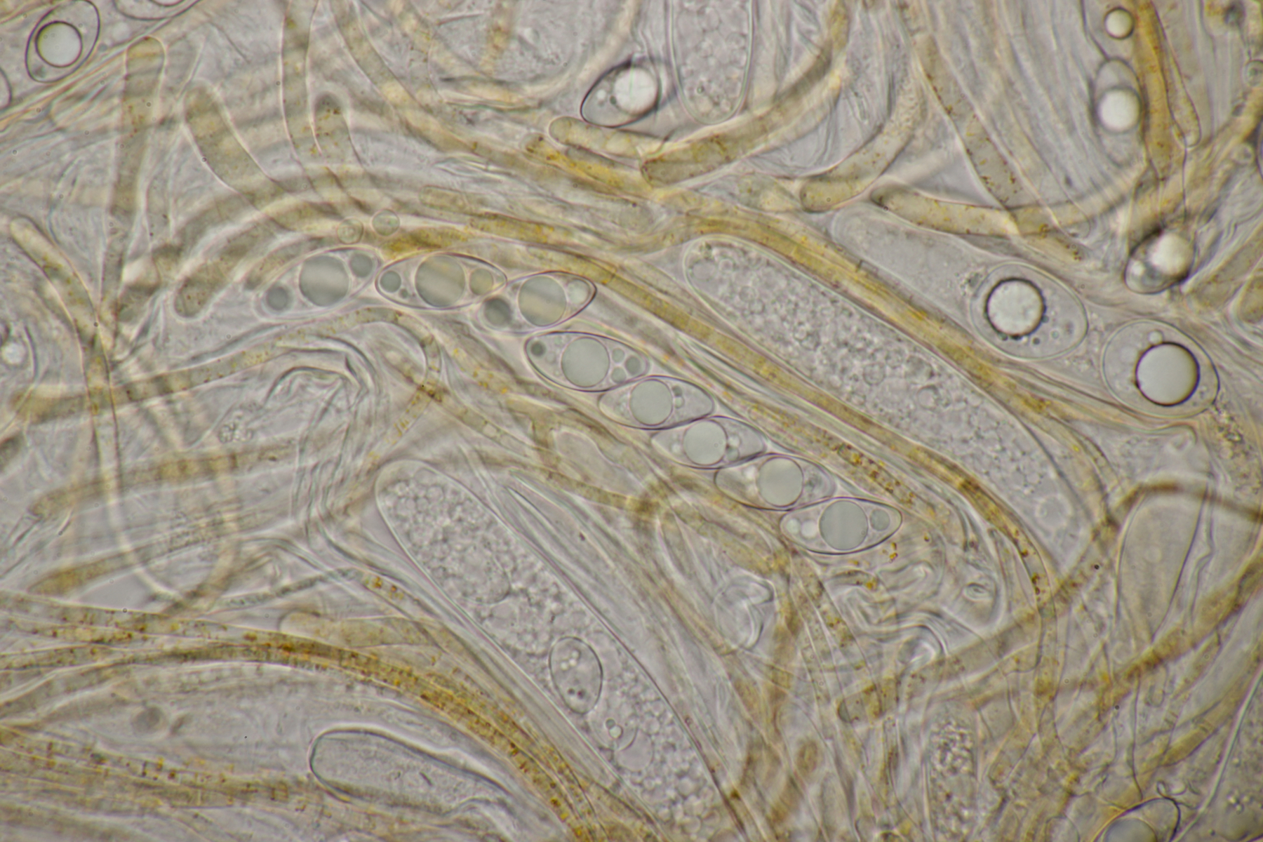 3. Und noch mal Octospora gemmicola, diesmal in besserem Zustand. Sporengrößen von (20.8+-1.2) µm x (10.3+-0.3) µm bzw. (22.7+-1.8) µm x (10.0+-0.6) µm bei den beiden Fruchtkörpern.