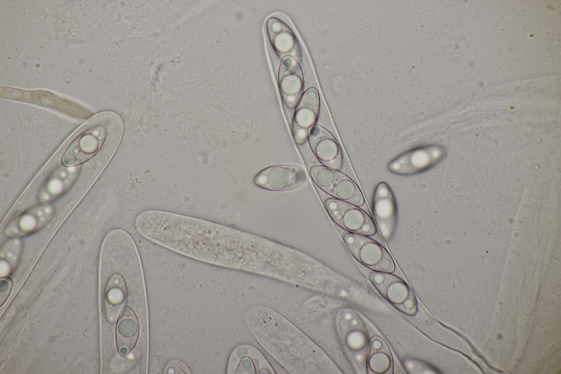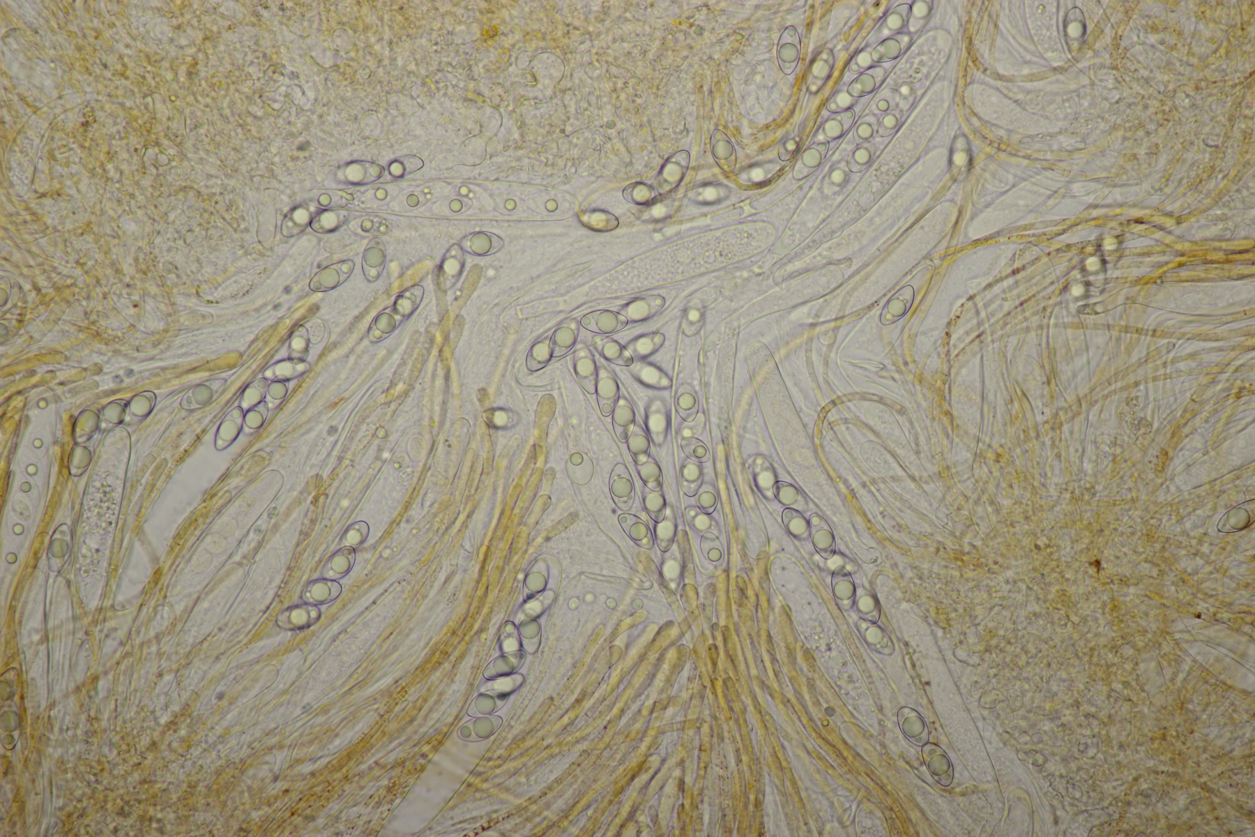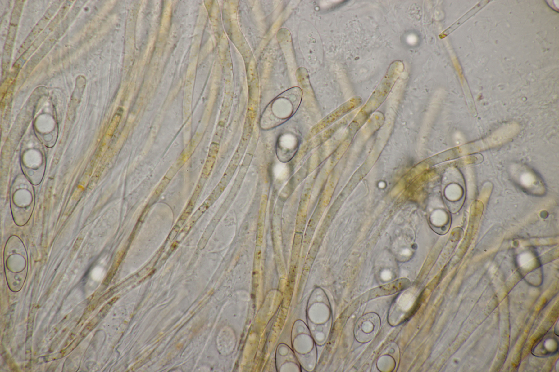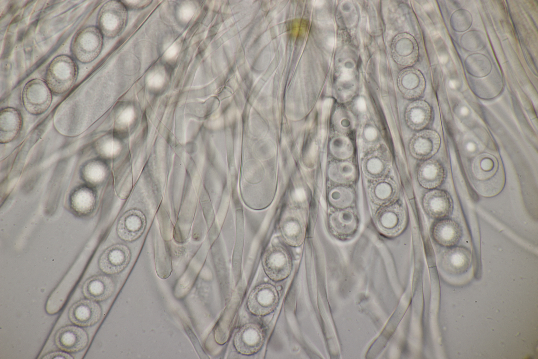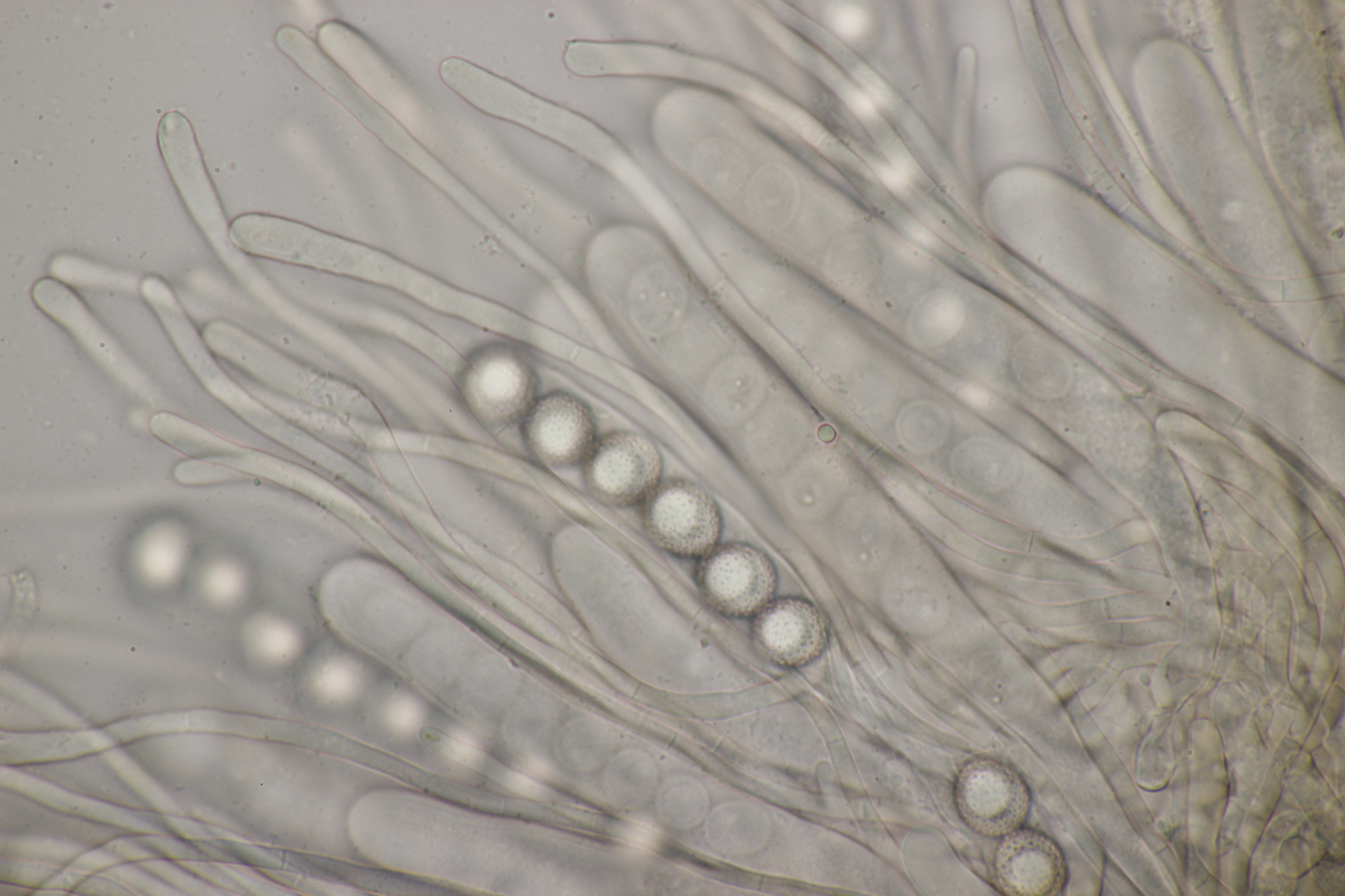3. Und noch mal Octospora gemmicola, diesmal in besserem Zustand. Sporengrößen von (20.8+-1.2) µm x (10.3+-0.3) µm bzw. (22.7+-1.8) µm x (10.0+-0.6) µm bei den beiden Fruchtkörpern.