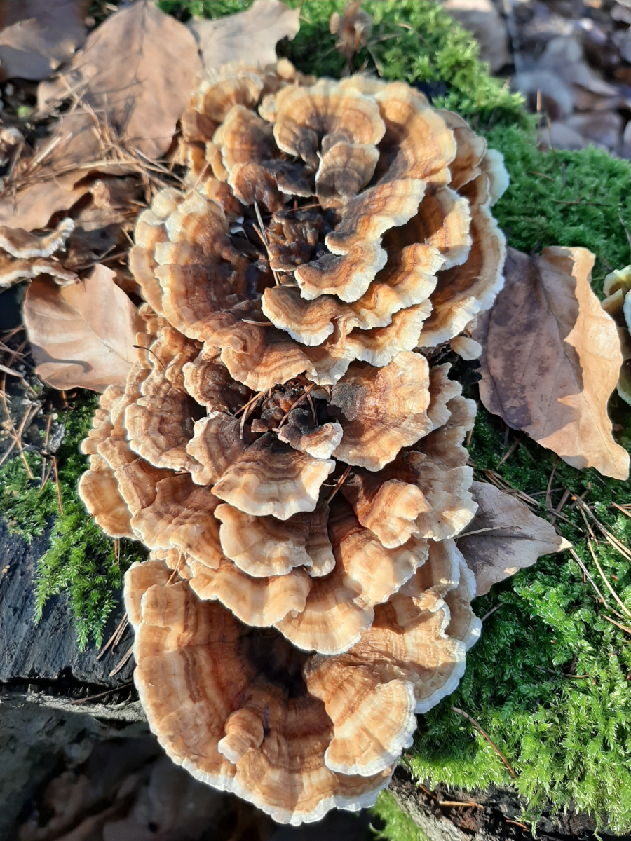 ich beschäftige mich seit kurzem mit Vital- und Heilpilzen. Gestern habe ich eine schöne Runde im Wald gedreht und einige Stämme mit Schmetterlingstrameten (Trametes versicolor) gefunden. Ich habe auch ein paar geerntet und dabei festgestellt, wie unglaublich variabel die aussehen können. Bei manchen war ich mir auch plötzlich unsicher, ob es sich um Schmetterlinge handelt, weil die so dick und stämmig/ verwachsen waren. Habe die dann lieber stehen lassen. Bei allen gesammelten habe ich aber darauf geachtet, das die Poren noch weiß waren.