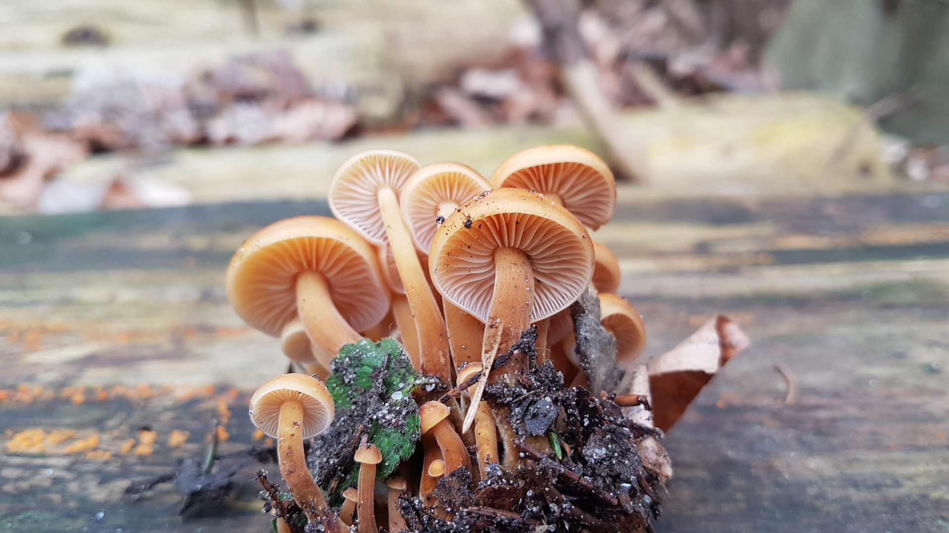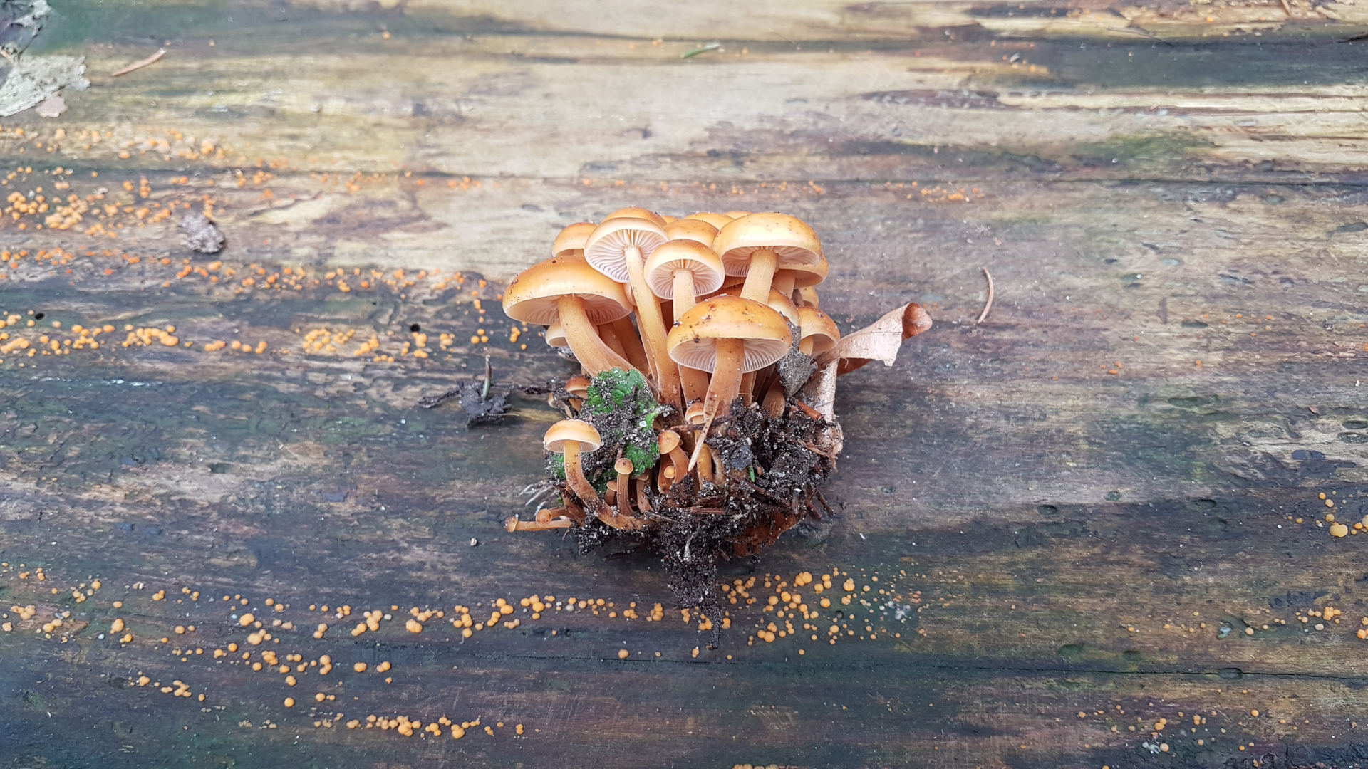 PS: Würde man den orangen Pilz am Baumstamm im Hintergrund eigentlich schon als Kleinpilz bezeichnen oder ist das Definitionssache?