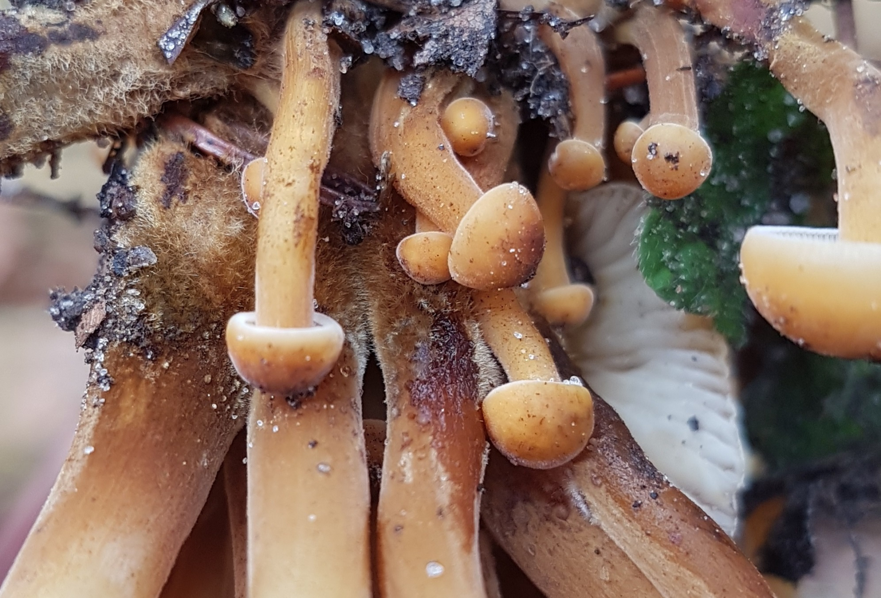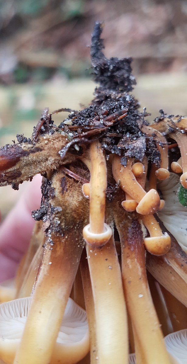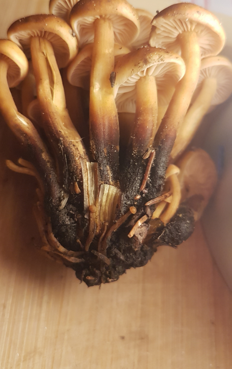 bisher habe ich mich noch nicht an die Samtfußrüblinge herangetraut, meine aber, sie diesen Winter schon mehrmals bestimmt zu haben. Würde mich über eine Bestätigung freuen. Spannend fand ich, dass sich die Stielbasis einige Stunden später zuhause ziemlich dunkel verfärbt hat, sodass es mir jetzt schon eindeutiger erscheint.
