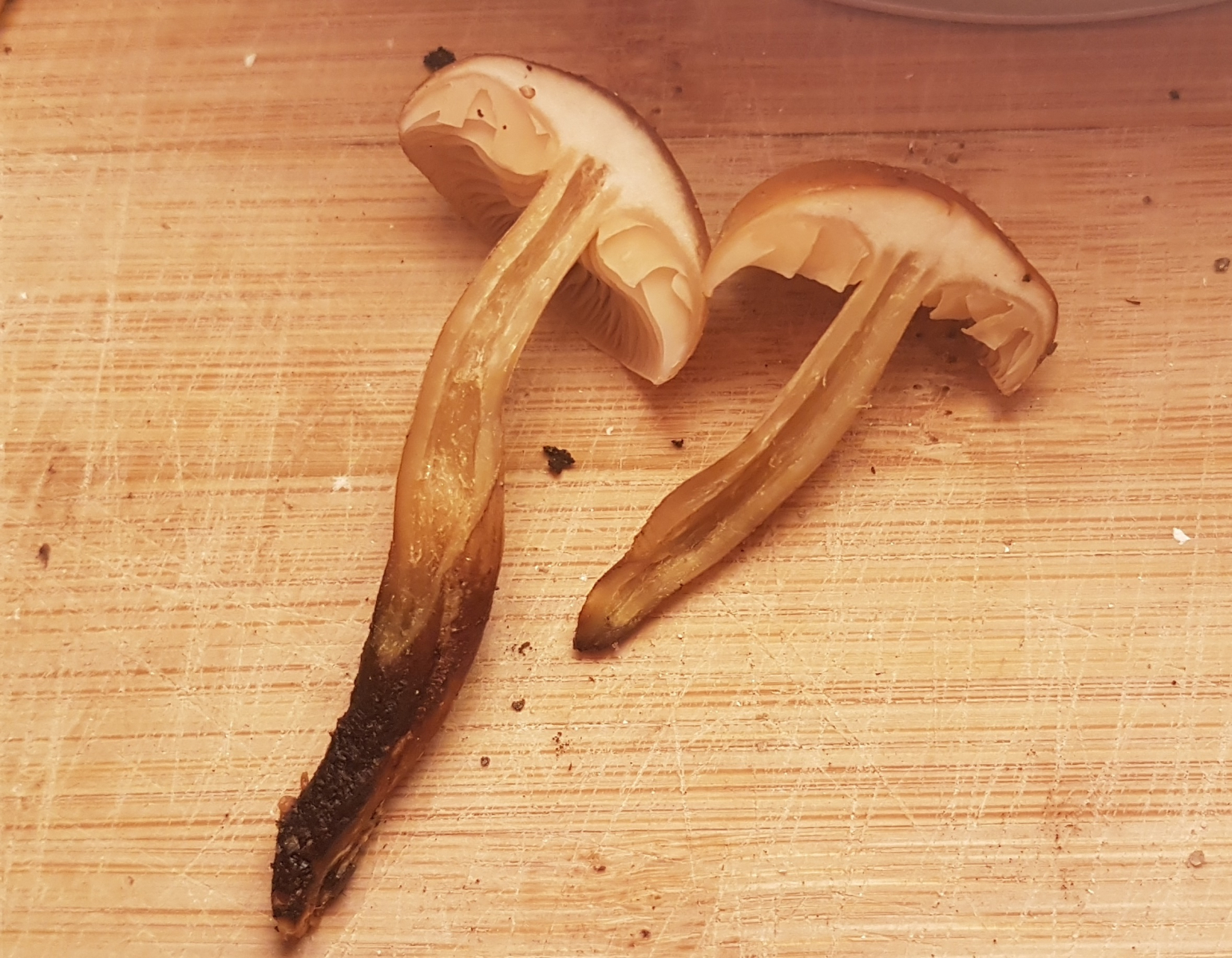 Geruch war angenehm pilzig-nussig, die Hüte auch trocken recht klebrig und die Stiele springen beim Umbiegen zurück.