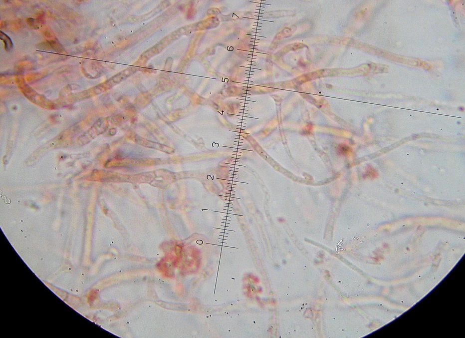 Bei dem komischen, behaarten Zwerg könnte man von den Hyphen her tatsächlich an einen Heterobasidiomyceten (Tremellales) denken - muss aber nicht.