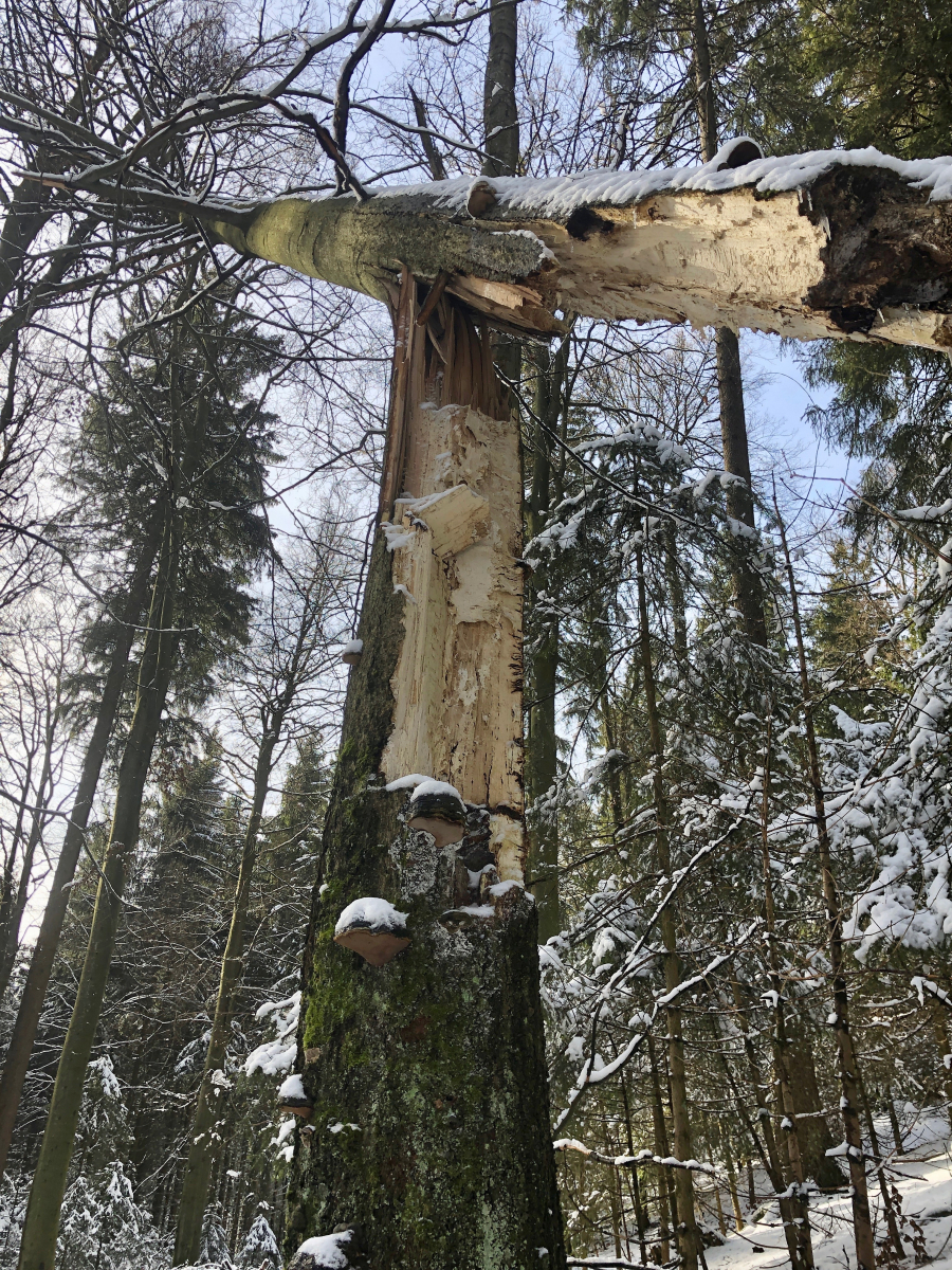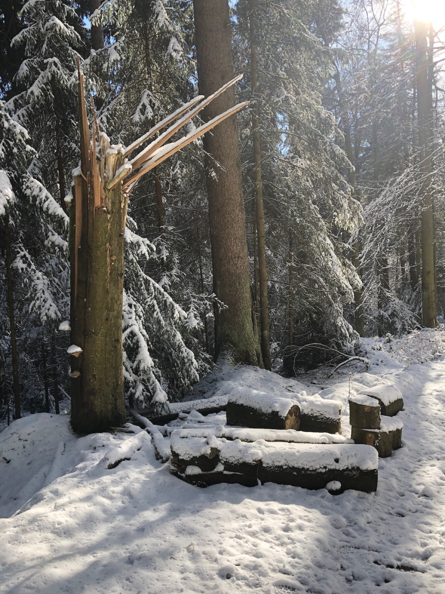 Auf den verschneiten Hochflächen gab es deutliche Hinweise darauf, wie stark sich der Wald in den nächsten Monaten und Jahren verändern wird. Der Holzeinschlag war so umfangreich, dass der Wald ein völlig anderes Aussehen hatte, als in früheren Jahren.