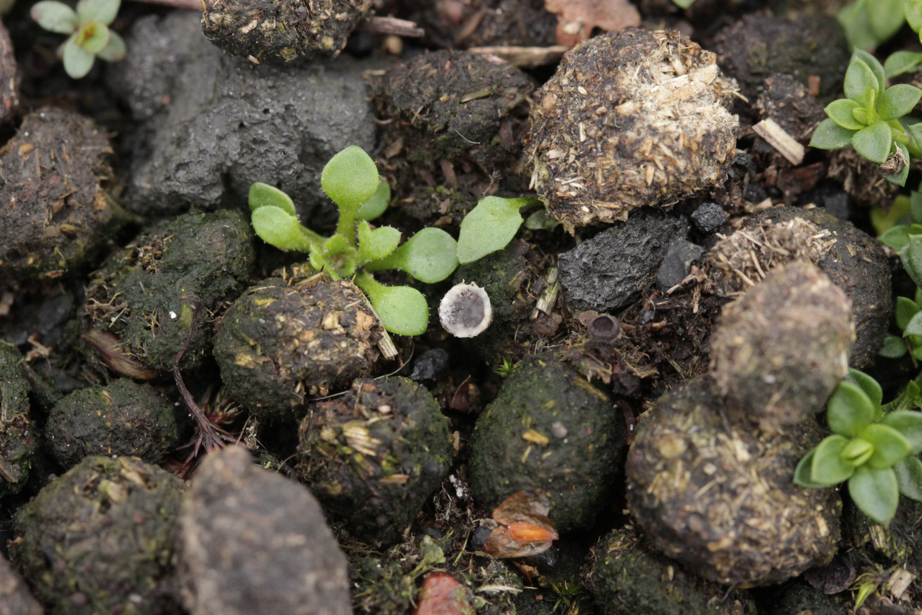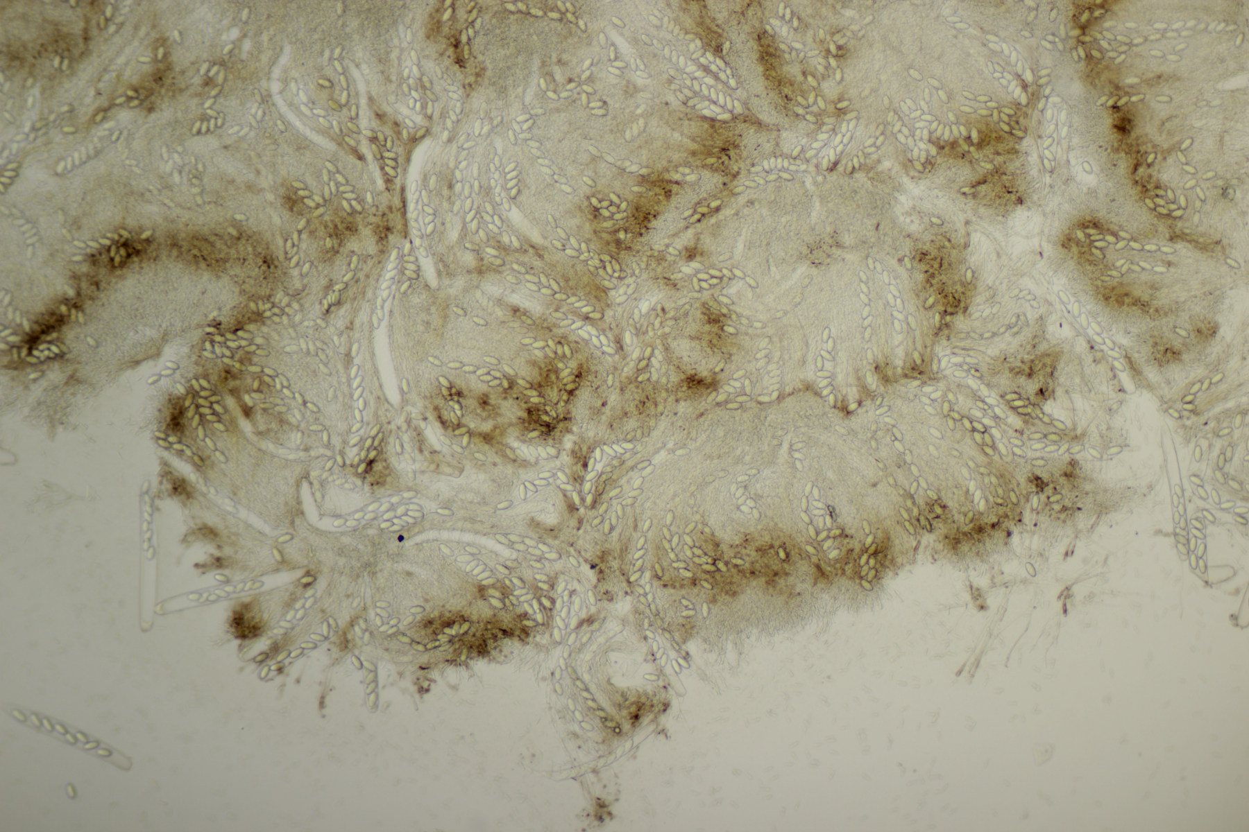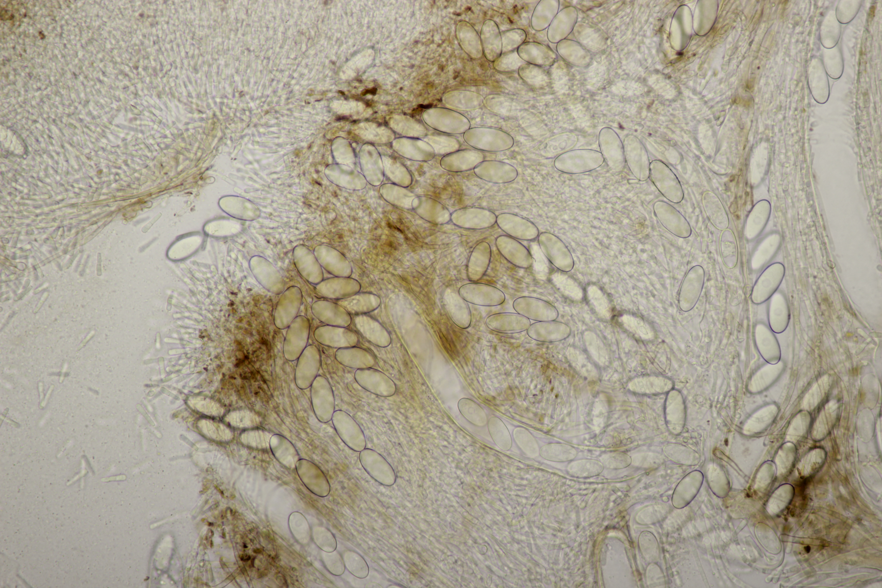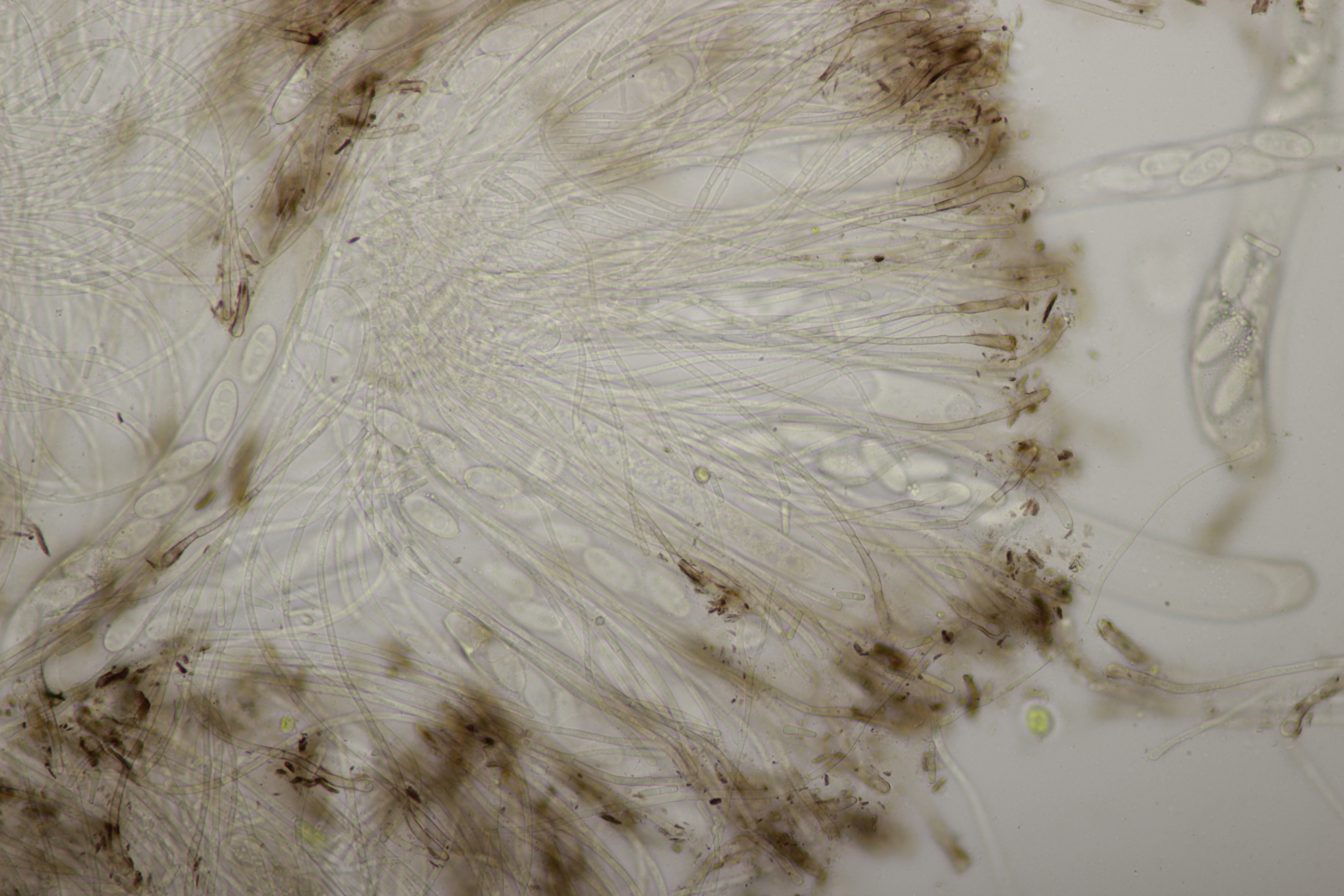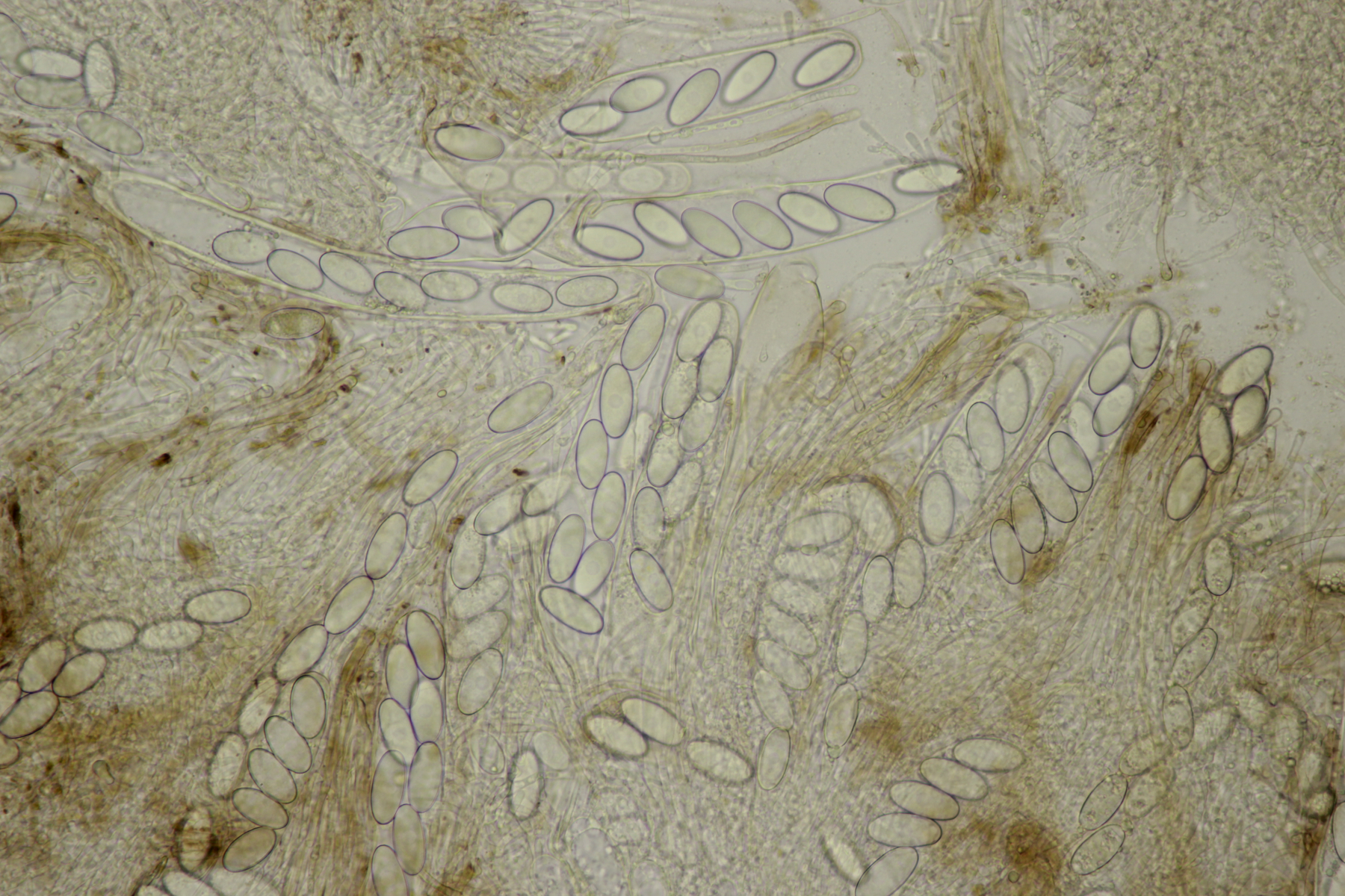 heute Vormittag war ich vor dem Sturm mit dem APR auf Exkursion im Landschaftspark Duisburg. Dort findet man auch immer jede Menge Kaninchenköttel und mit etwas Glück sind dann auch Pilze drauf. Das Glück war heute mit von der Partie und es fand sich folgender Becher, den ich für Pseudombrophila hepatica halten würde. Sporengröße (28.9+-0.6) µm x (13.0+-0.6) µm.