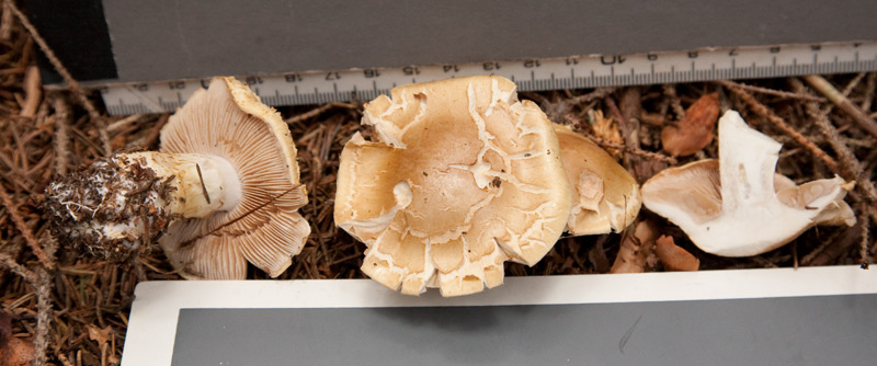 ---> Schon erstaunlich, wie man hier eine andere Gattung als Tricholoma (Ritterlinge) auswürfeln kann, wenn man verm. Sporenstaubfarbe, Lamellenansatz, Habitus, Viscosität des Hutes beachtet.