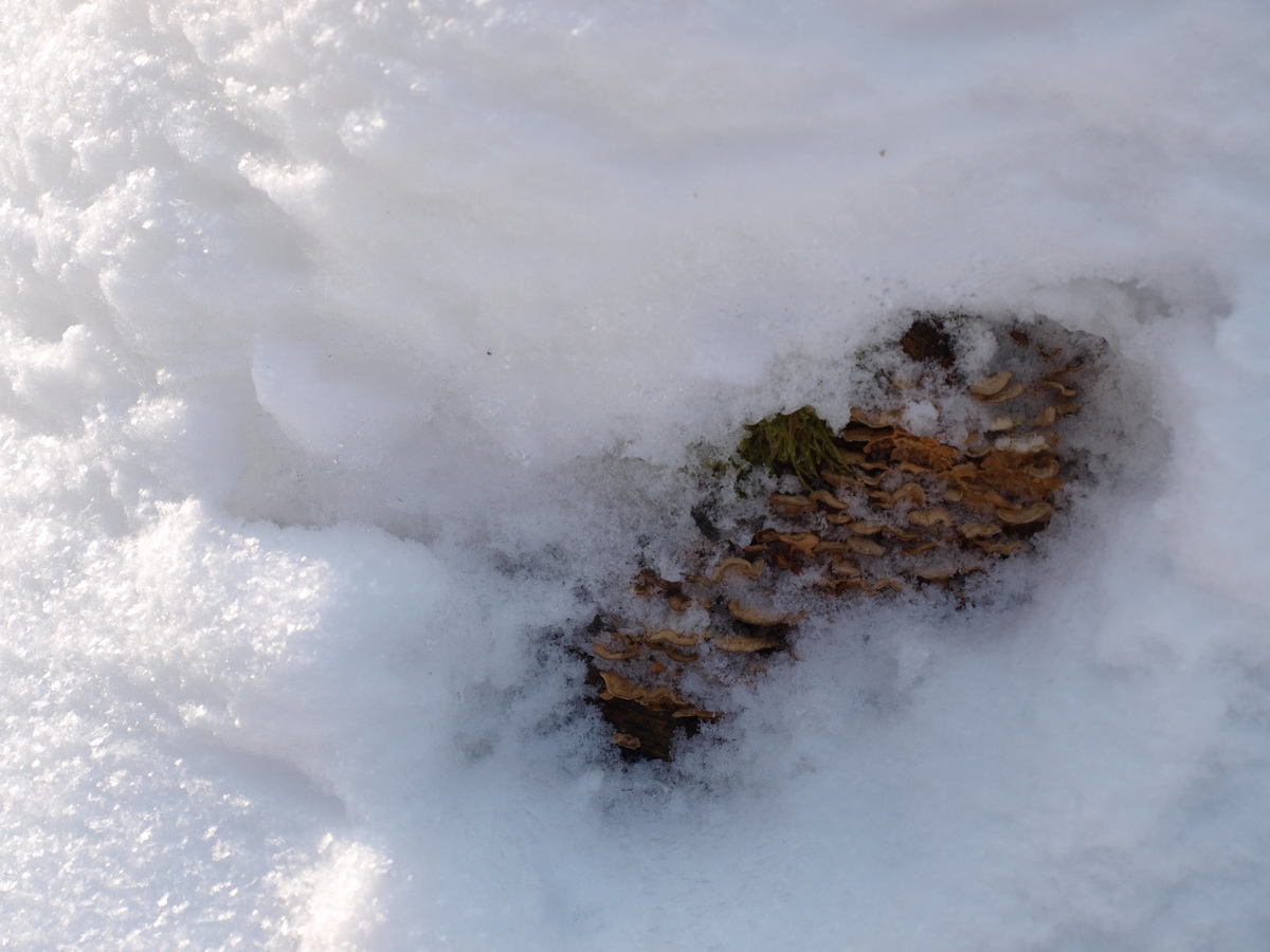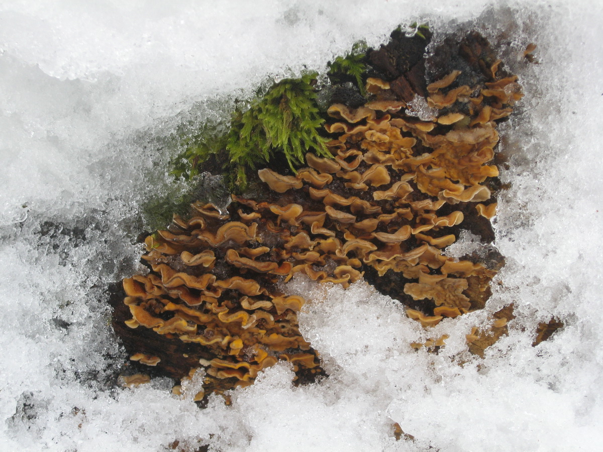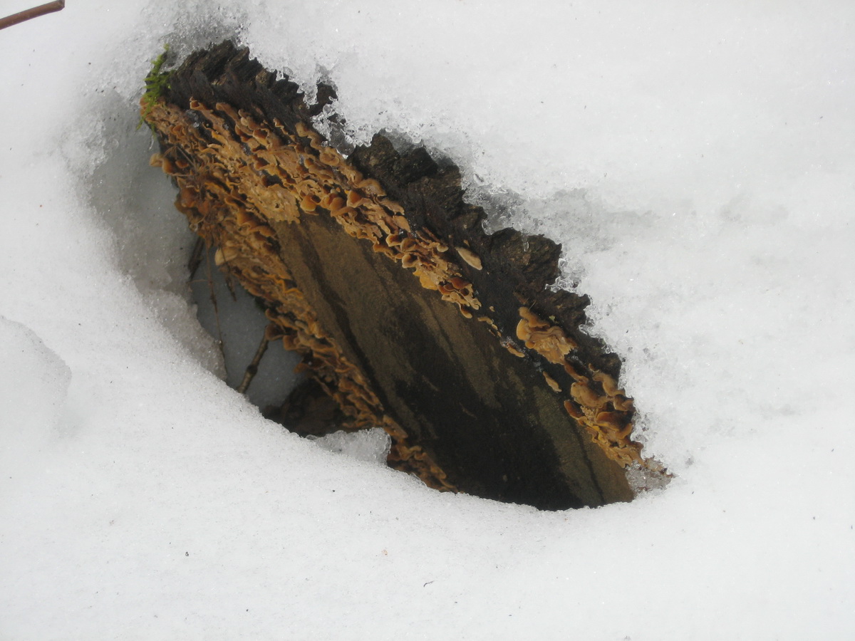 im Winter 2010 fand ich diesen Pilz an Eiche (eine Tramete?). Das Besondere: obwohl überall eine Schneedecke lag, hatte dieser Pilz sich frei getaut. Der Schnee war um den Pilz herum geschmolzen. Ob es am Stoffwechsel lag oder an einem Inhaltstoff, der Schnee zum Schmelzen bringt oder ...? Da ich keine Ahnung davon habe, stelle ich die Beobachtung hier ins Forum. Vielleicht kann sich ja daraus mal ein Streusalz-Ersatz entwickeln.