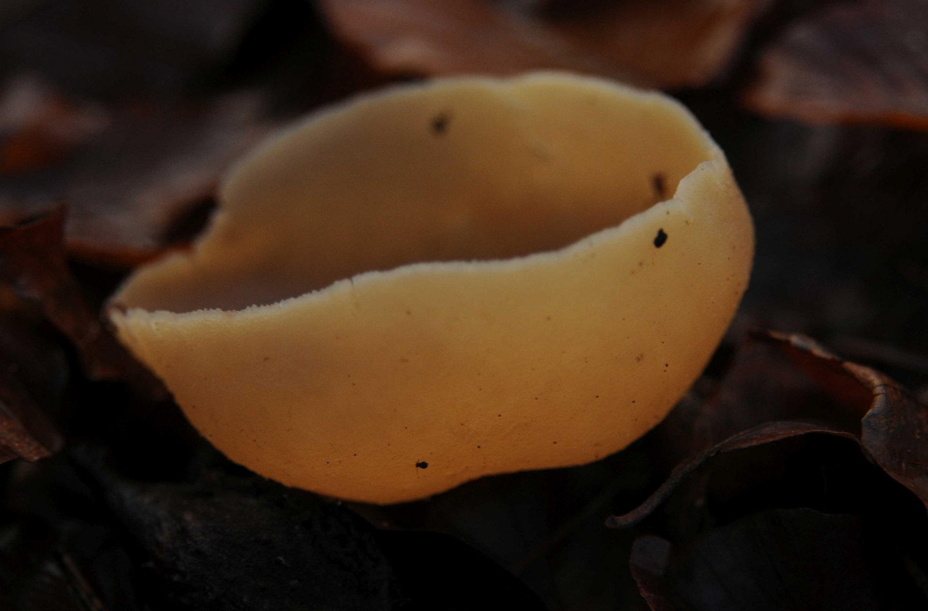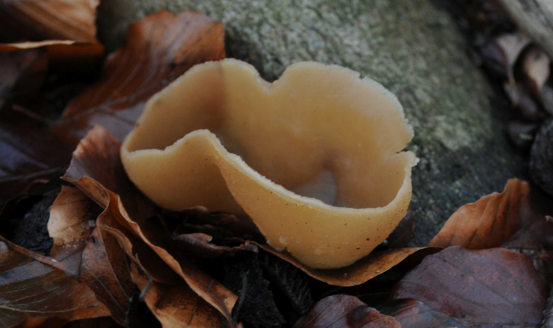 Diese Pilze wuchsen am 15.12.2019 recht zahlreich am Boden eines älteren Buchenwalds (in Nachbarschaft von ein paar Röhrigen Keulen Macrotyphula fistulosa).