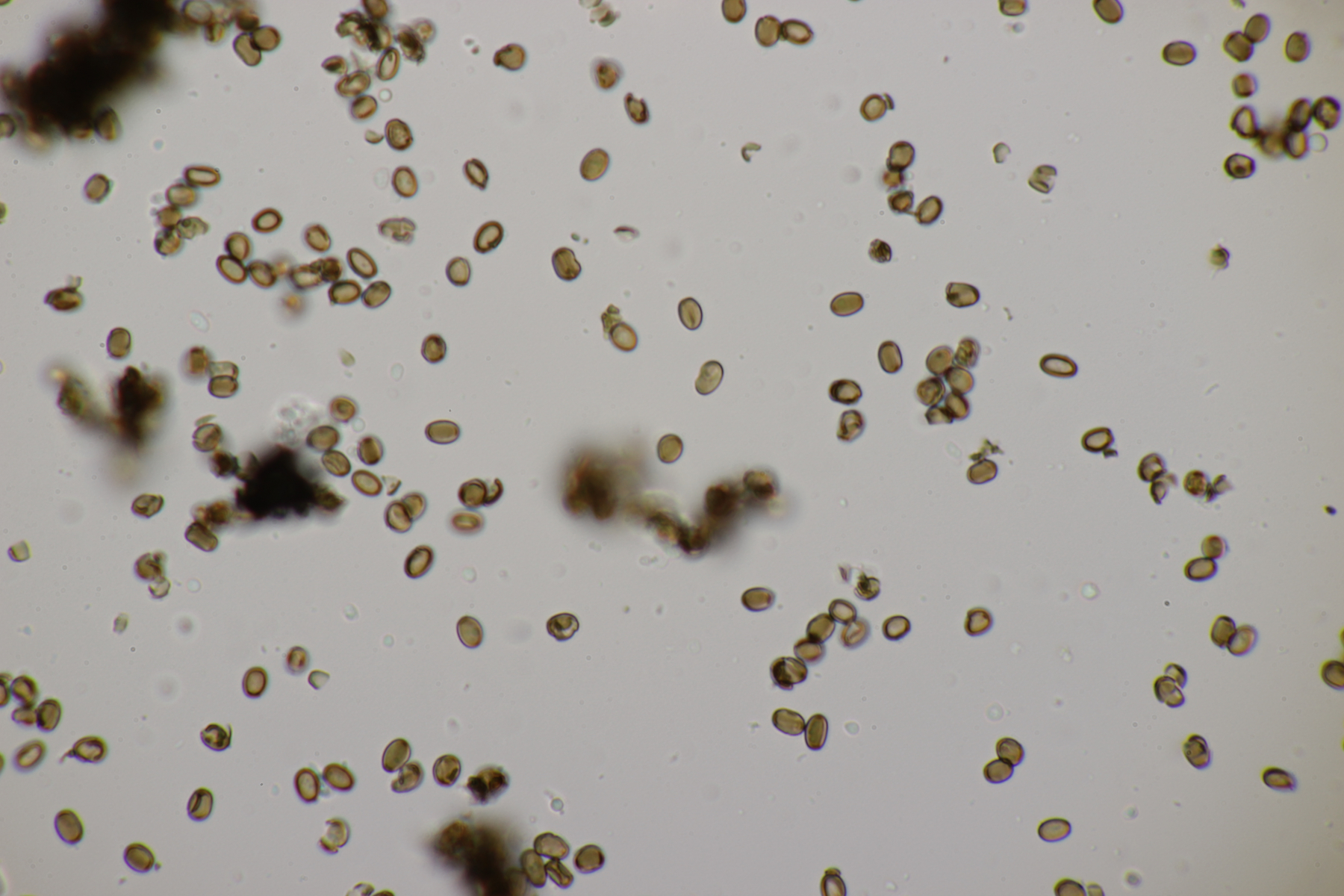 5. Lasiobolus cuniculi auf Kaninchen. Den hatte ich im Dungforum schon separat vorgestellt. Sporengröße (22-26) µm x 12 µm