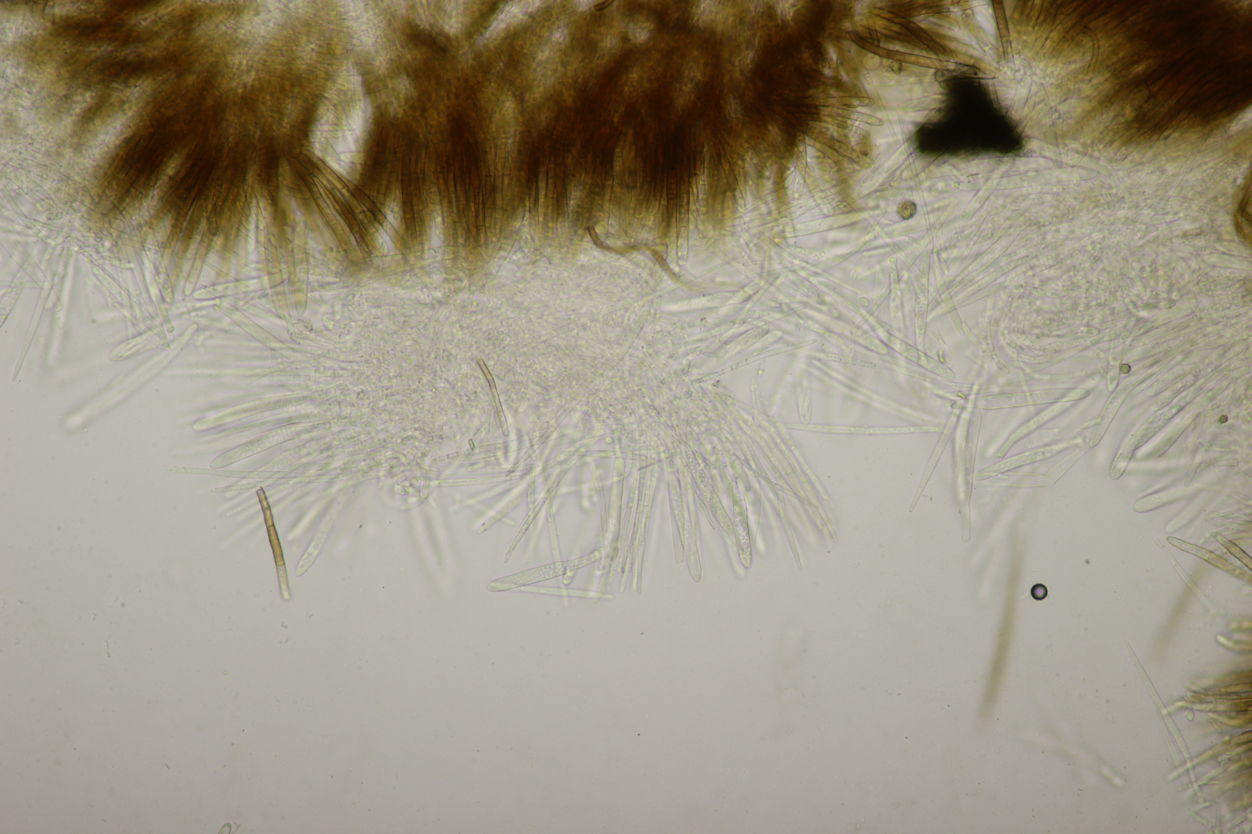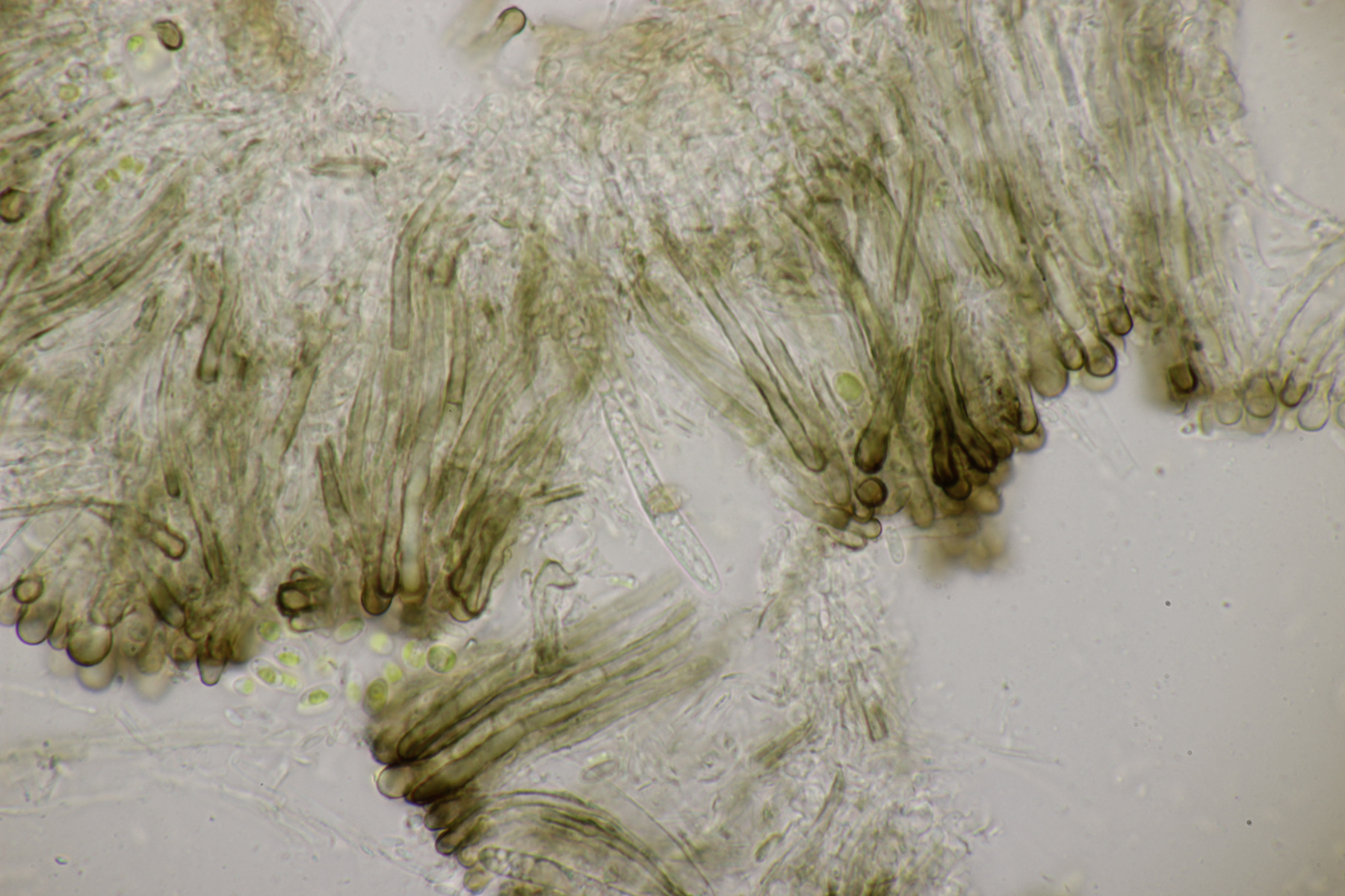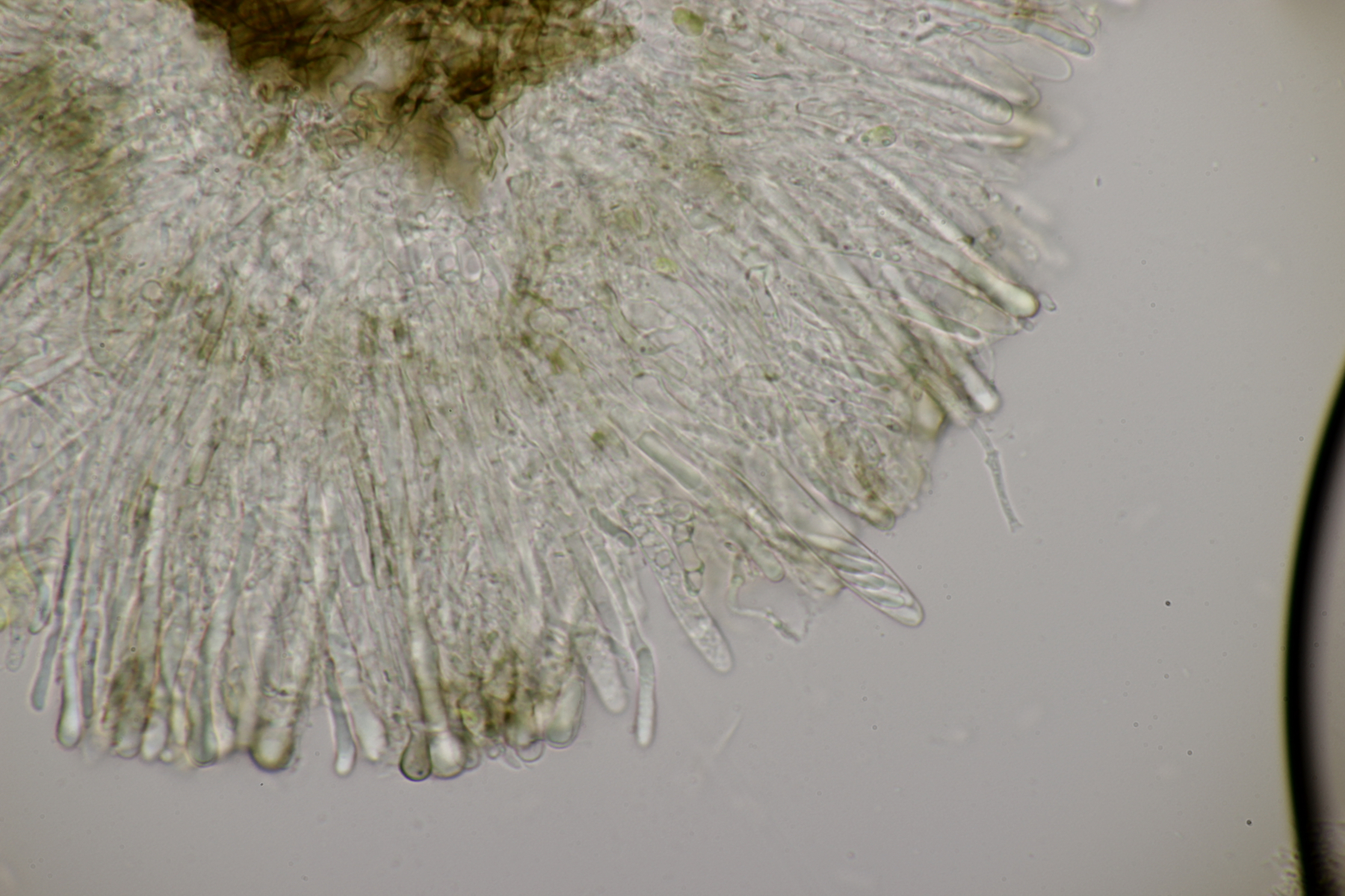 Du vermutest womöglich, da deine Sporenmaße nicht mit Lasiobelonium variegatum zusammenpassen, dass die Apos unreif sind.