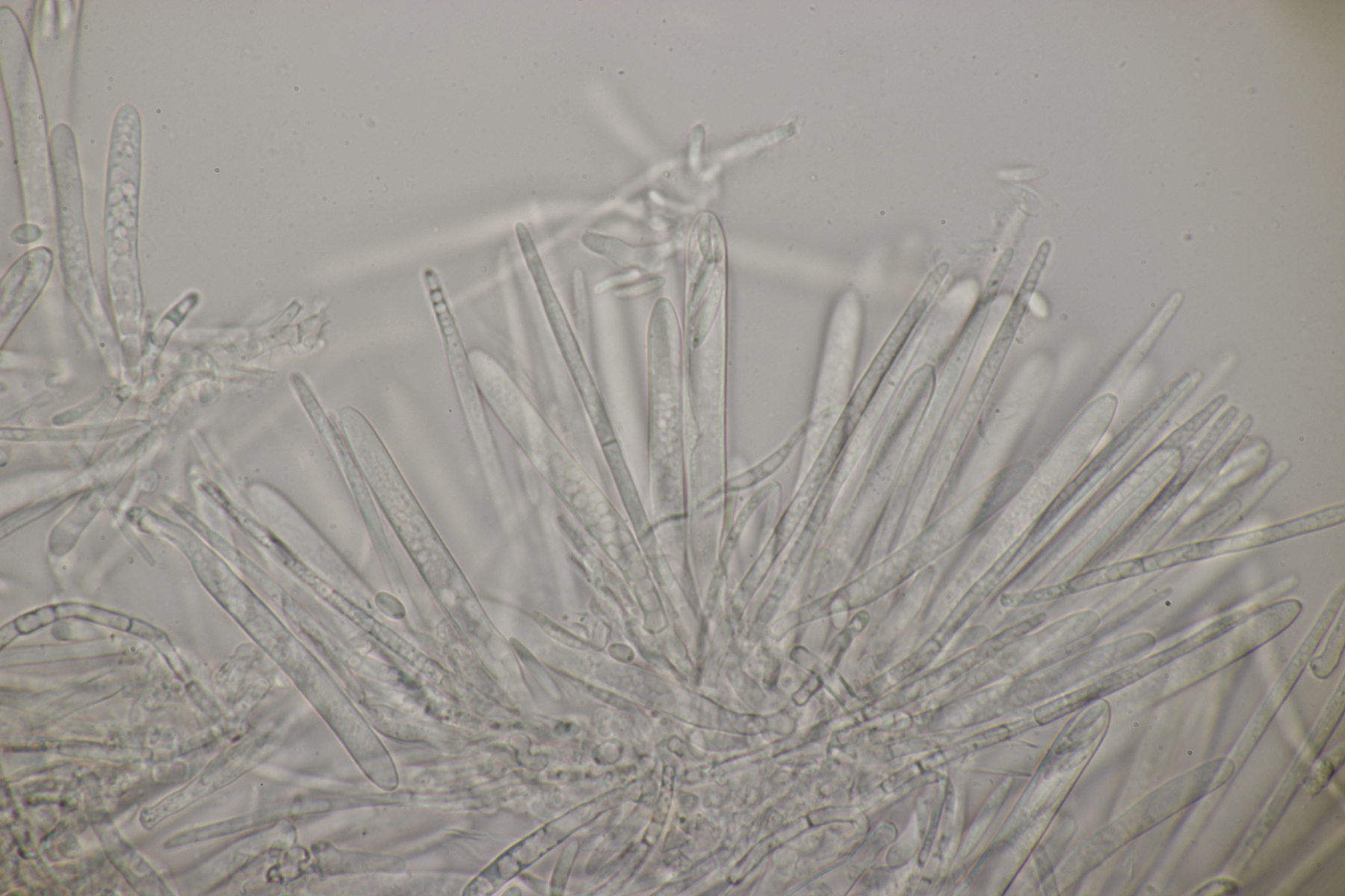 Ganz "witzig" sind da relativ neu beschriebene Mollisien, bei dem die Beschreiber gelagerte Aufsammlungen als Referenz hernehmen. Da wird dann z.B. eine Mollisia-Art mit stäbchenförmigen Auswüchsen auf den Sporen beschrieben oder auch eine Art, bei der die 4 unteren Sporen im Ascus septiert sind, die oberen nicht.