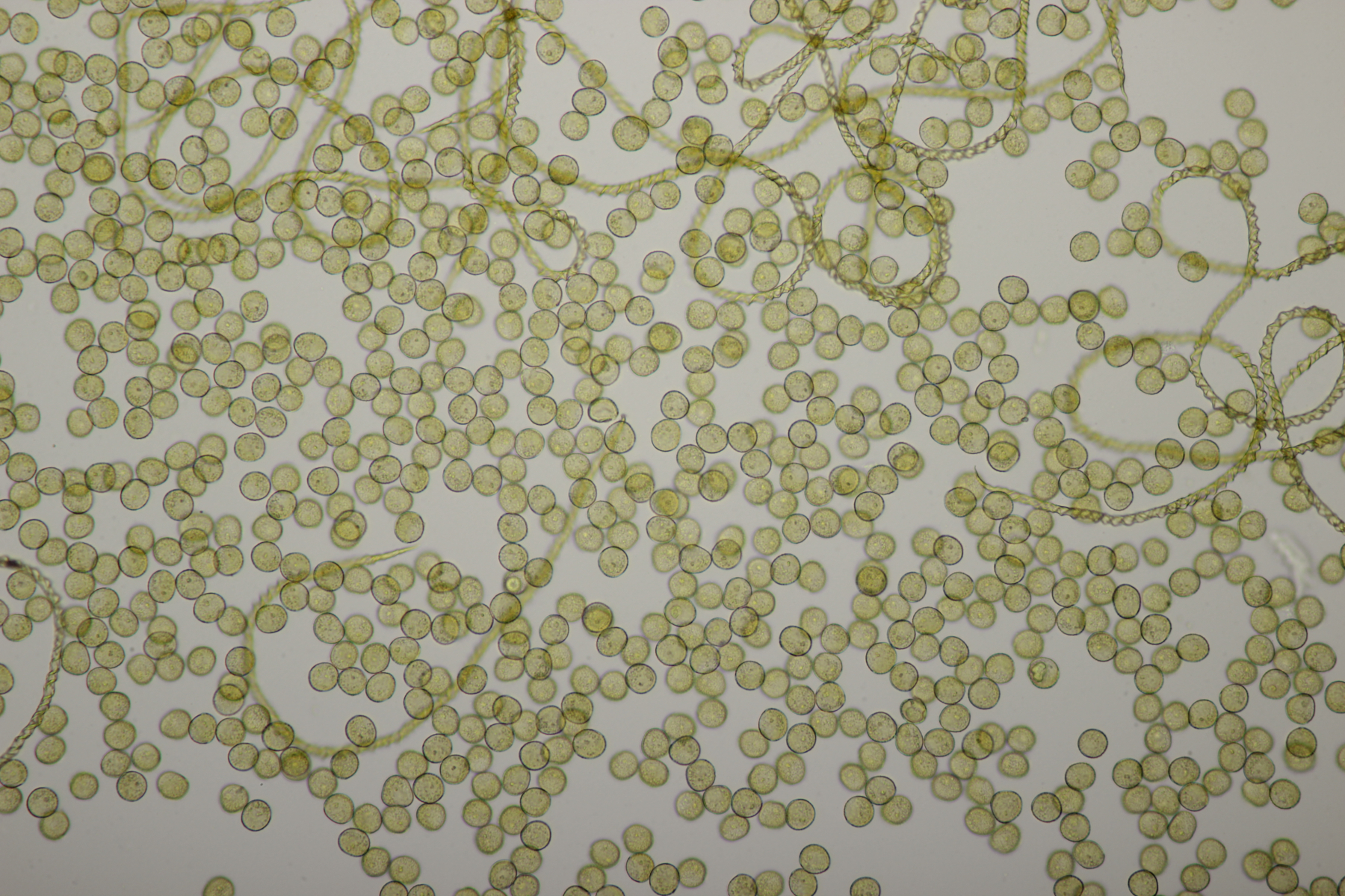 Hier mal ein Lasiobelonium-variegatum-Mikrobild, bei denen man das Schwinden des Öls in den Sporen sehen kann:
