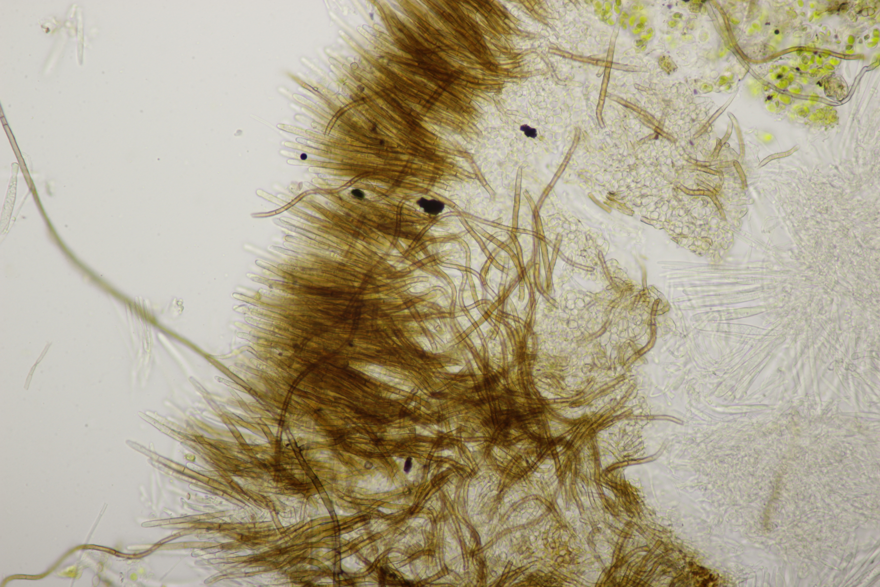 • 10. Das würde ich bei Lasiobelonium einsortieren. Leider konnte ich noch keine reifen Sporen ausmachen. Reichen die gekräuselten Haare schon um es zu L. variegatum zu machen? Substrat war Pappelholz. Ingo W