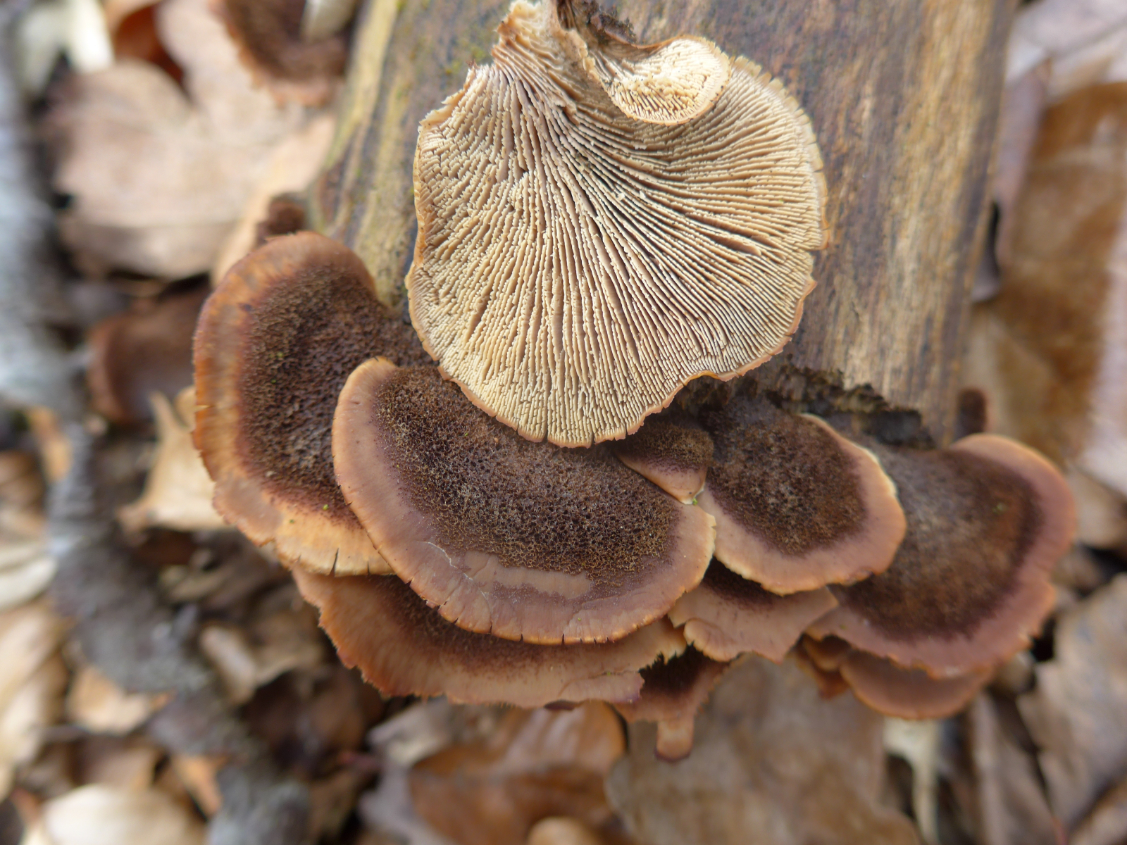 Interessanter Zähling: Habt ihr da mal reingebissen? Ausgehend von dem satt dunkelbraunen Filz und der Fruchtkörperform (ungefähr so lang wie breit) wäre ich da eher beim Bären (Lentinellus ursinus, Substrat ist für die Bestimmung eher irrelevant). Lentinellus castoreus schmeckt nach meinen (bisher sehr spärlichen) Erfahrungen schnell aber dafür extrem stark bitter, Lentinellus ursinus schnell sehr scharf (ohne bitter).