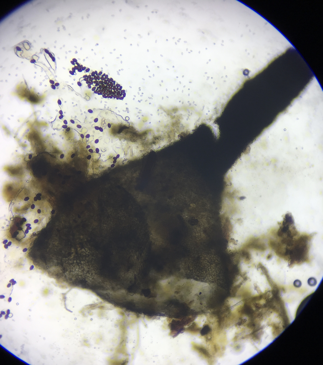 Wieder einmal ein total "headscratcher". Auf Cervidendung aus Pennsylvania. Schizothecium (?) mit sehr kleinen Sporen (12µm x 7µm) mit lateraler Keimpore, und seitlich sehen die konkav aus. Das einzige was überhaupt ein bißchen zu passen scheint ist Schizothecium curvisporum, aber da gibts wenig Infos. Vielleicht sind die Sporen vielleicht ja nur alt und abartig? Das Perithecium hatte eine riesenlange Ostiole und war total vergraben. Liege ich da total auf der falschen Schiene?