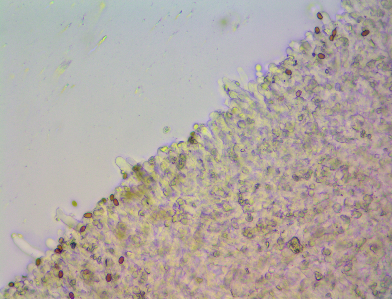 ich vermute hier Gamundia leucophylla kann aber nicht wirklich zweifelsfrei ornamentierte Sporen erkennen, flächig sehe ich nichts, aber an der Kontur lassen sich kleine Stacheln vermuten, die Schwester-Art wurde ja schon von einigen hier gefunden (Pilzforum.eu) wie deutlich habt ihr den dort die Stacheln gesehen?