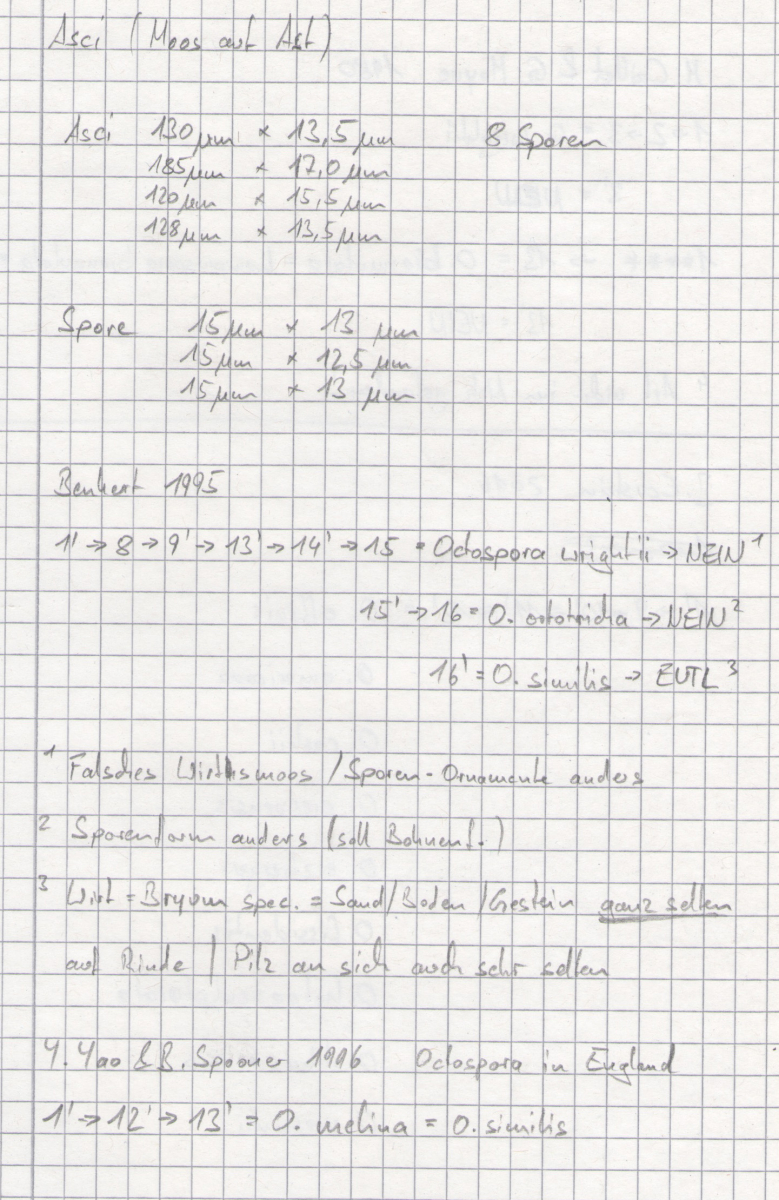 angespornt von Murph (Beitrag) habe ich auch mal das Moos einiger Bäume durchkämmt und wurde nun fündig. Allerdings sind für O. affinis die unreifen Sporen schon viel zu groß (reife habe ich keine gefunden und die im Ascus gemessen!)