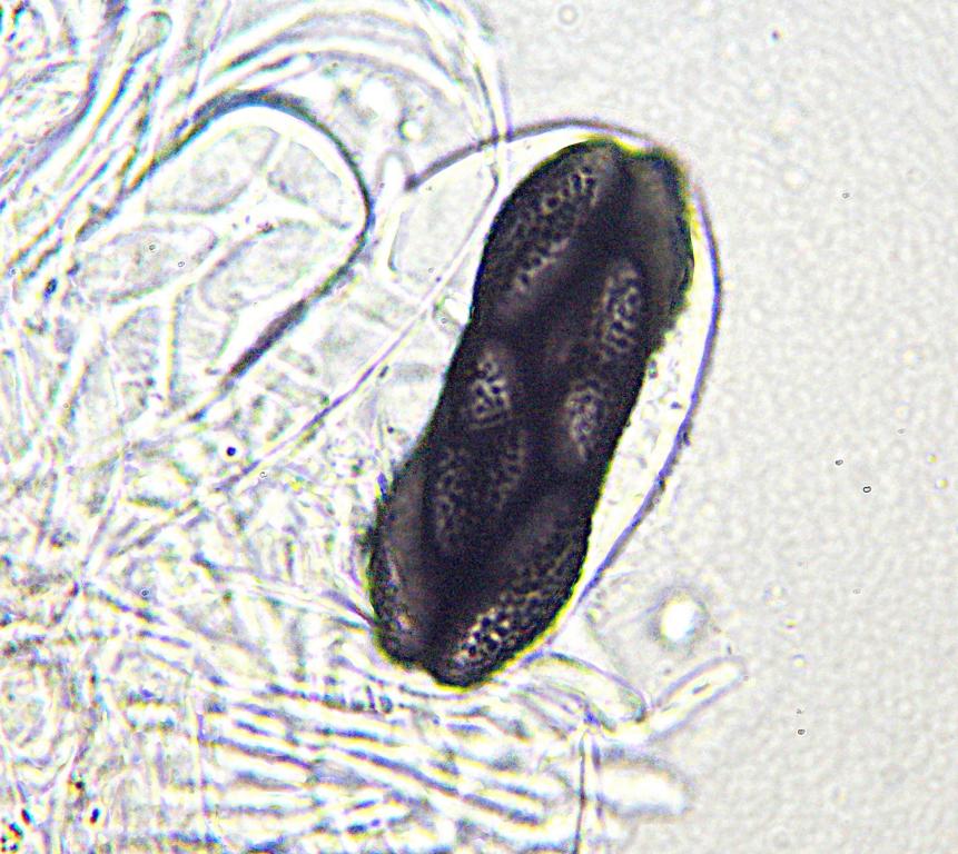nach einer längeren Auszeit möchte ich mich wieder zurückmelden! Kann mir bei diesem Saccobolus jemand weiterhelfen? Ist das eventuell S. versicolor? Gefunden habe ich den Pilz auf Reh. Die Asci messen ca. 90 x 26 µ, die Cluster haben ein Maß von ca. 45 x 15 µ und die Sporen sind 17 x 7 µ groß.