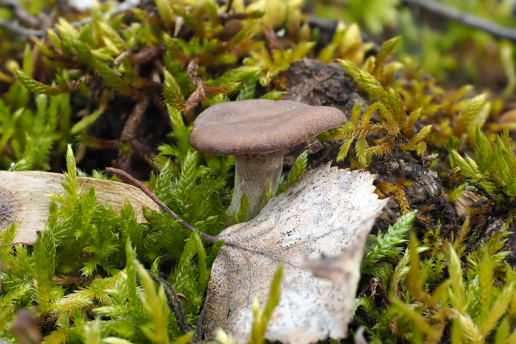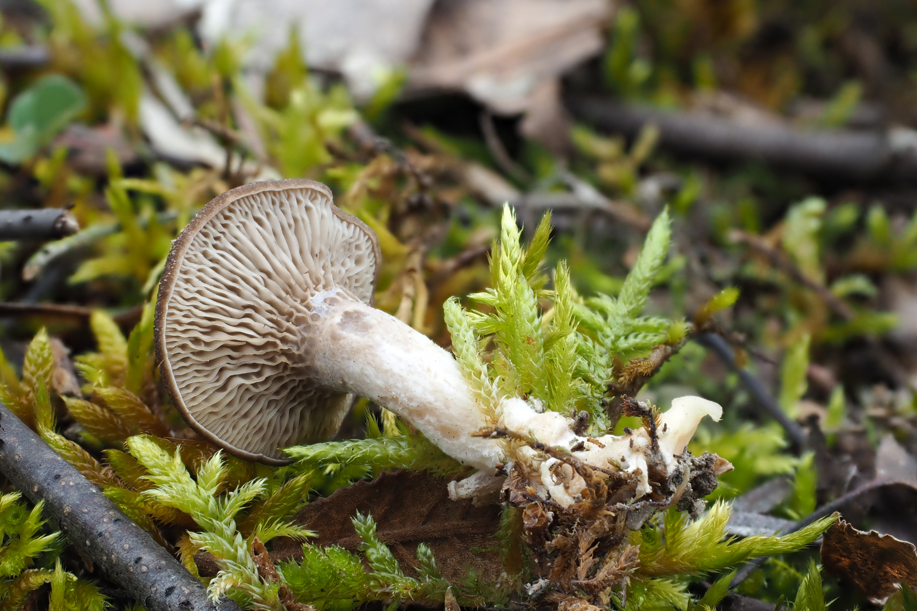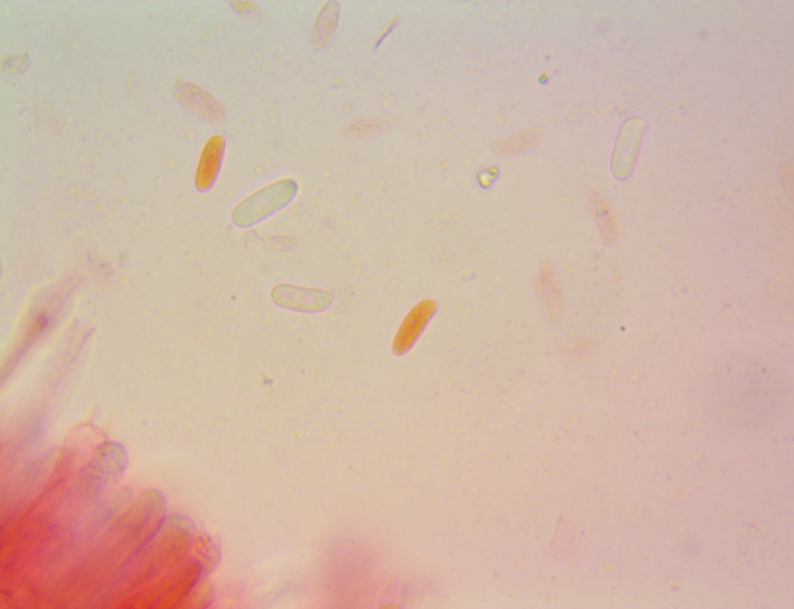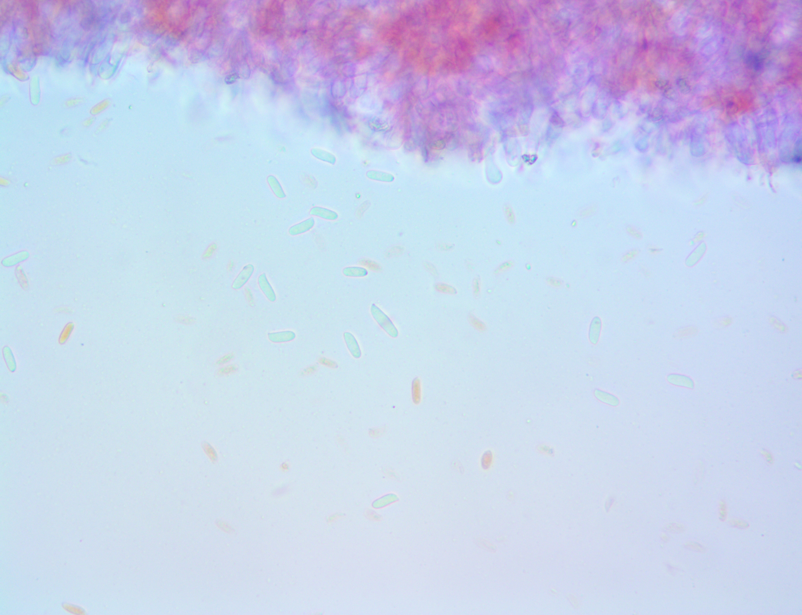 Hallo ich habe in einem Kalksteinbruch einen Pilz gefunden mit +- Trichterlingshabitus, er hat sehr auffallende tibiiforme Cheilos, die zudem septiert sind.