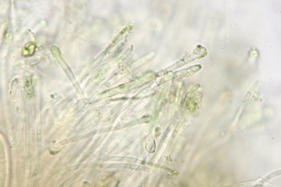 Die Paraphysen sind verzweigt, septiert und reagieren auf Lugol grün.