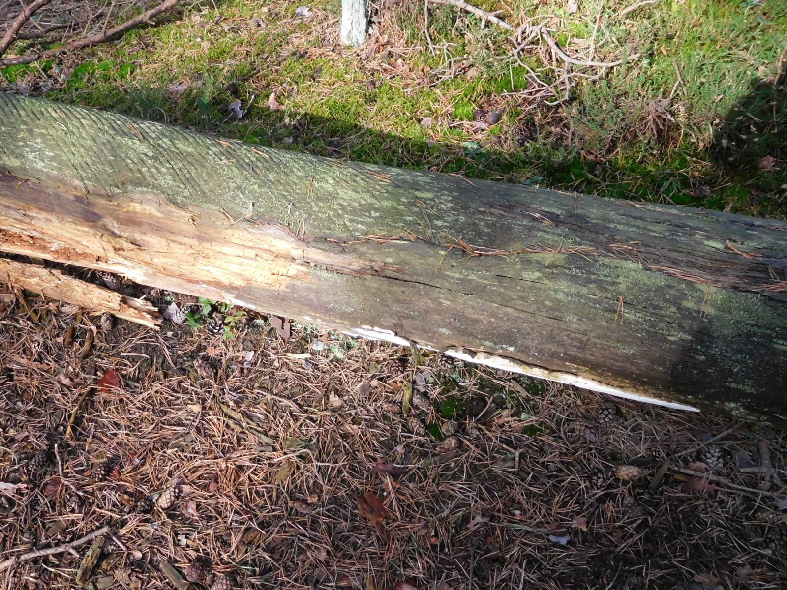 Normalerweise schaue ich mir keine weißen Schichten auf Bäumen an. Aber ich mußte im Wald eine Gruppe Frauen überholen lassen. Das Geschnatter hält ja keiner aus. Also den Weißen Pilz bewundert. Der war ganz interessant. Oberfläche wie ein Anti - Rutsch - Gummi! Läßt sich leicht von der Kiefer lösen und ist bröckelig.. Bei so etwas habe ich Null Ahnung!