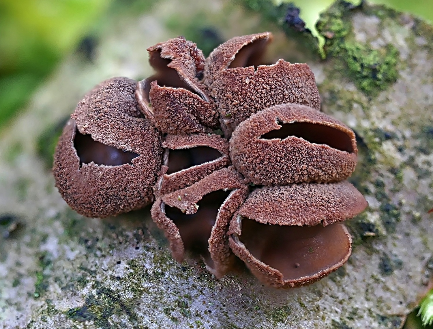Die Hasel-Kleiebecherlinge gehen ebenfalls auf und überziehen mancherorts förmlich tote und sterbende Äste der Haselsträucher. Ach wenn trivial, immer ein oder zwei Fotos wert.