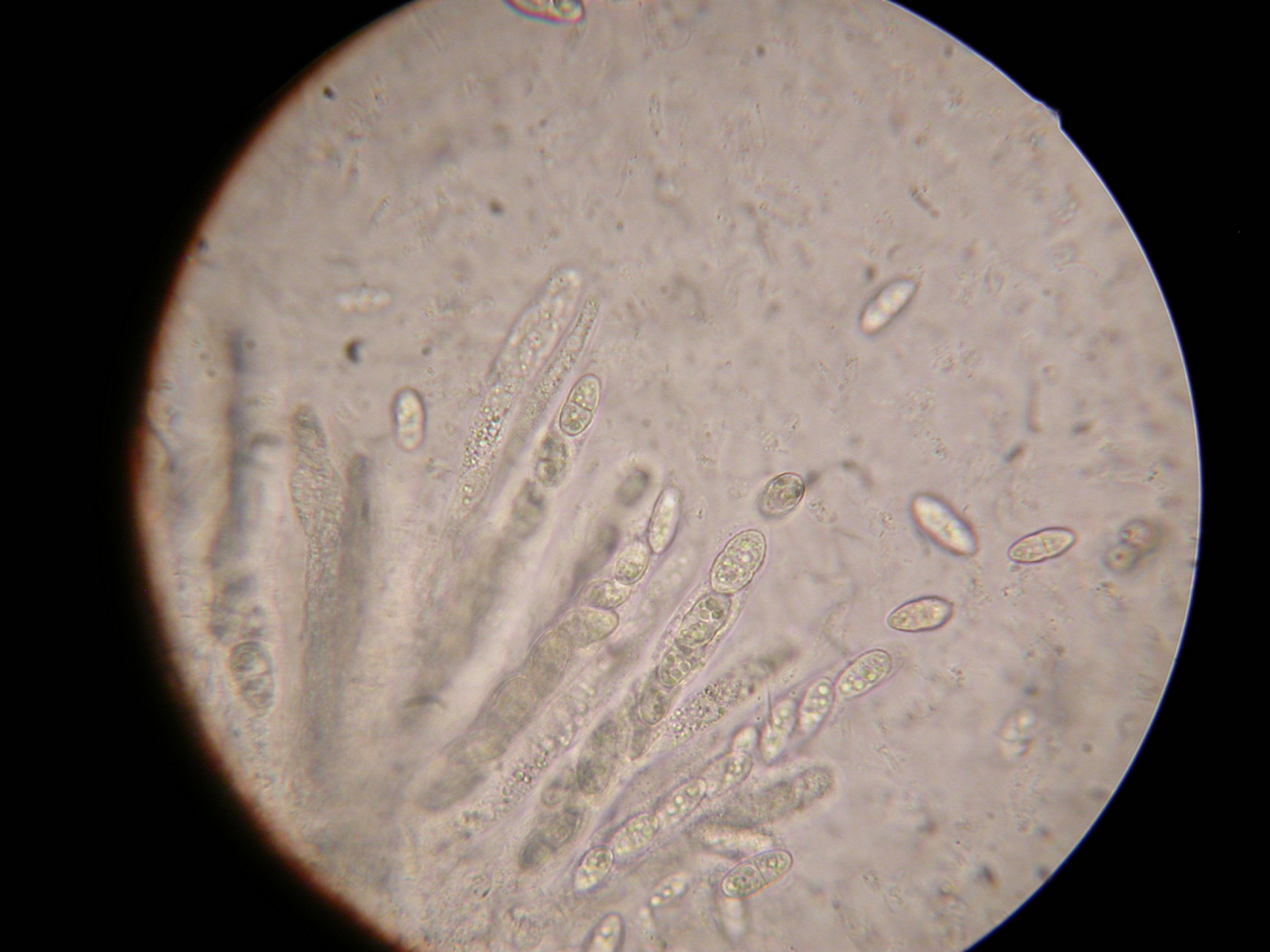 Die Mikroskopie ergab aber dann Ascosporen, die mit 13-15 x (5,5) 6 - 8 (9) µm zu groß, vor allem zu weit sind.