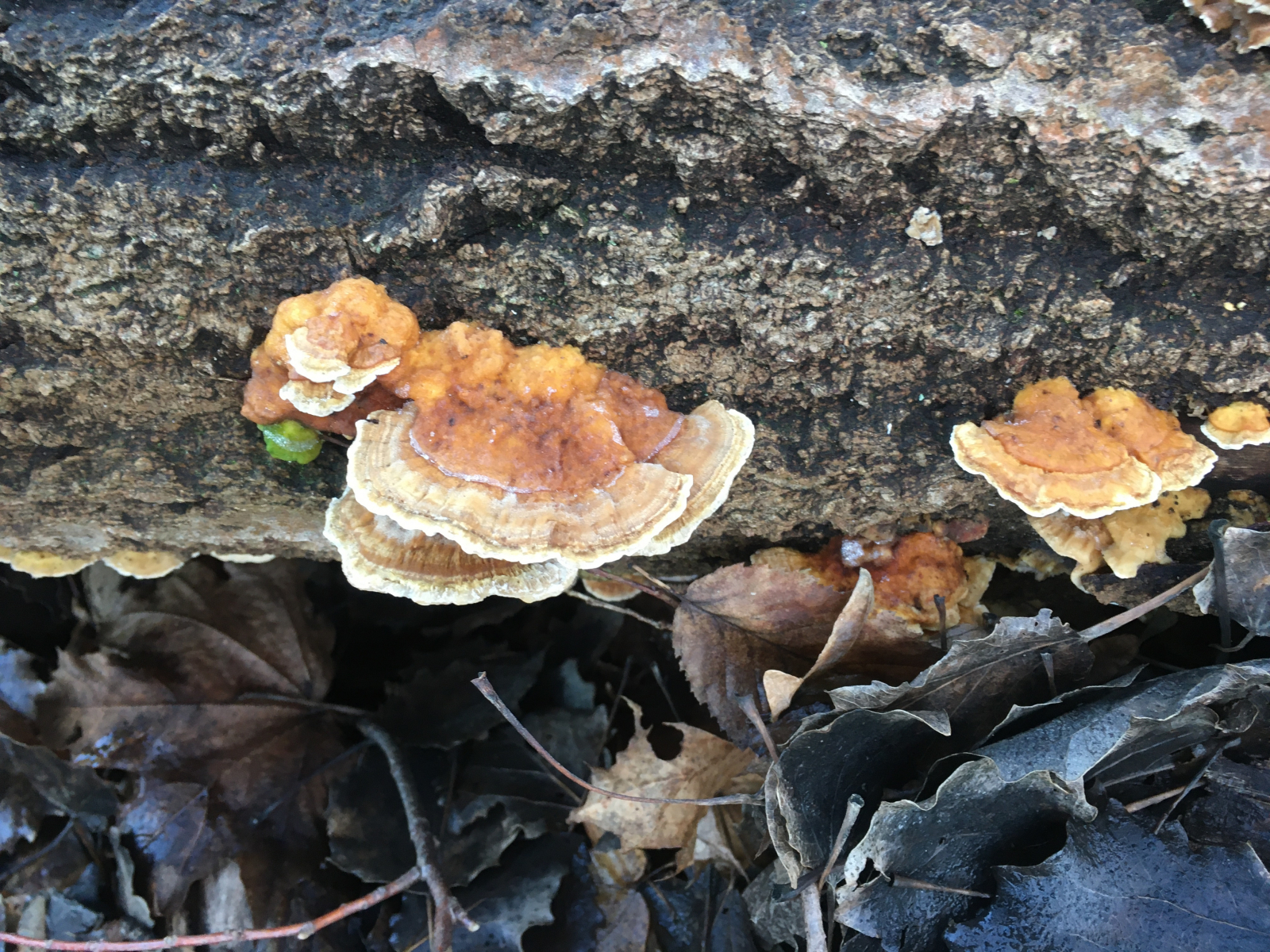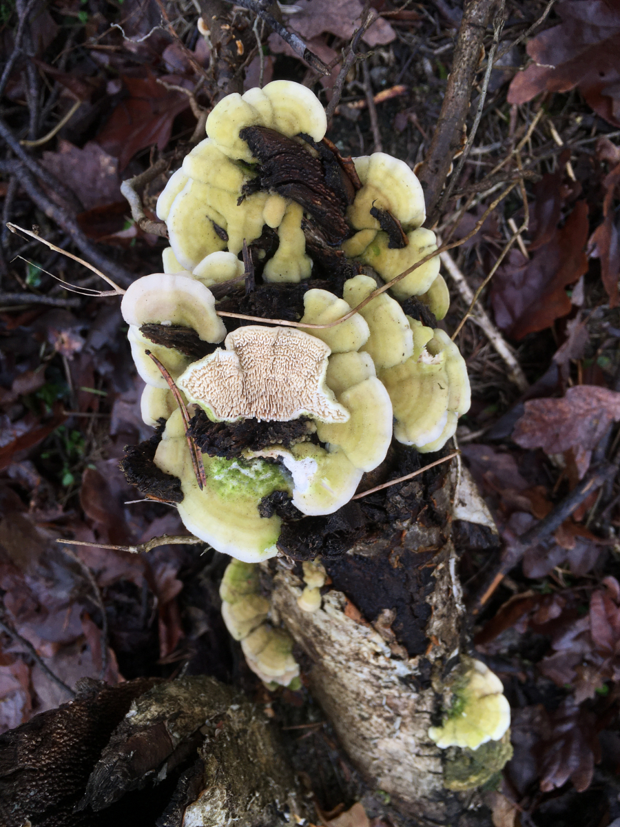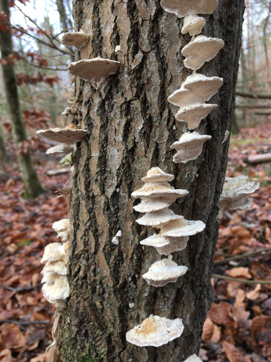#6 an Laubholz, evtl Eiche. Auch wenn die Odds deutlich zu Tr. versicolor stehen, möchte ich aufgrund der breiten Ansatzstelle und gering ausgeprägten Zonierung nochmal Tr. ochracea zur Diskussion stellen (ich weiss bisher war es dieses Jahr hier im Forum noch nie ochracea
