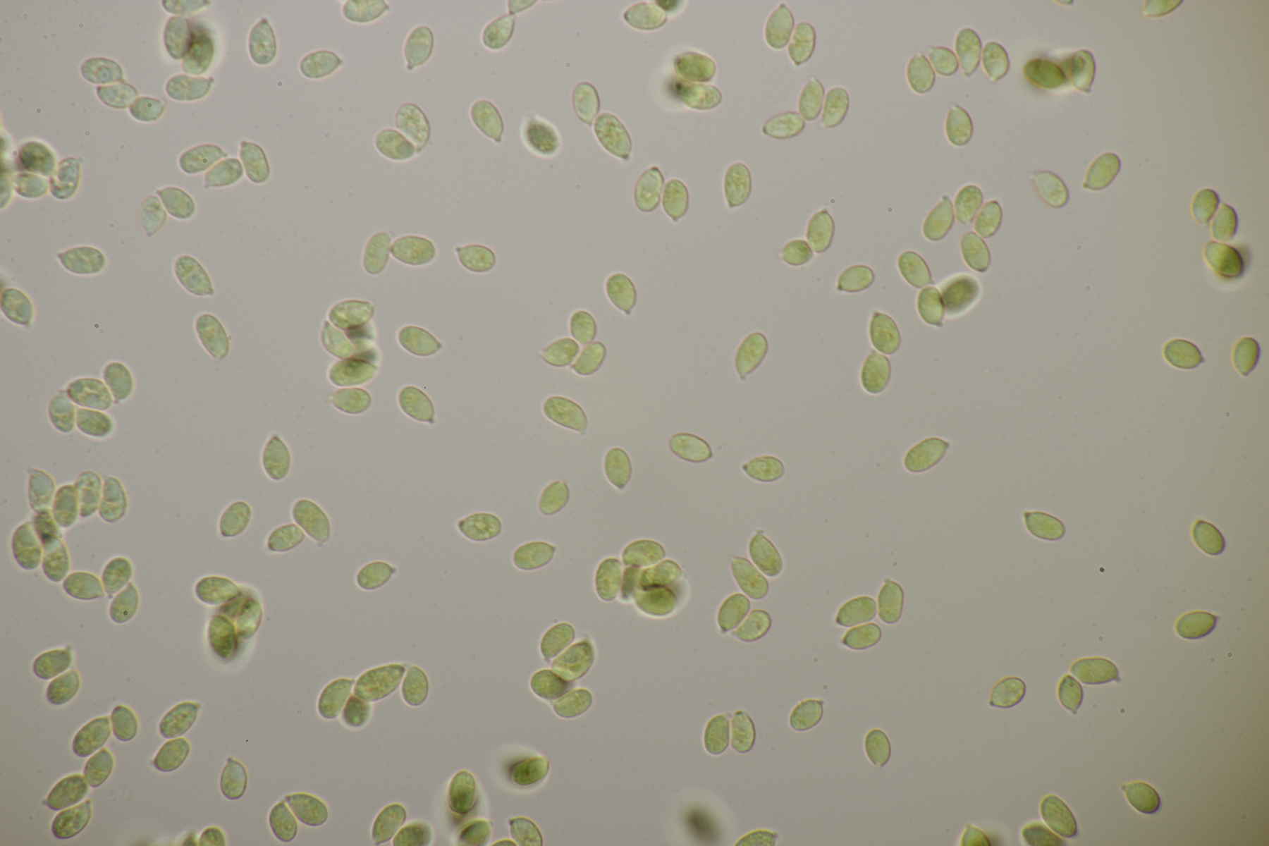 3. Arrhenia peltigerina, Sporen (8.7+-0.7) µm x (4.8+-0.4) µm, Q=1.8+-0.1