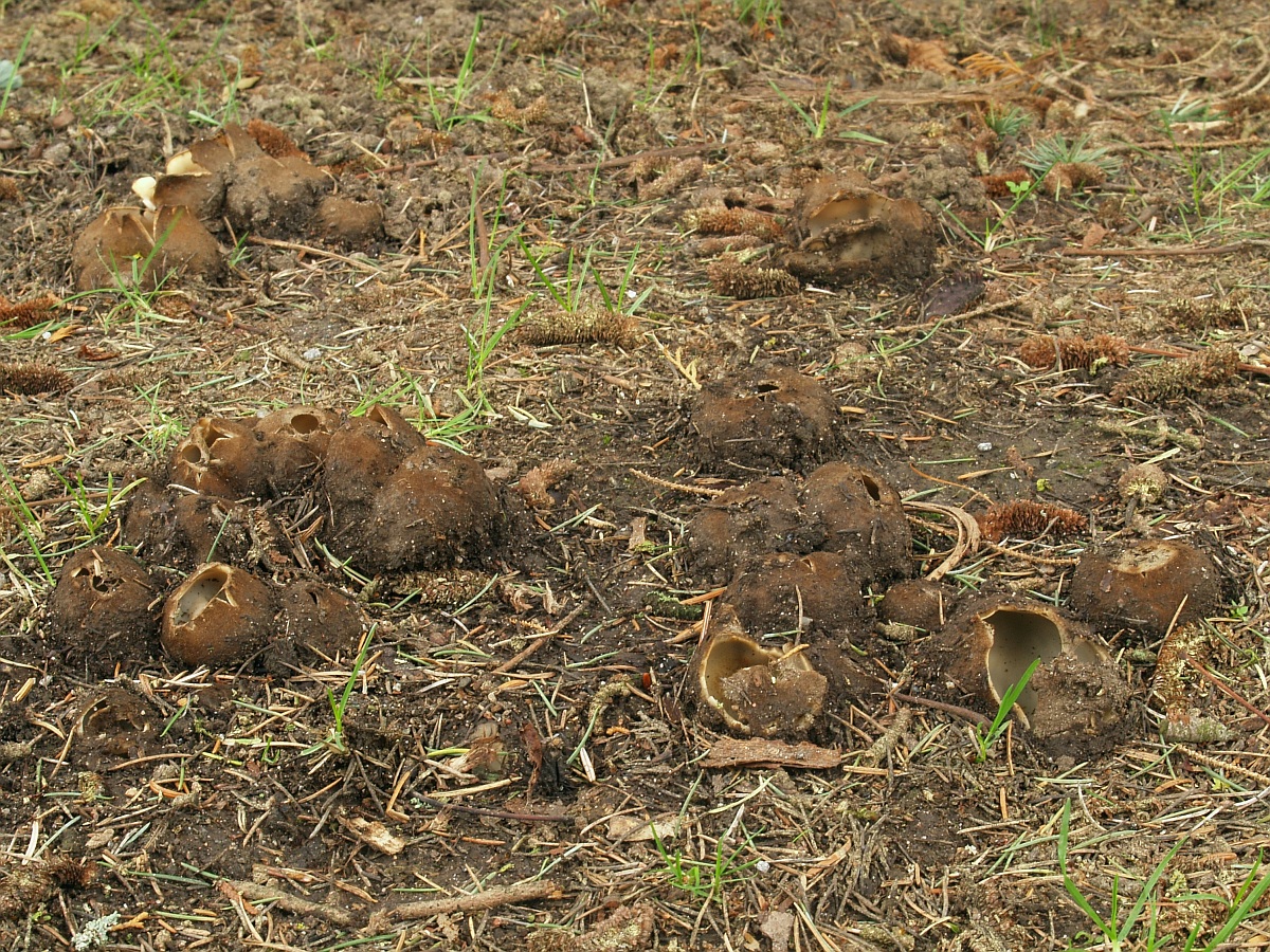 beim Zusammenfegen von Nadeln einer Küstentanne entdeckt. Die Bestimmung erwies sich zum Glück auch ohne Erfahrung als nicht zu schwierig. Weißgekammerte Schleimtrüffel (Melanogaster ambiguus)