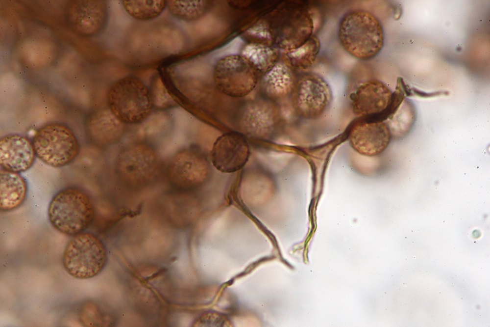 Die Sporen haben zum Teil ein unvollständig netziges Ornamet oder sind warzig.