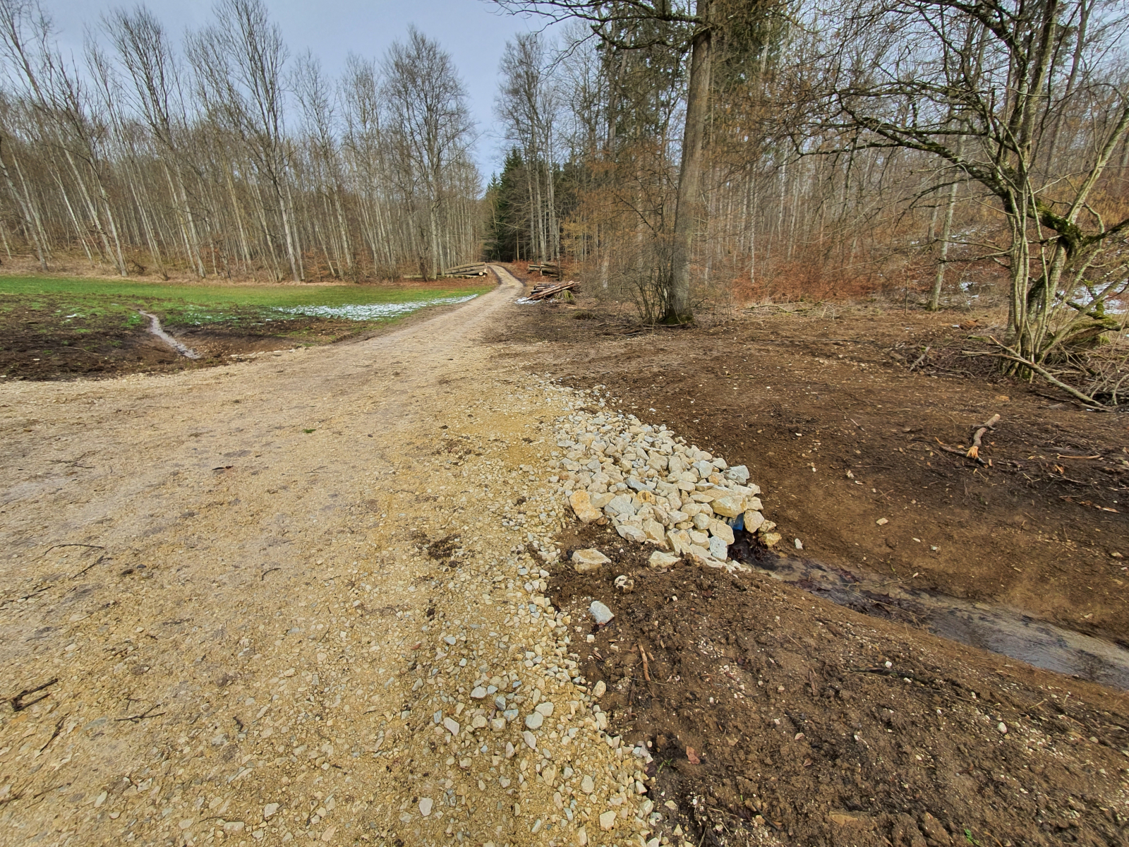 ... Nicht so in Ehingen. Ein kleines Rinnsal hatte es gewagt, ab und zu den Weg zu überspülen. Zuerst installierte man ein Schild "Straßenschäden" und jetzt wurde final für Ordnung gesorgt: