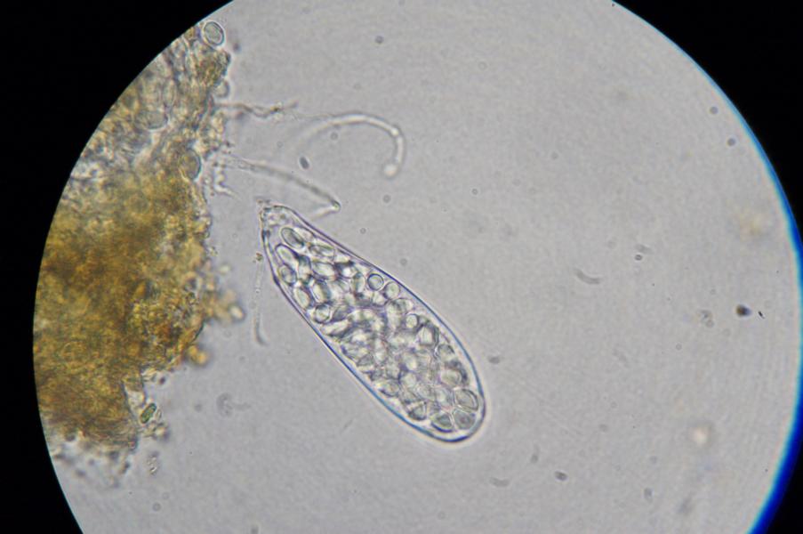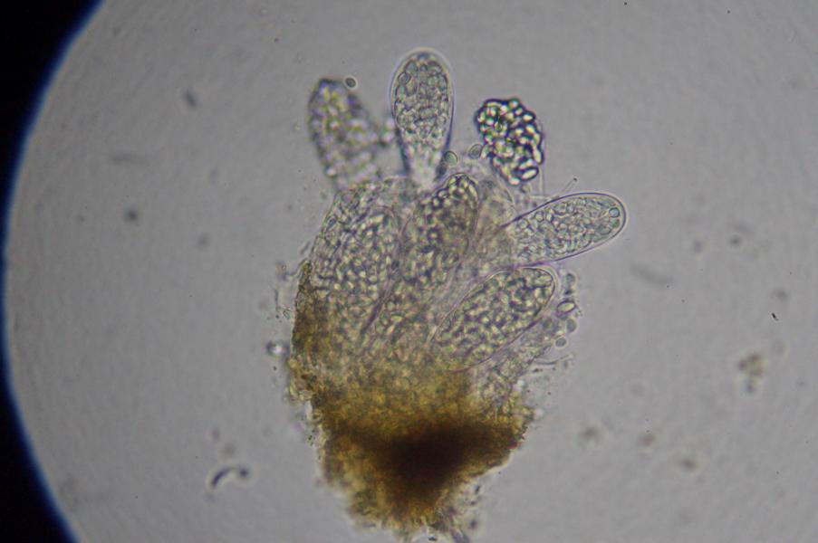 Vielsporige Coprotusarten haben neben anderen Merkmalen deutlich größere Sporen.