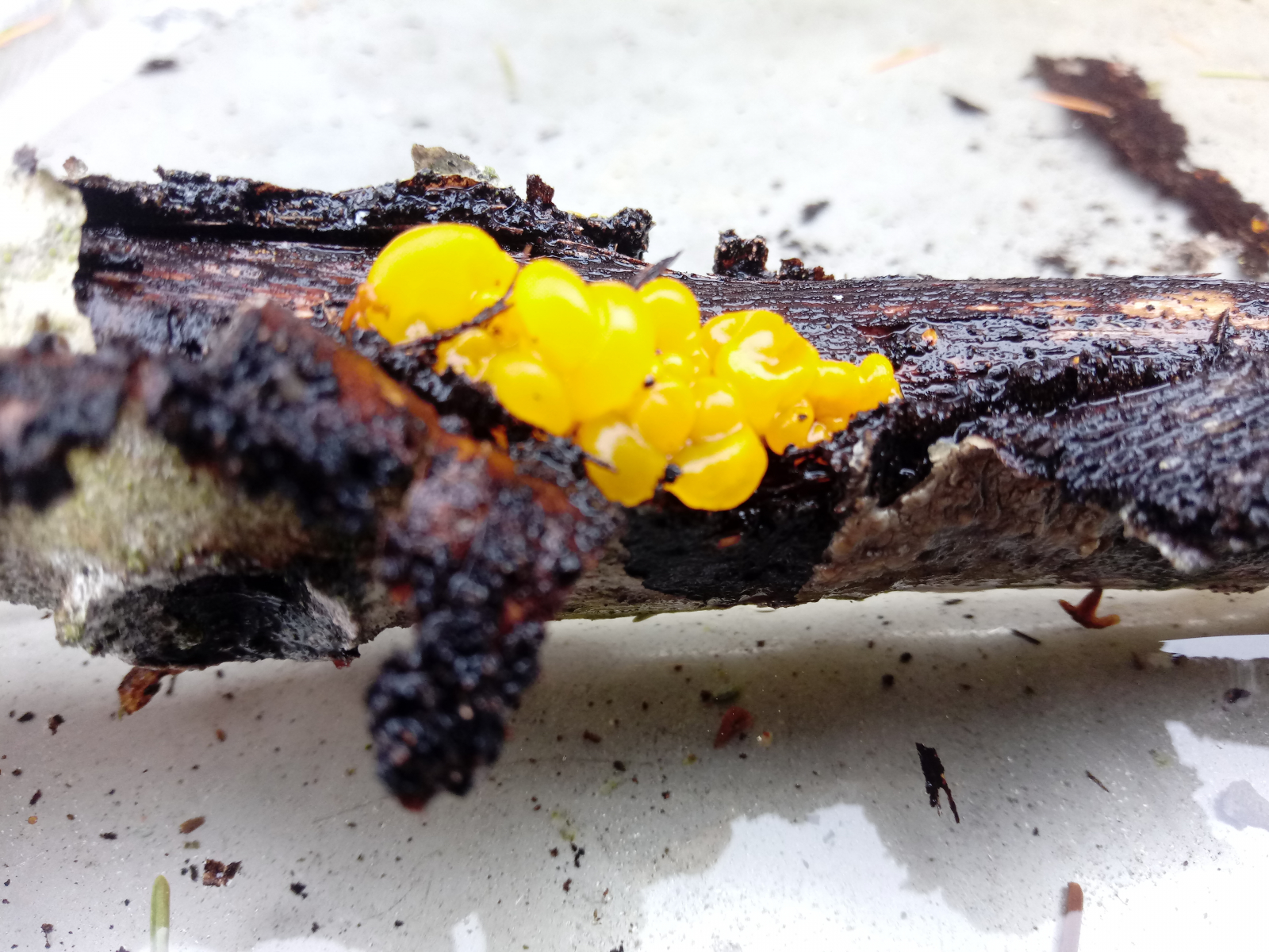 Der gelbe Schichtpilzzitterling,Tremella aurantia ,hat ja eher diese wulstigen Ausstülpungen.Davon hab ich leider noch keinen vor die Linse bekommen.![]()