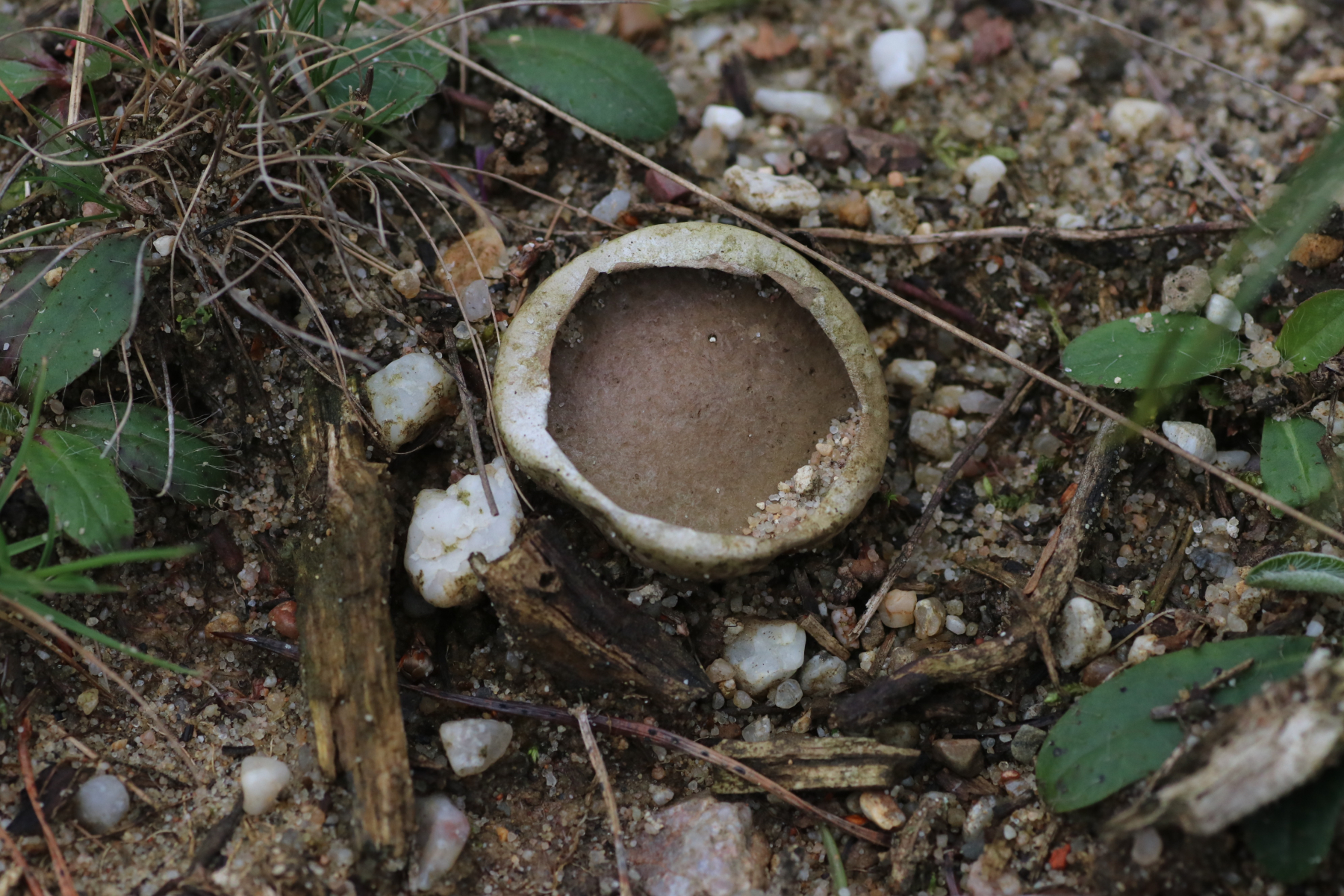 Was ich am wahrscheinlichsten halte bei deinem Fund: Ich denke da an alte Stäublingsleichen, die schon mit Fremdpilzen befallen sind. Die dünne pergamentartige Außenhülle der "Becher" lässt mich auf die Idee kommen. Wie war denn die Konsistenz deines Fundes? Derb ledrig-spröde oder flexibel pergamentartig?