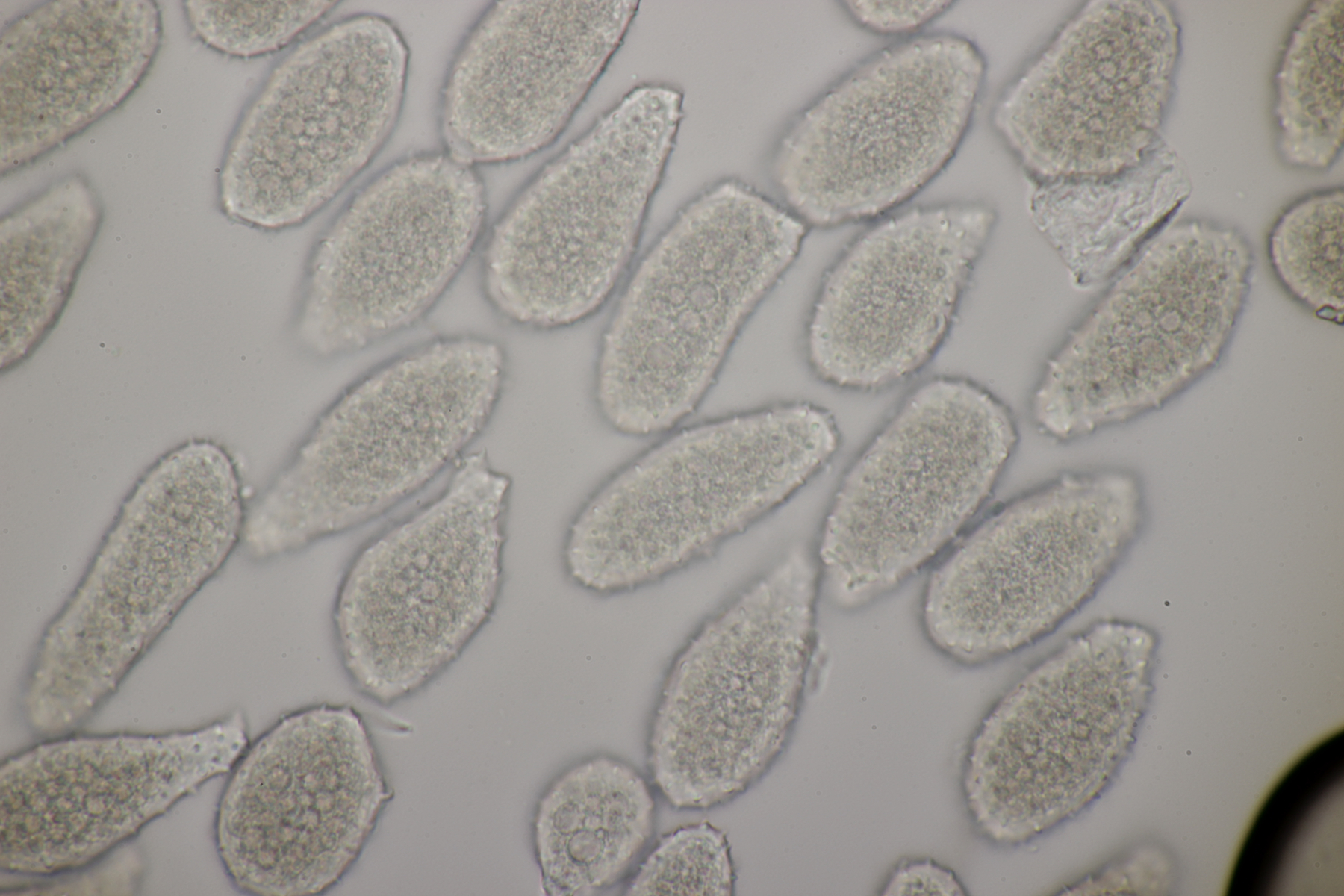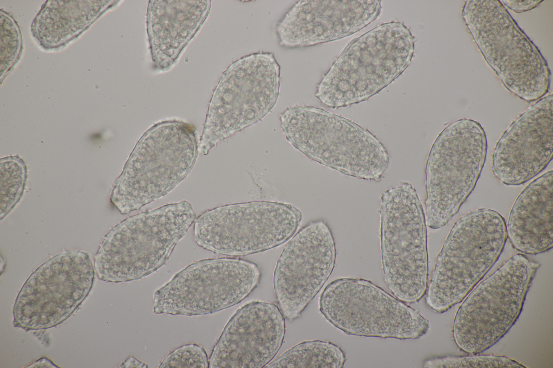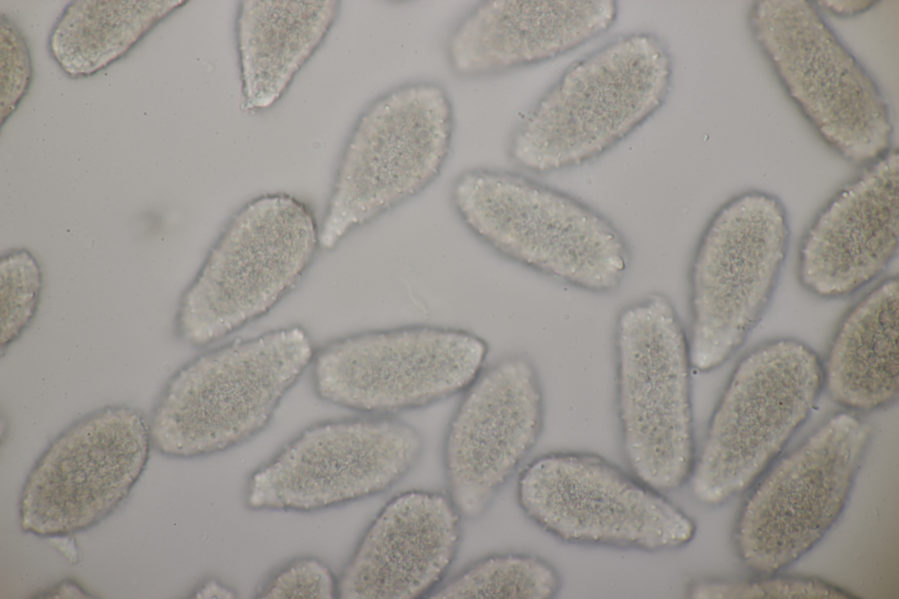 ich hatte eine Probe mitgenommen, bei der mittlerweile auch einige wenige Fruchtkörper reif geworden sind. Mikroskopisch sieht das ganze dann folgendermaßen aus: