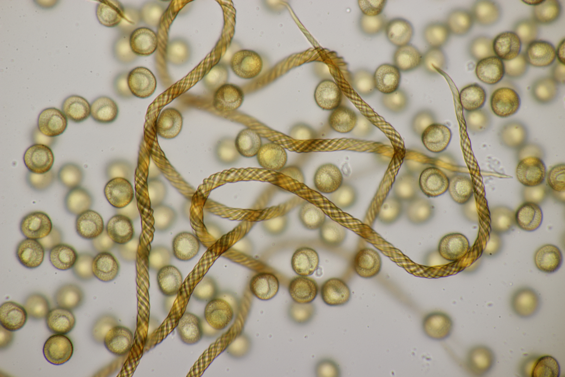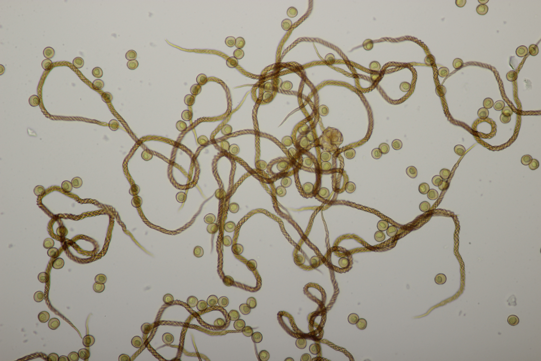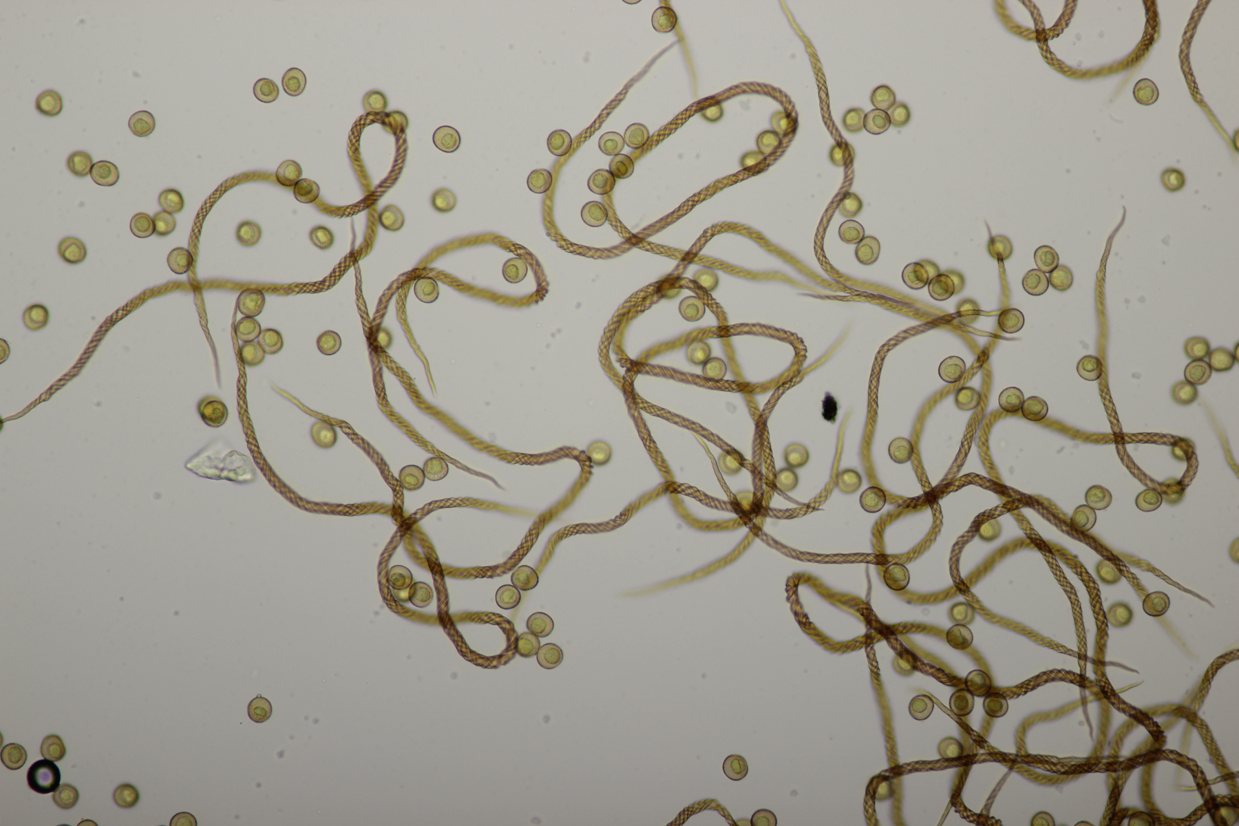 Damit ist Physarum wohl raus und das Capillitium erinnert mich eher an Trichia. Aber Jan-Arne hatte auch was mitgenommen und wird uns sicherlich noch erhellen.