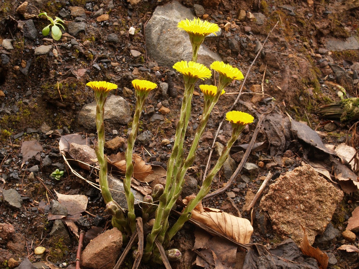 An sonnigen Stellen bereits in voller Blüte war der Huflattich (Tussilago farfara)