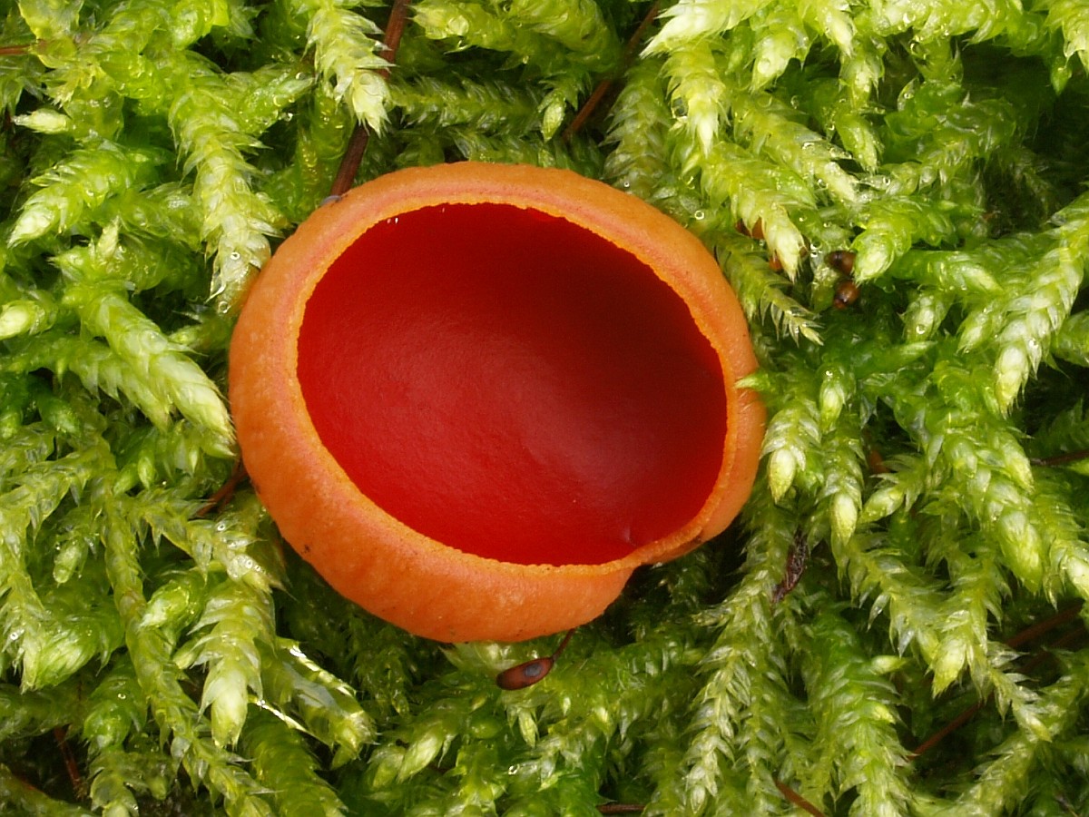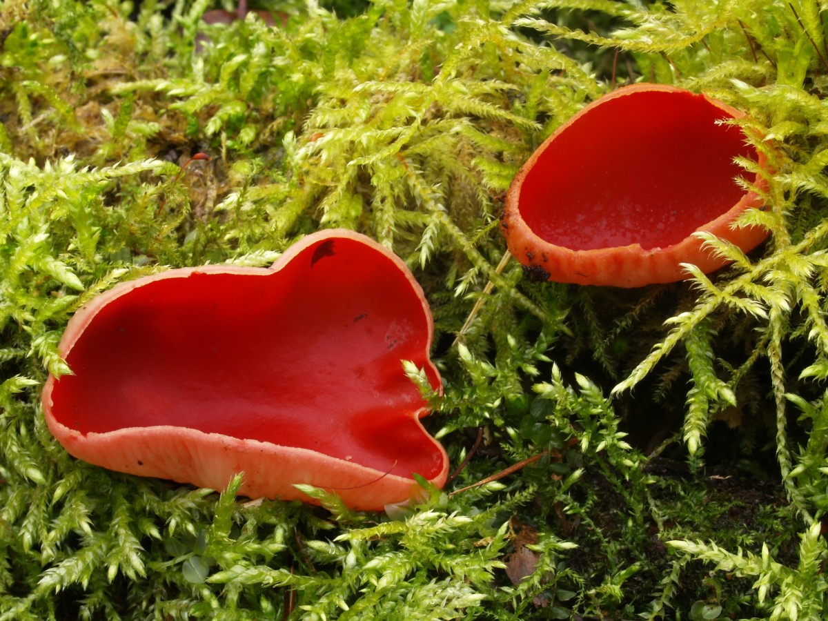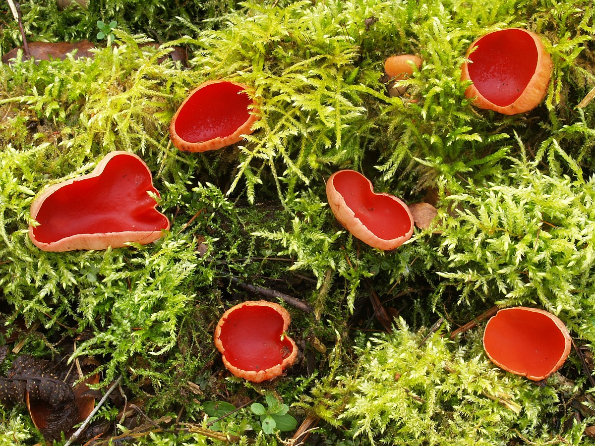 . Schon beim ersten Exemplar wurde der Gedanke verworfen, da der Anblick auf den bemoosten Stamm einfach zu toll war. Roter oder auch Österreichischer Kelchbecherling (Sarcoscypha austriaca)