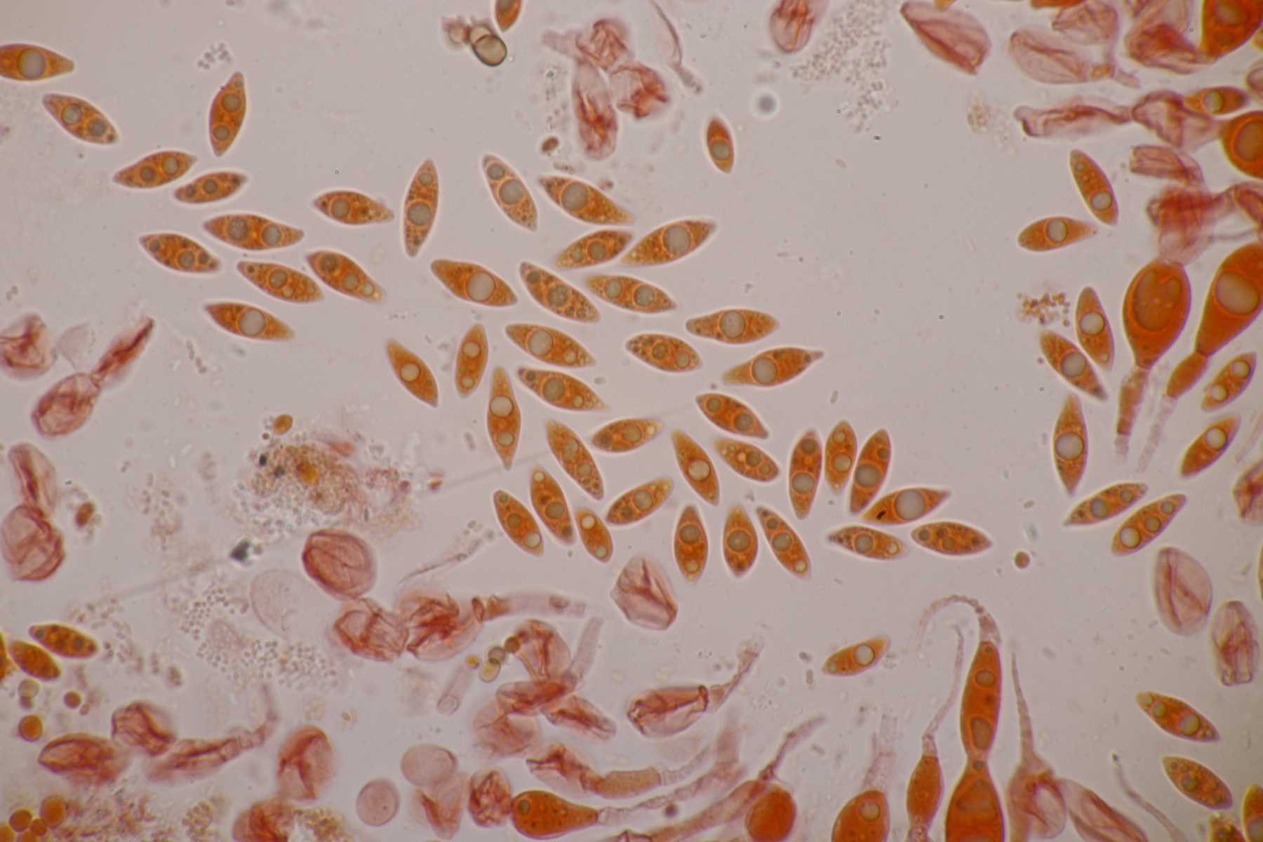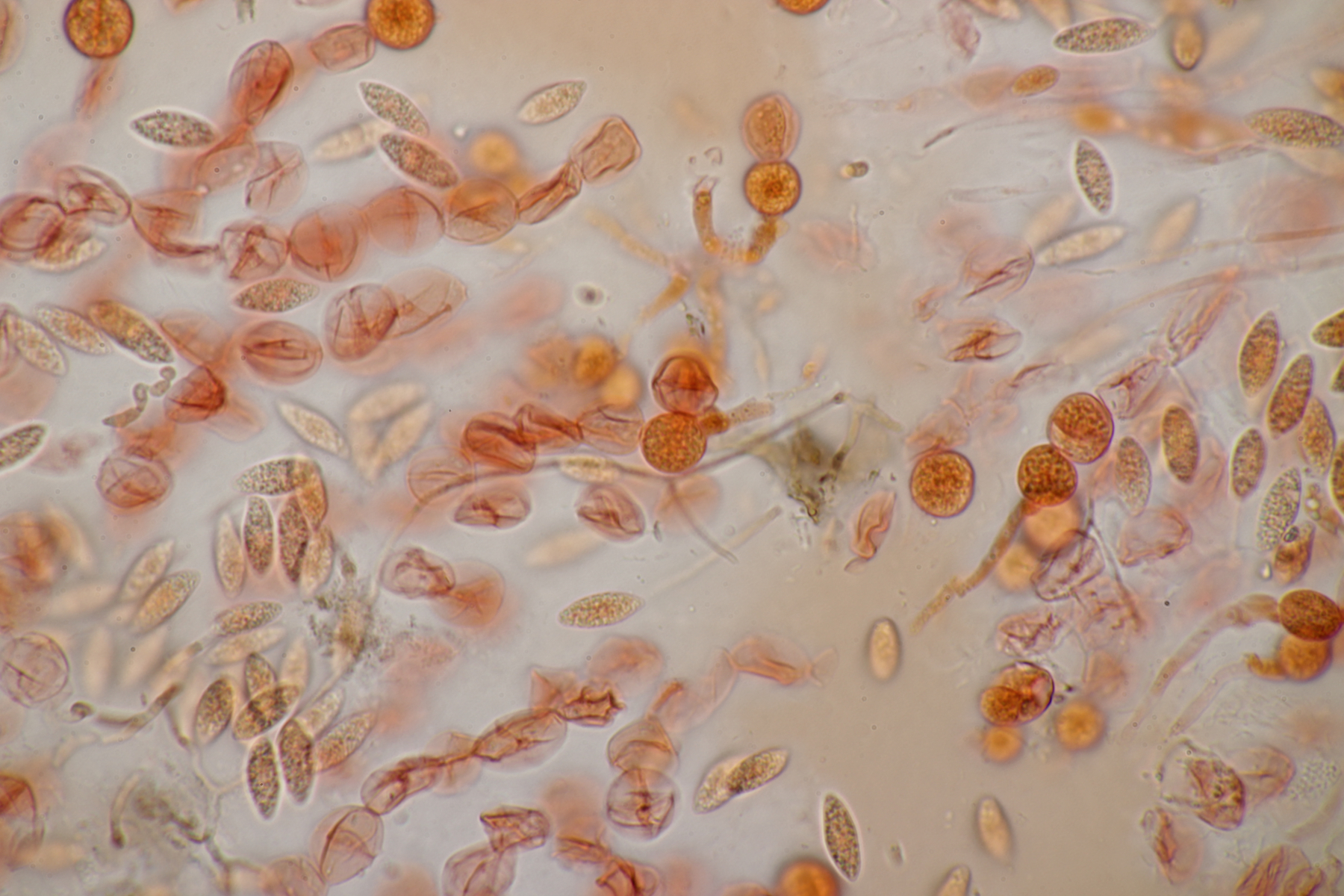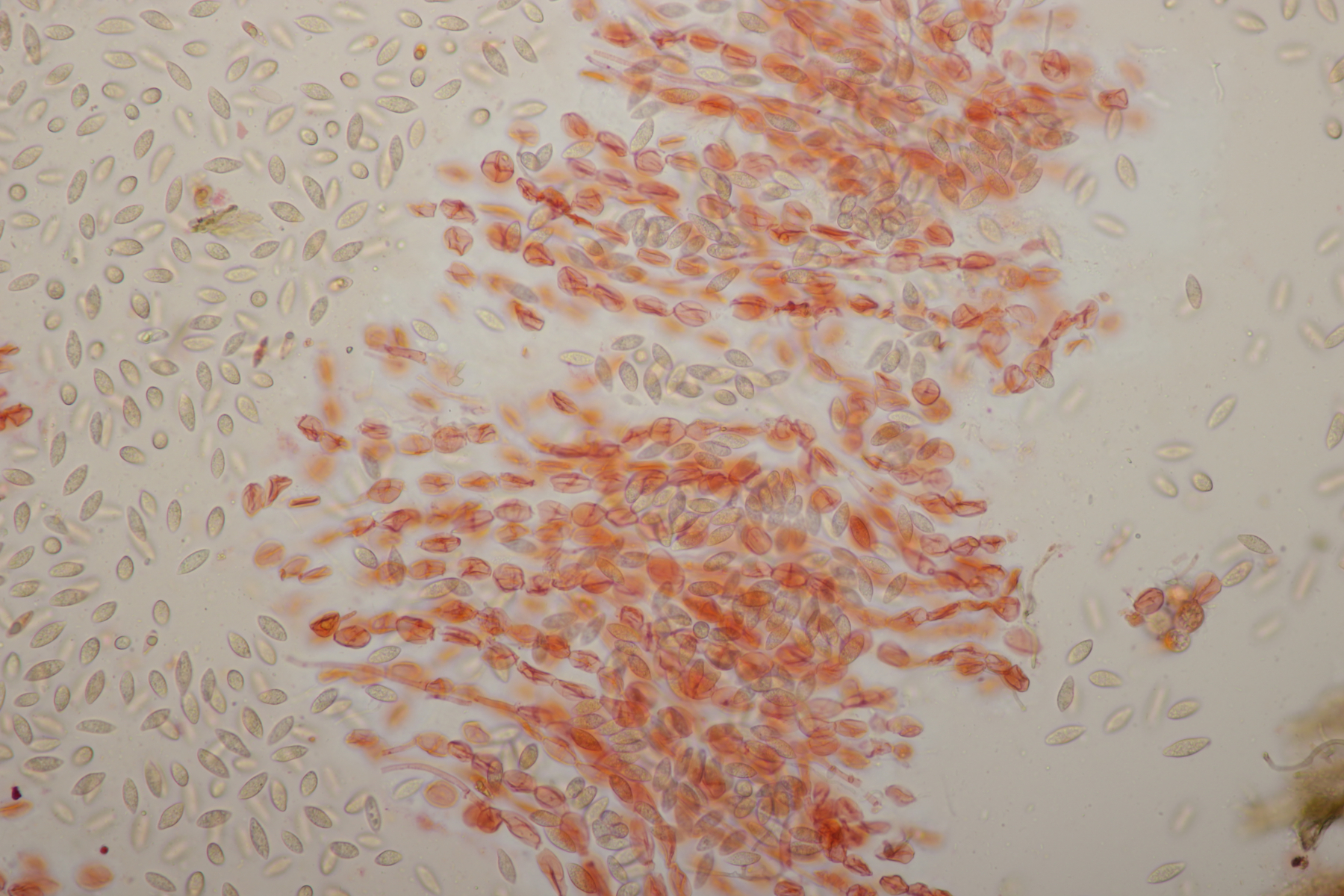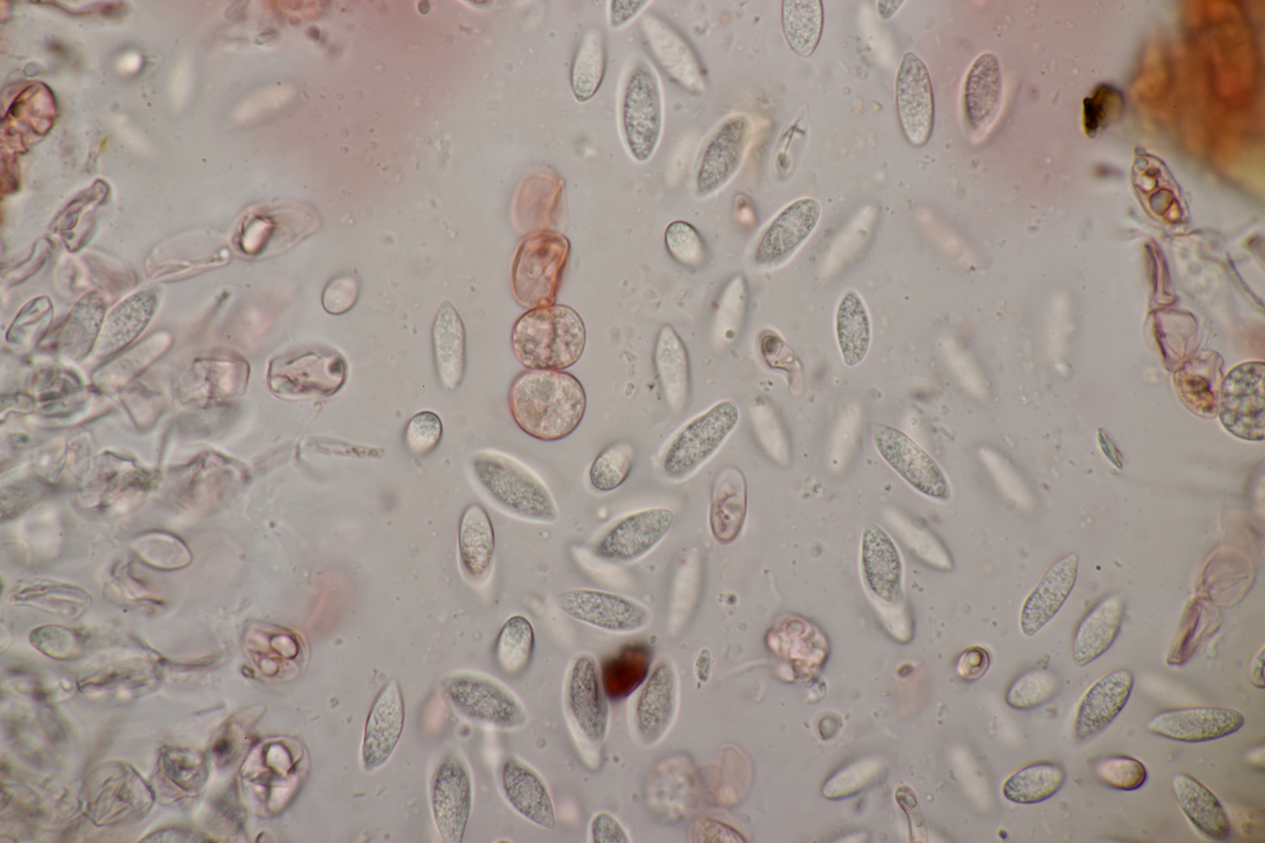 da Ralf und ich uns seit seinem letzten Sirobasidium-Fund immer noch nicht wieder bei Exkursionen getroffen haben, hat er mir den Ast jetzt einfach per Post zugeschickt. Der Fund ist dann natürlich auch direkt unters Mikroskop gewandert und ich denke, daß ich diesmal Bilder machen konnte, die etwas zufriedenstellender als die von 2020 sind.